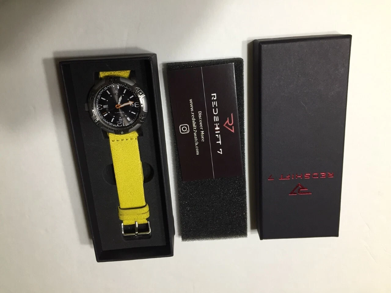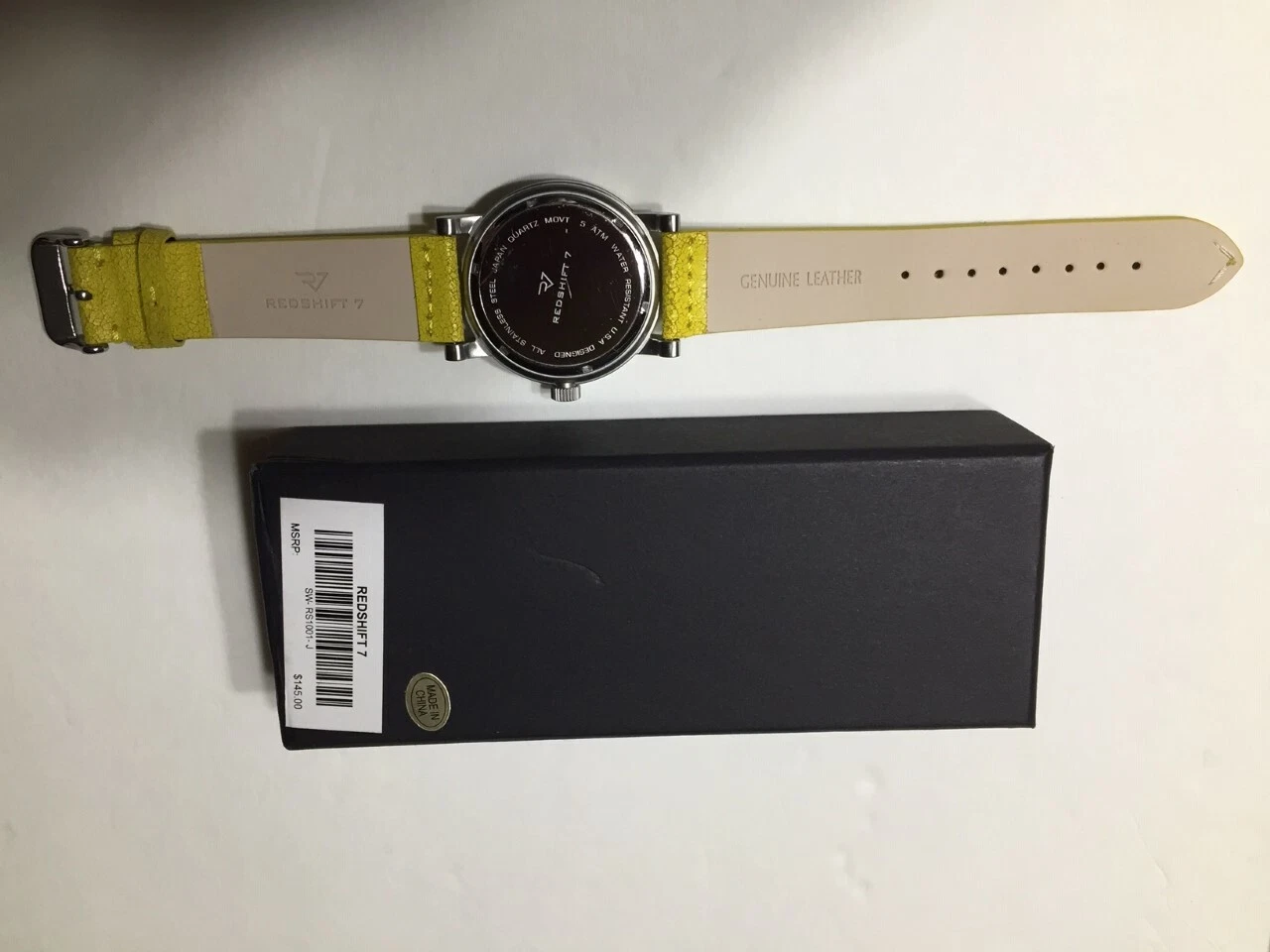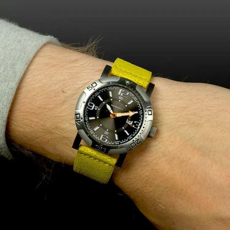 Redshift 7 Men's Watch Galaxy 7 Yellow Leather Watchband - Retail $145 - NIB