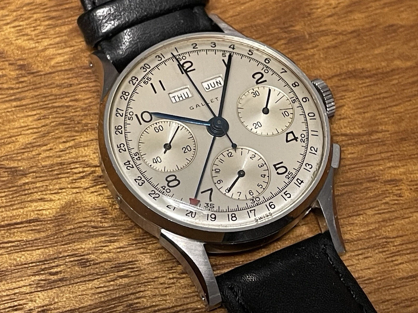 Gallet MultiChron Calendar Chronograph Valjoux 72C Complete Overhaul Excellent