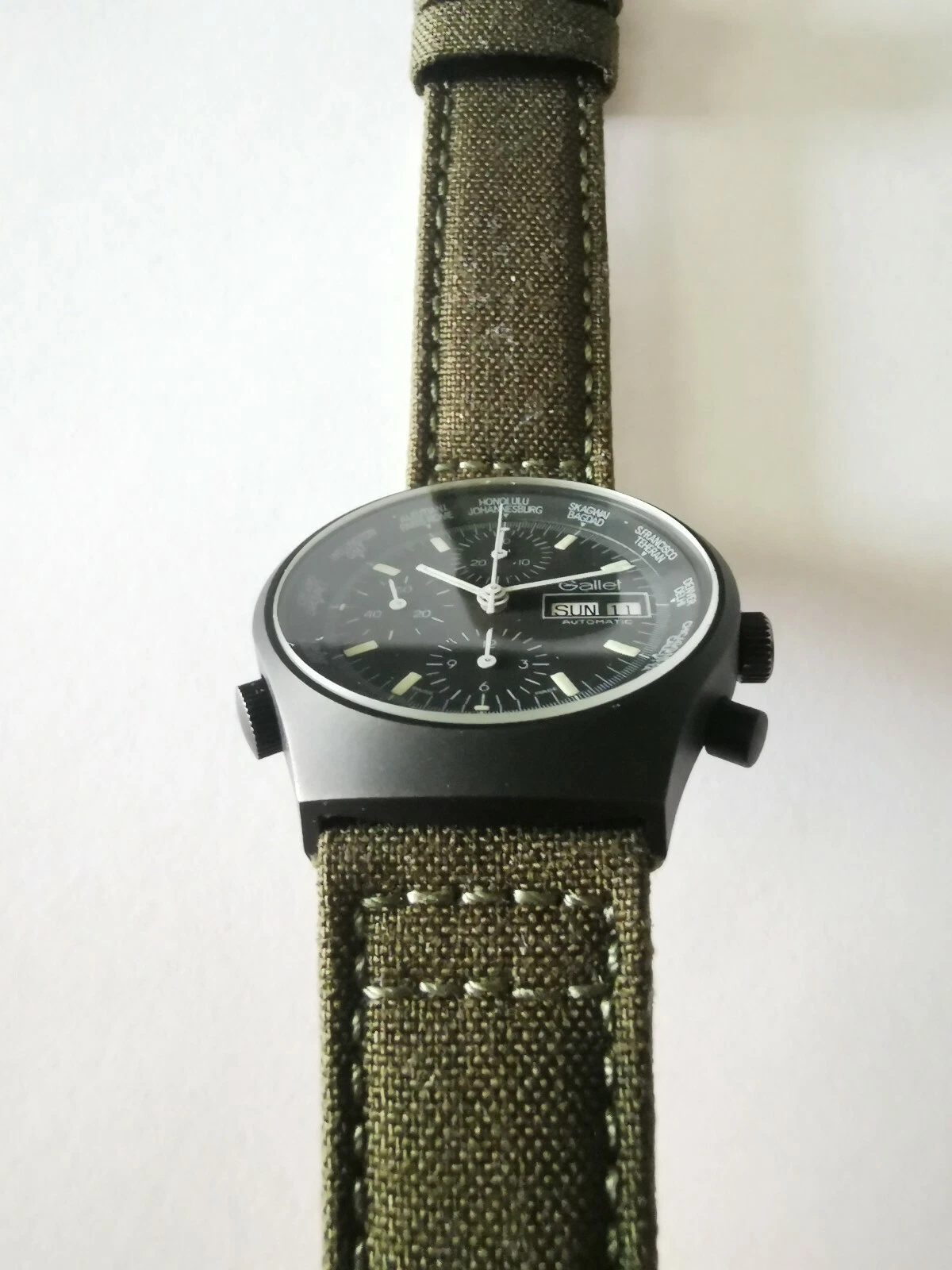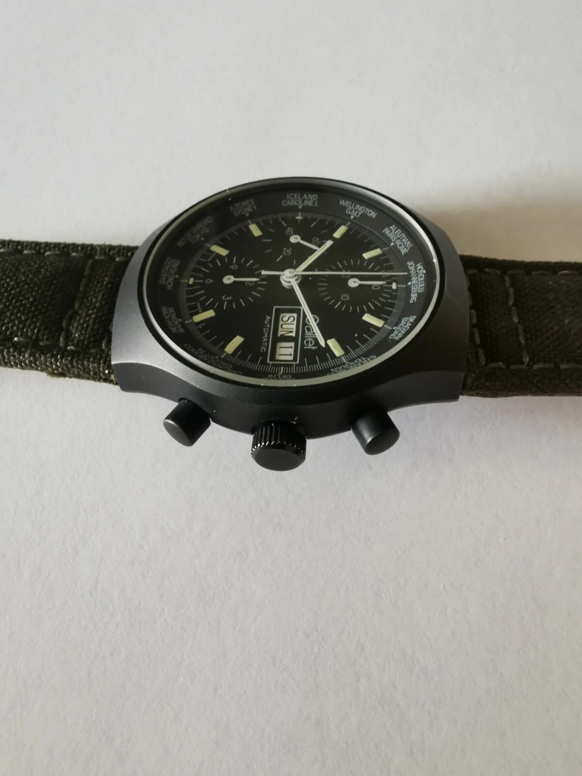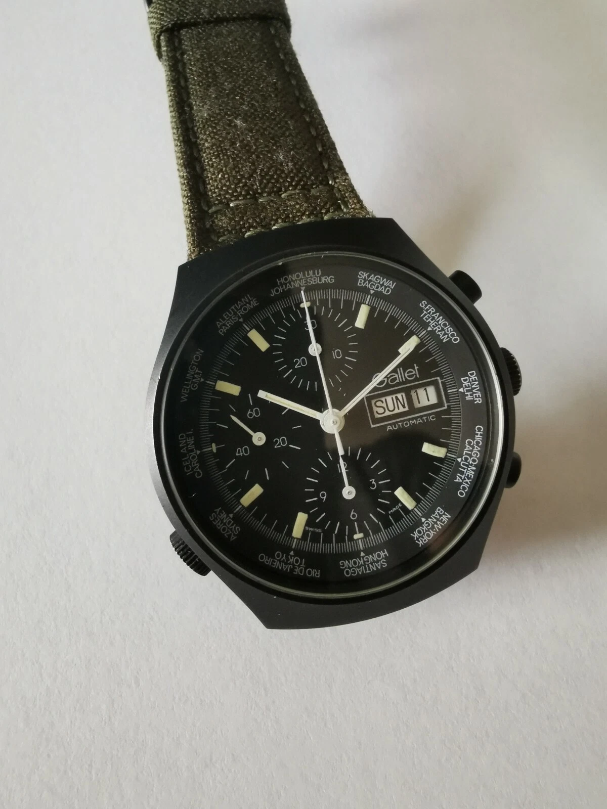 Vintage Gallet Valjoux 7750 World-Time GMT chronograph automatic Black PVD