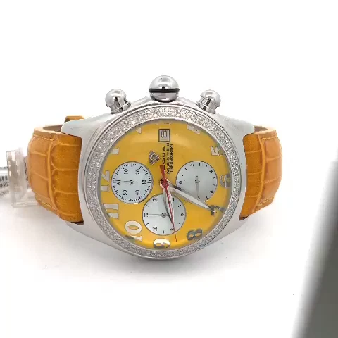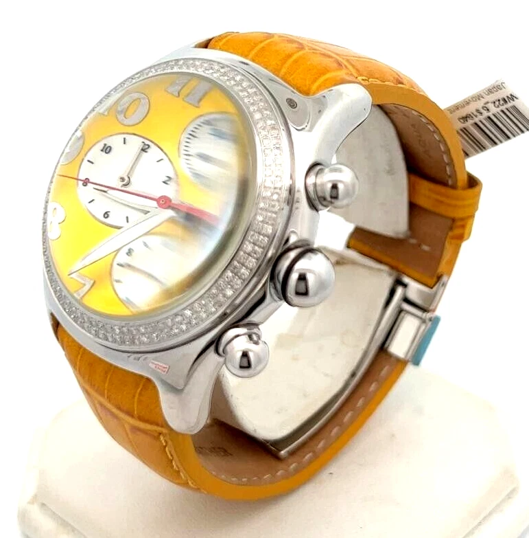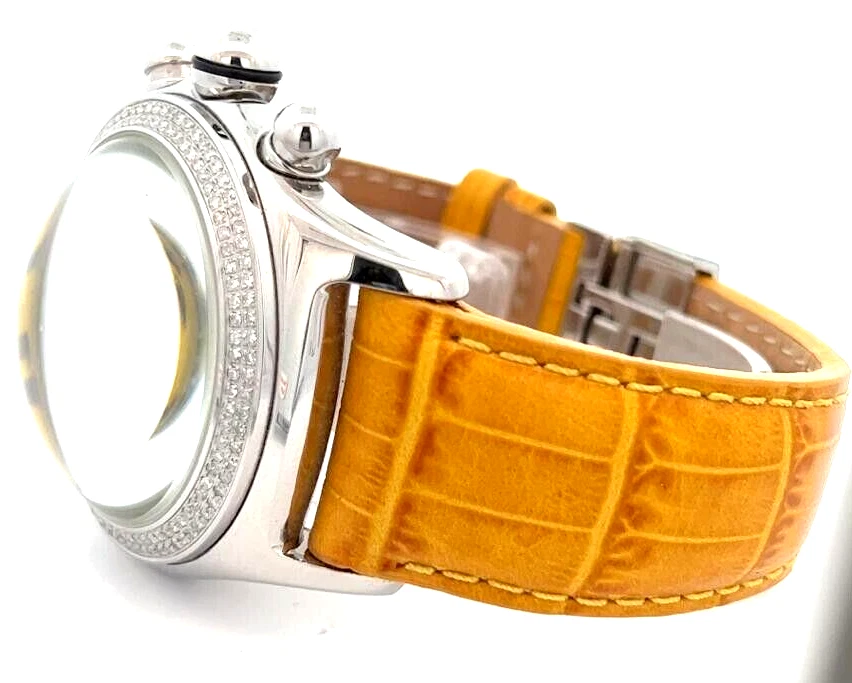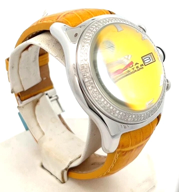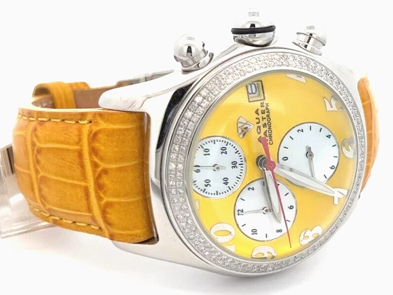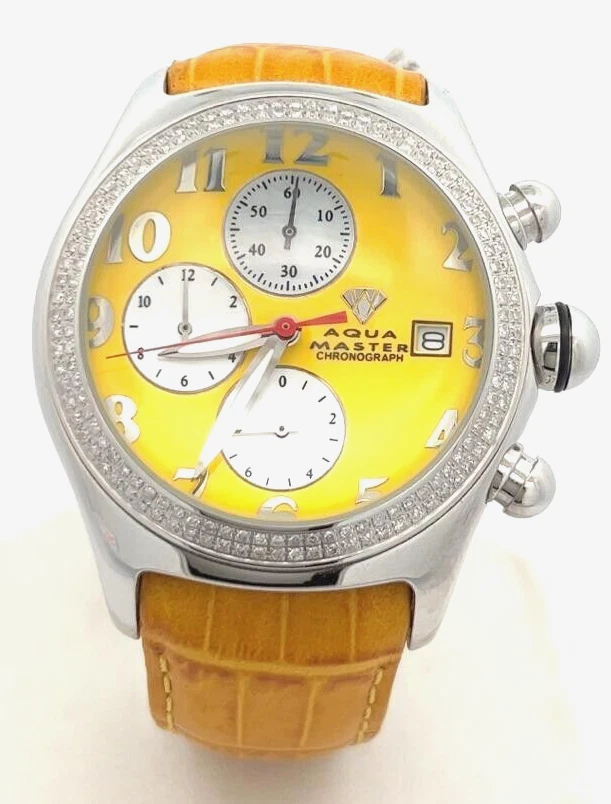 Aqua Master Men's Bubble Yellow Dial 1.5ct Diam Bezel Leather Band Watch W22_5