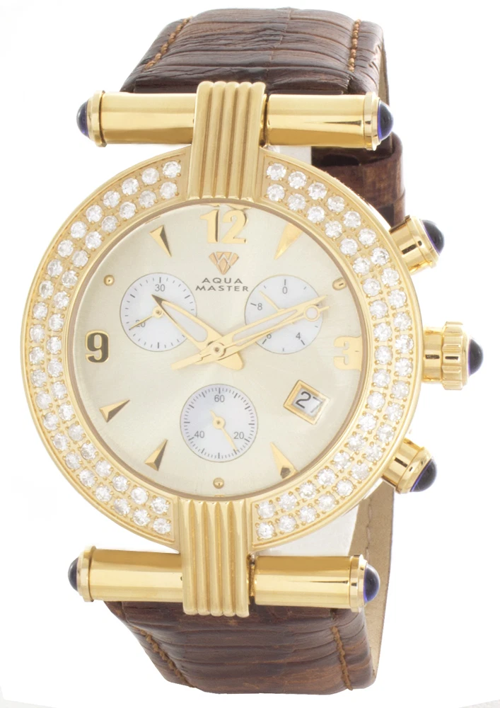 Aqua Master Womens Chrono Gold-tone Dial Brown Leather Band  Watch W#94_23_5