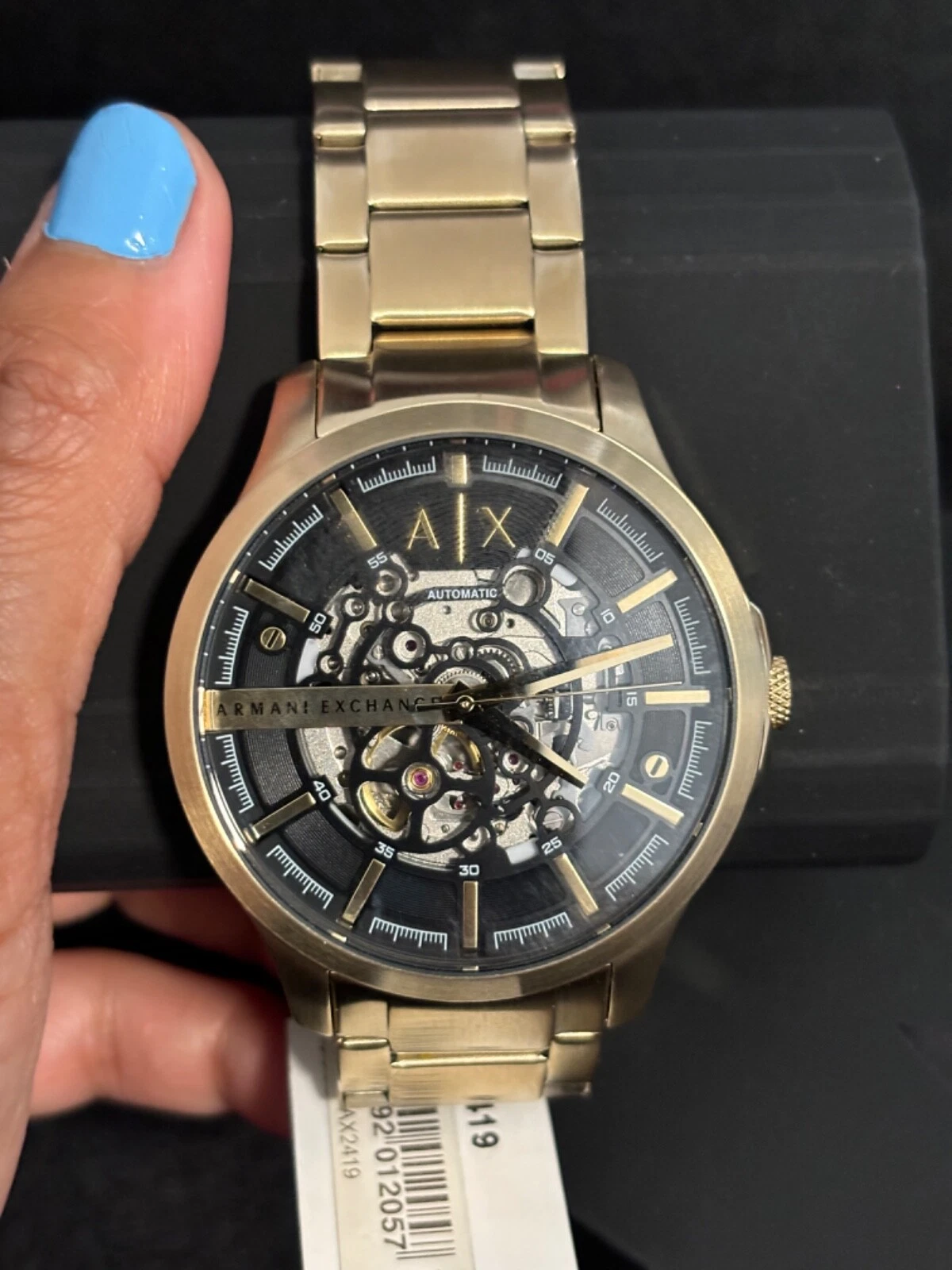 Armani Exchange AX2419 Hampton Automatic Black Skeleton Dial Boxed Instructions