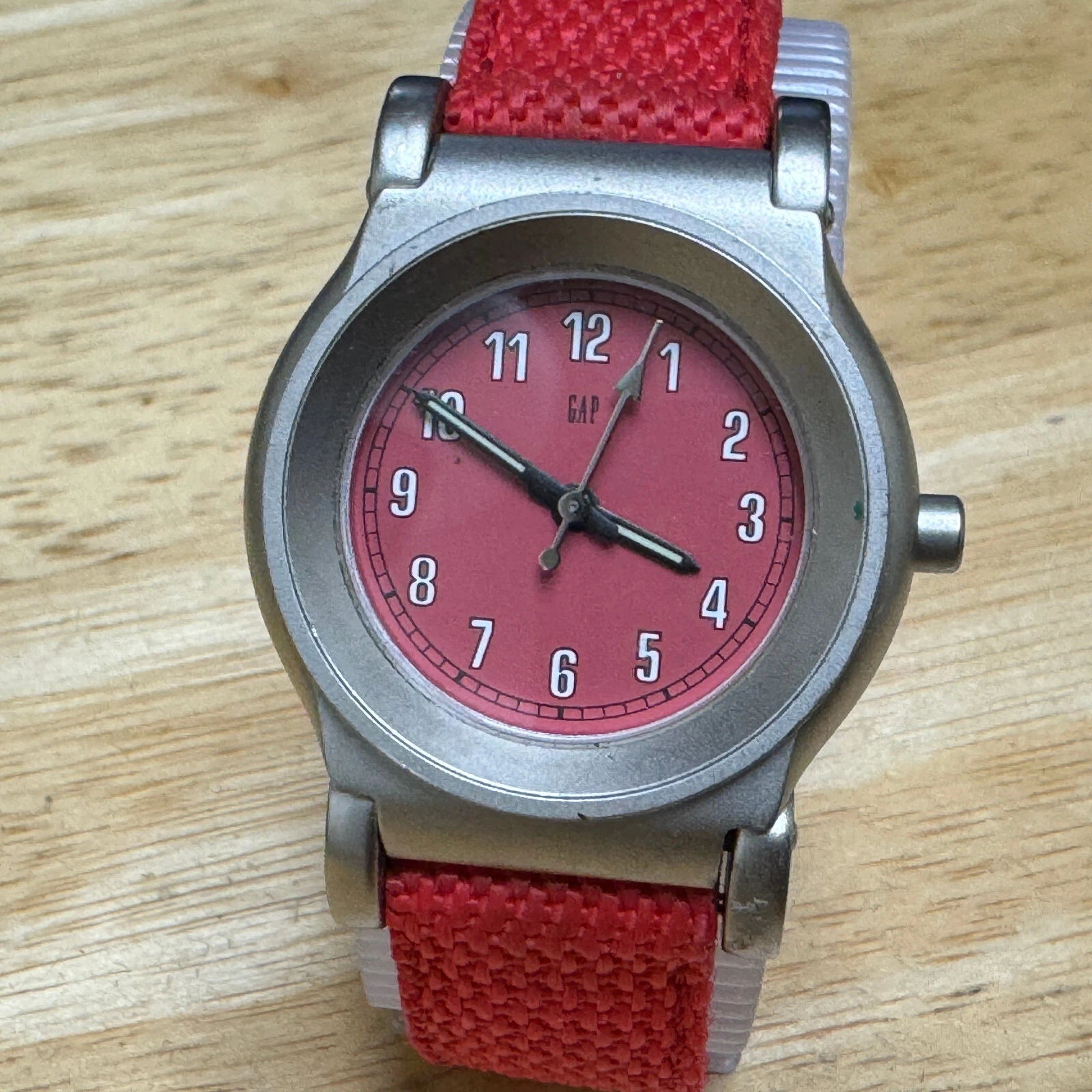 Vintage GAP Quartz Watch Unisex 30m Silver Red Japan Movt Canvas New Battery