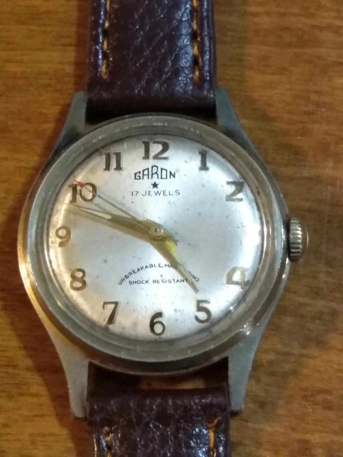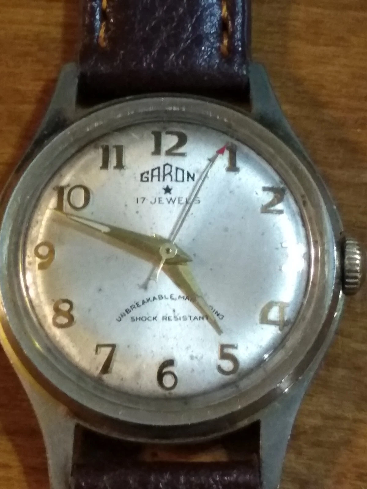 1950-60's Garon 17j men's watch, running just serviced new leather band N