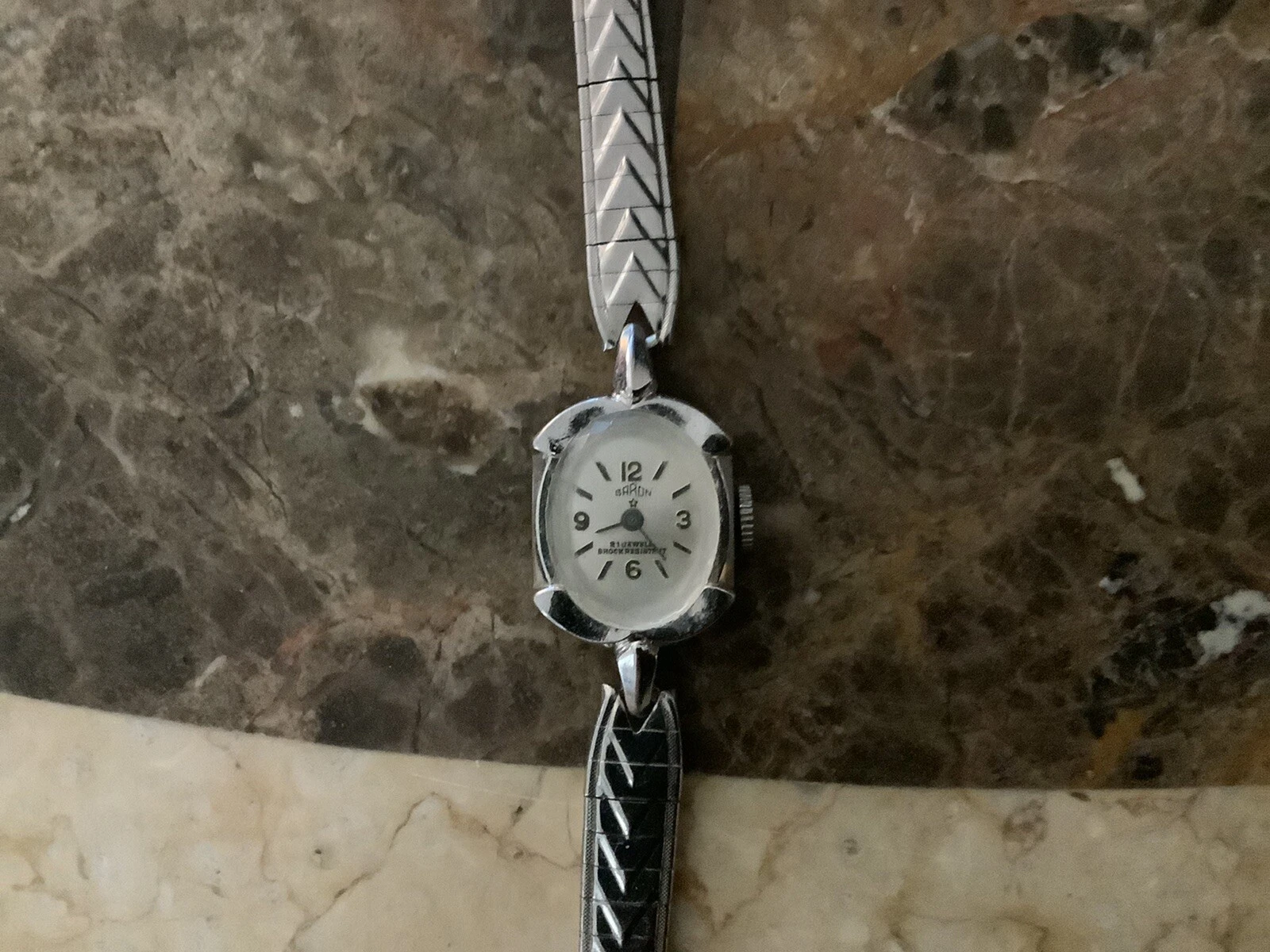 GARON 21 Jewels Shockresistant Silver Tone Oval MECHANICAL Watch Works? 6 "