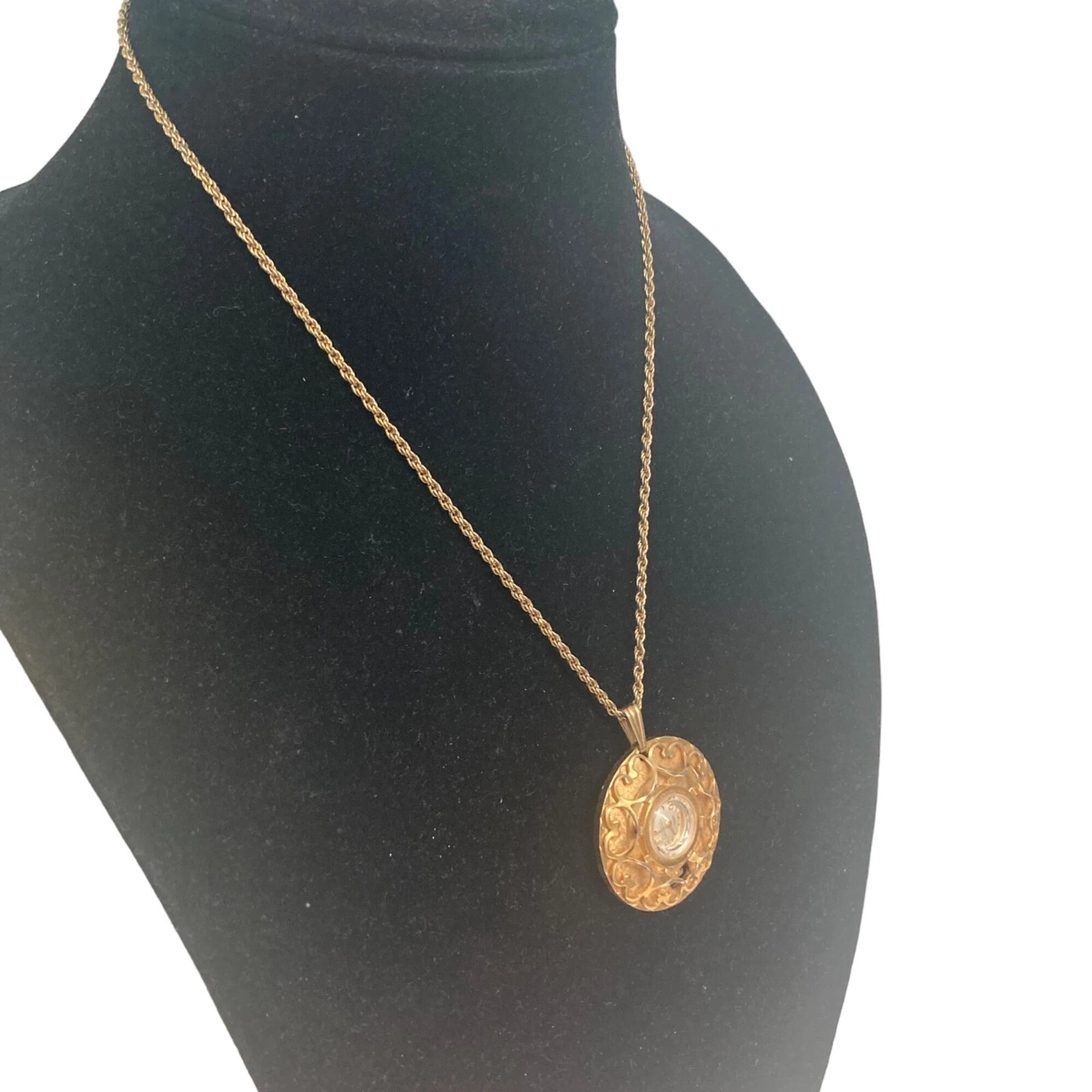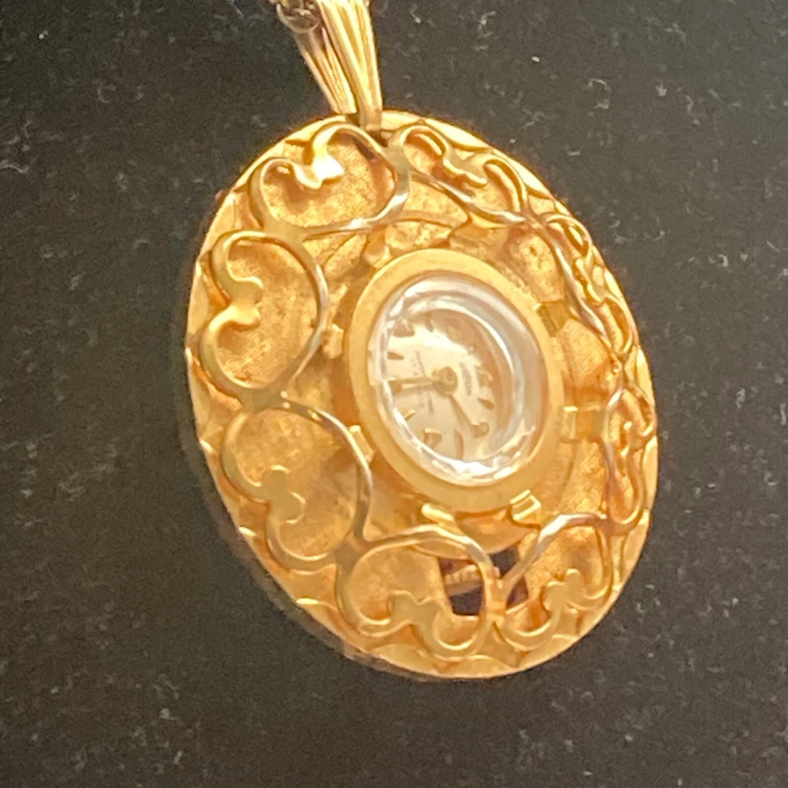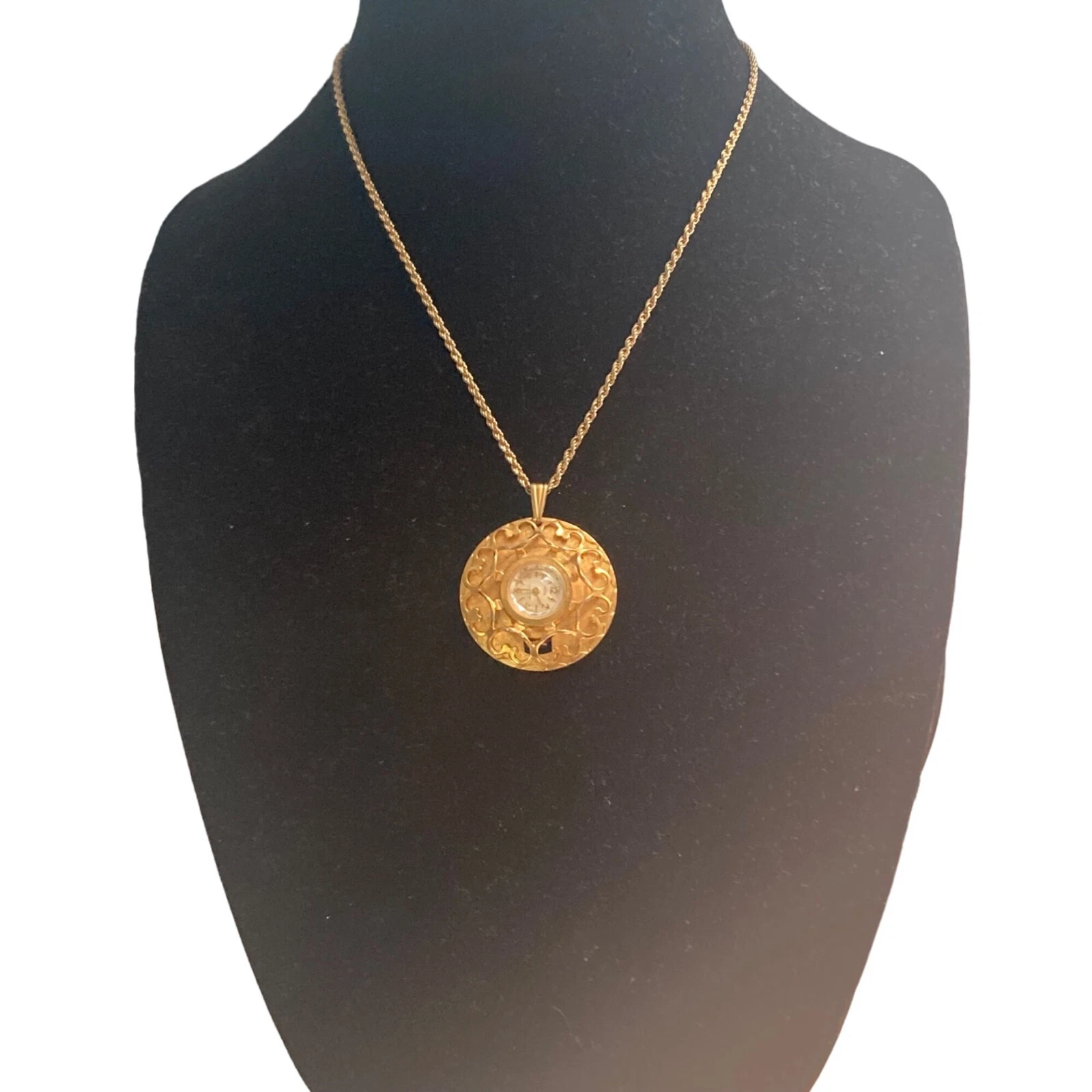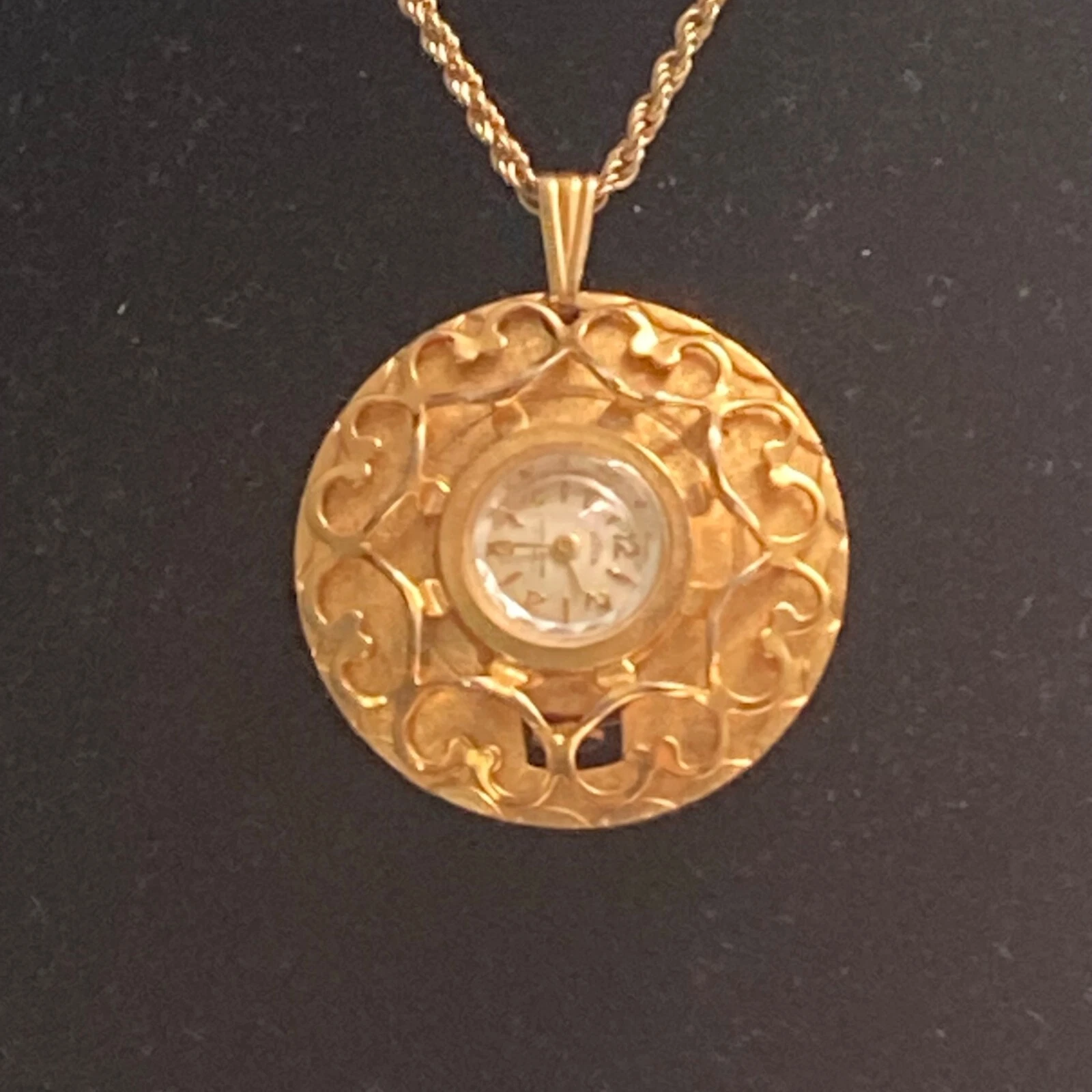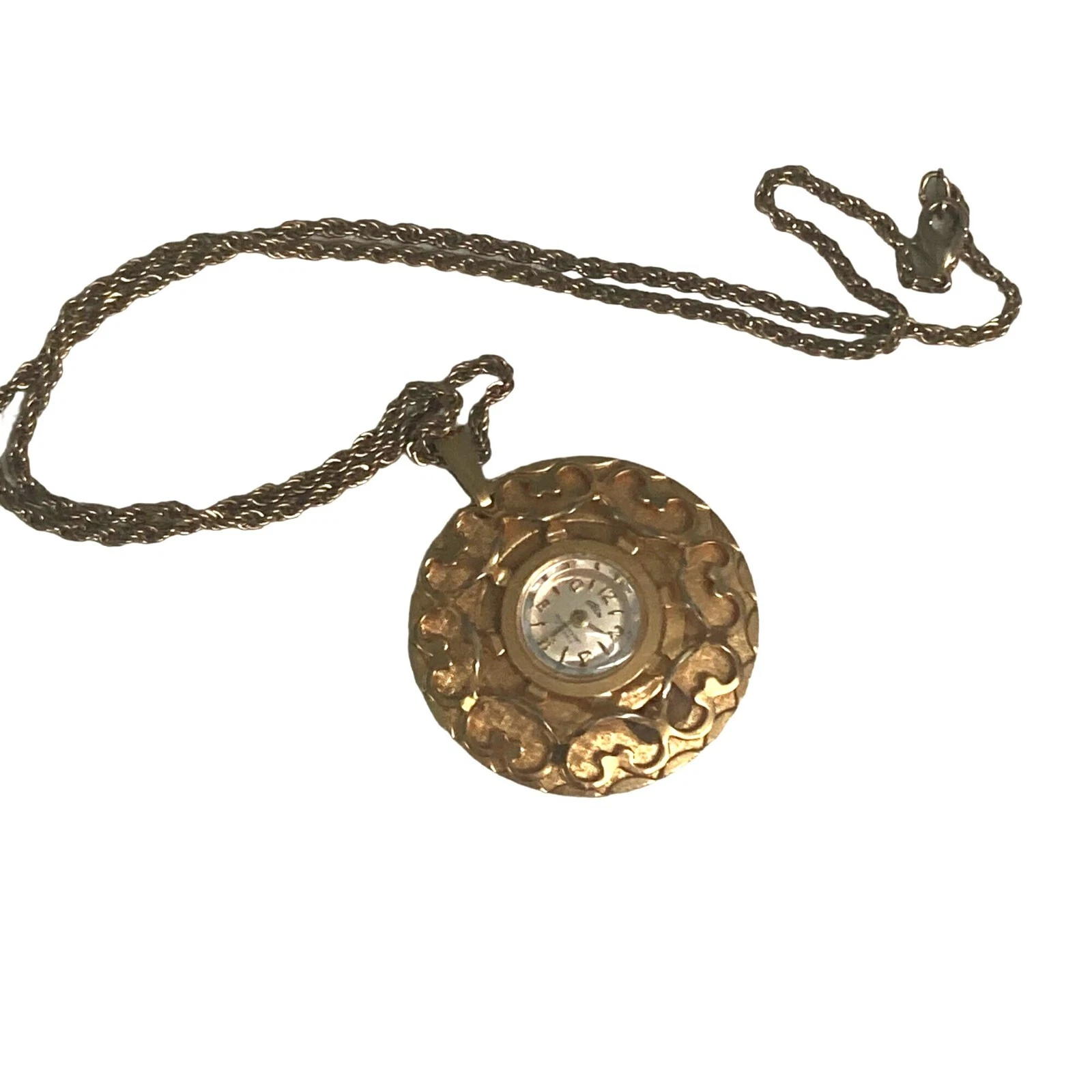 Vintage Garon Pendant Watch Gold Tone Wind Up Necklace 18” Chain As Is Read
