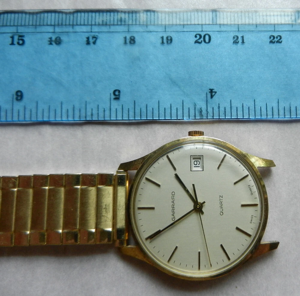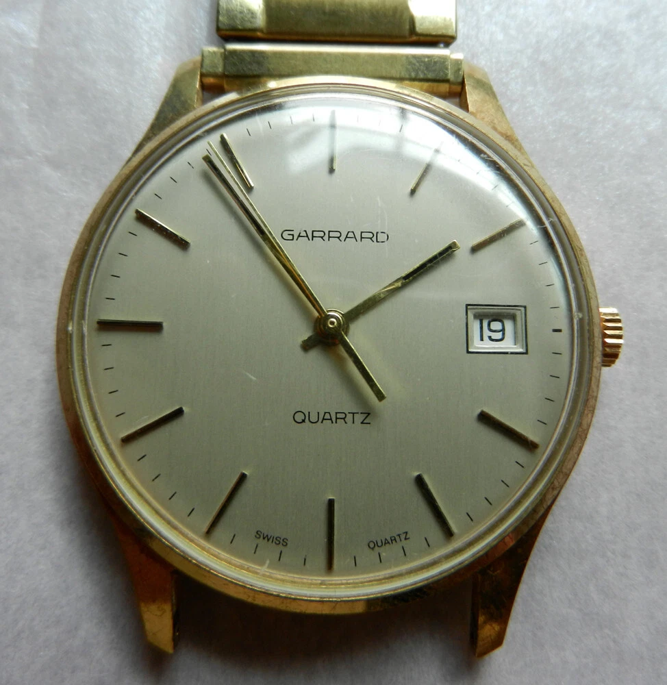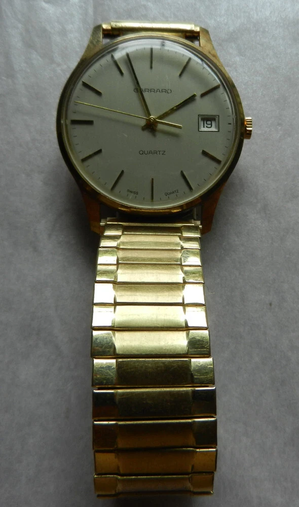 9k/kt/ct Solid Gold Swiss Garrard Men's Quartz Bracelet Watch Date 34mm