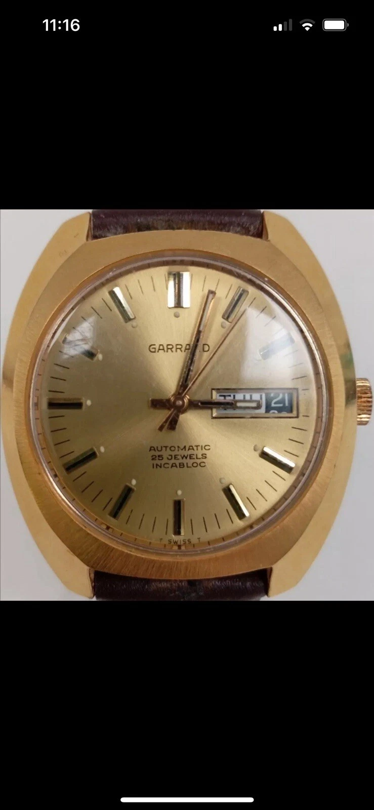 Garrard Swiss Made Men's Automatic Wristwatch Gold-Tone Day/Date Window
