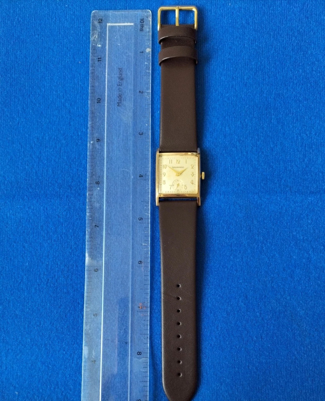 Vintage Garrard Gents Gold Square Face Hand Winding Watch + Presentation Box