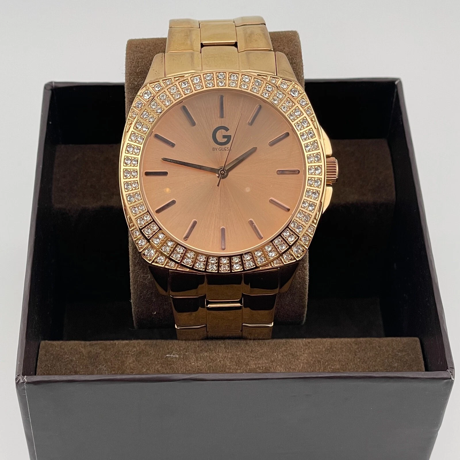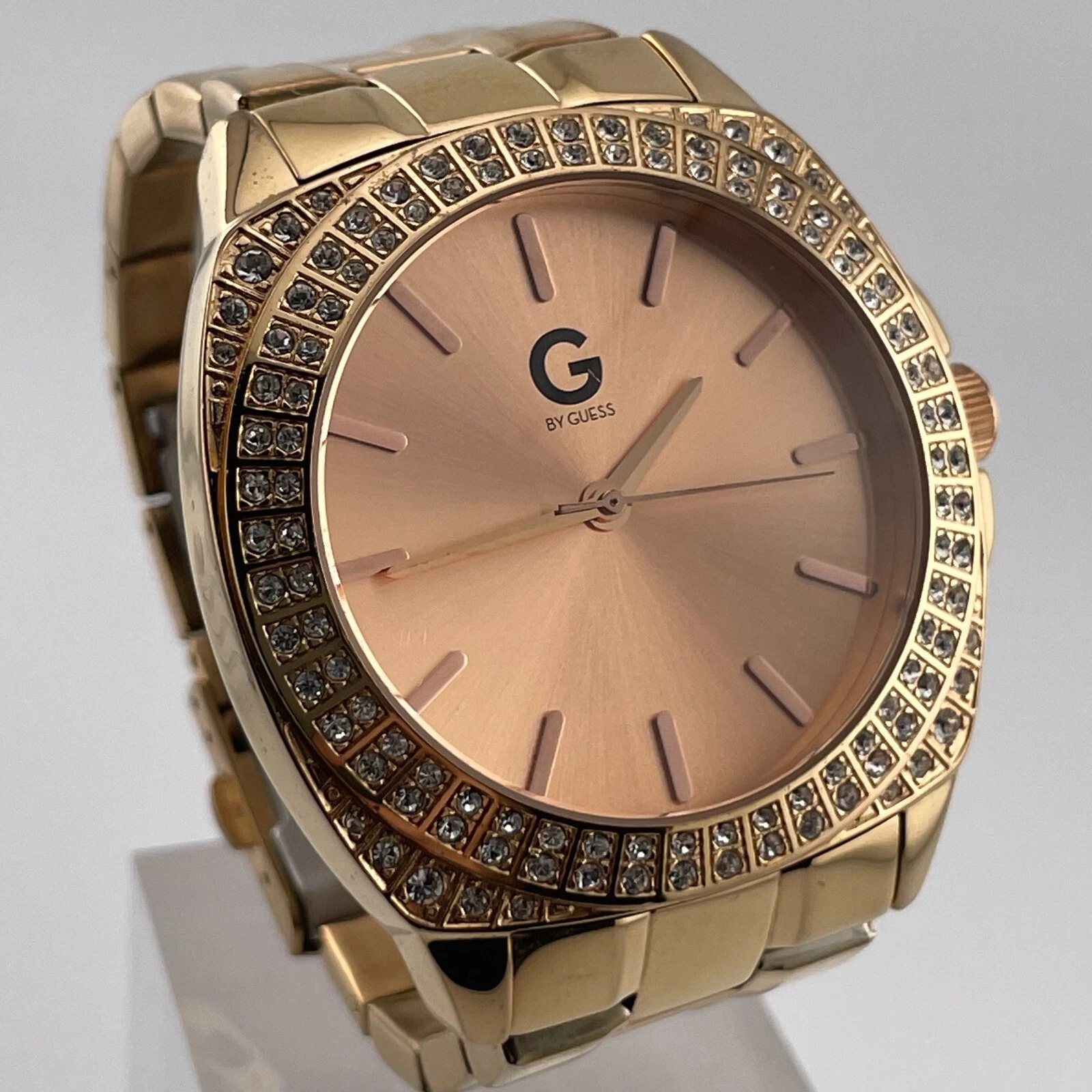 G by Guess Watch Womens 44mm Gem Set Case In Box Quartz Analog Three Hands