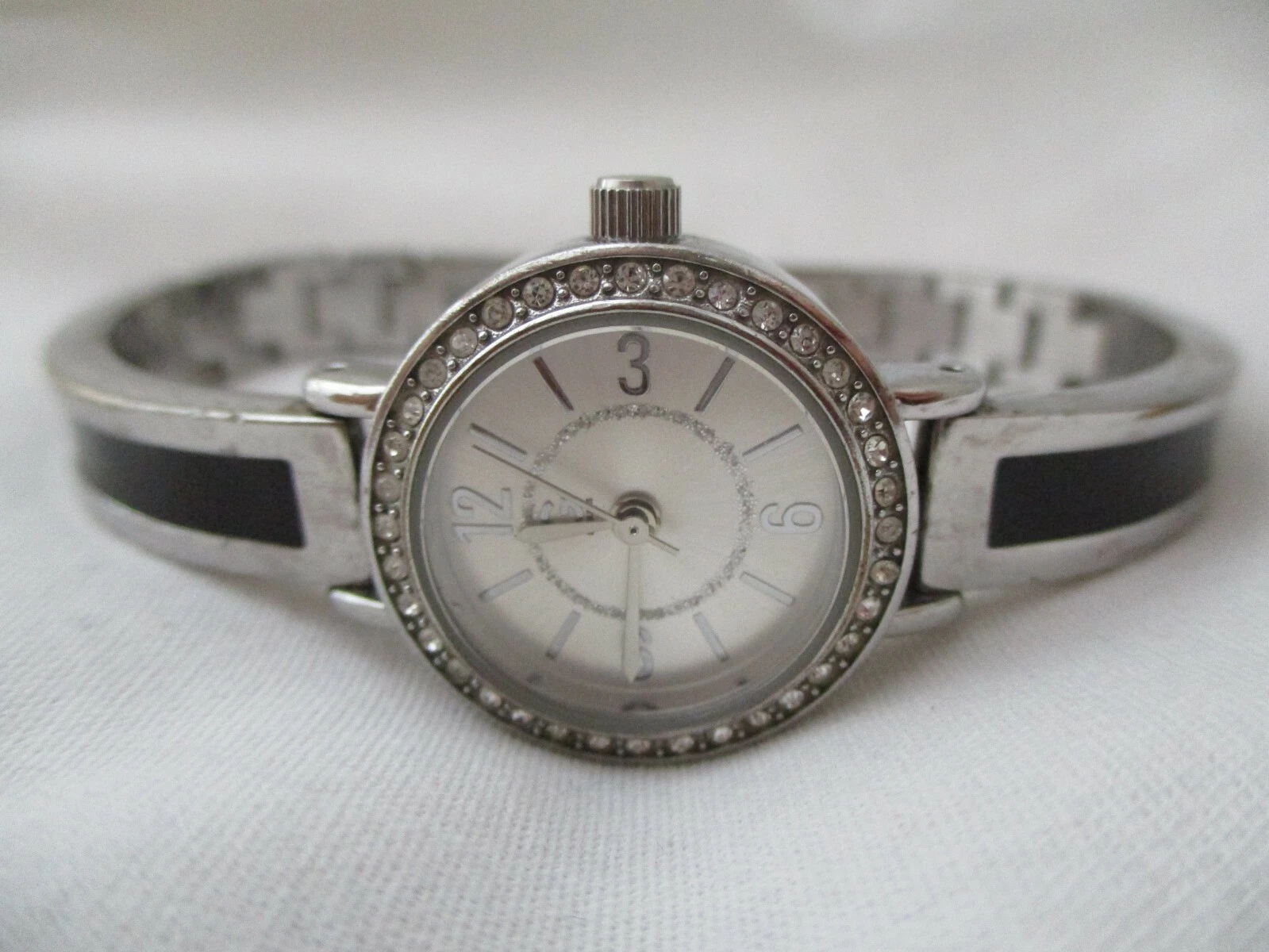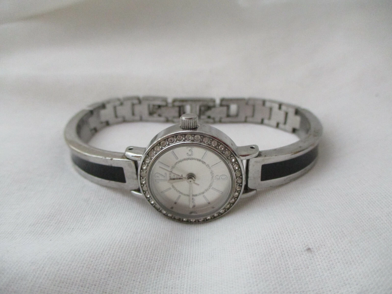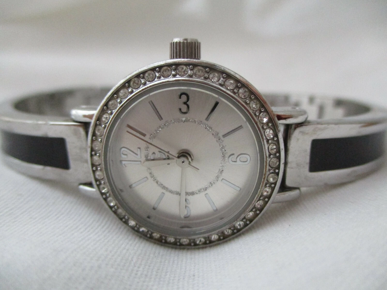 G Watch by GUESS, Metal Bracelet Band, Rhinestones, Black & Silver, WORKING!