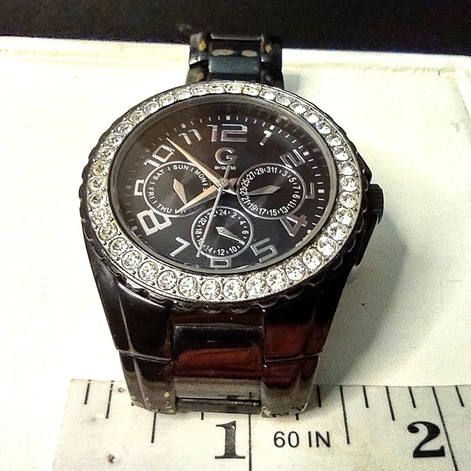 Guess Large Black Chronograph Wrist Watch Rhinestones