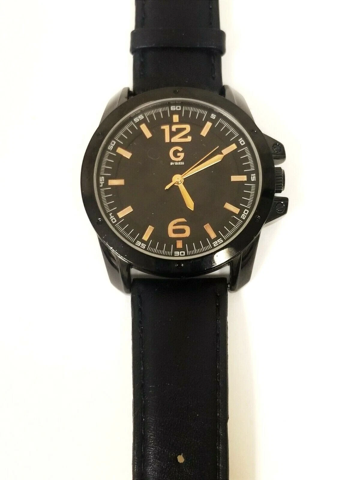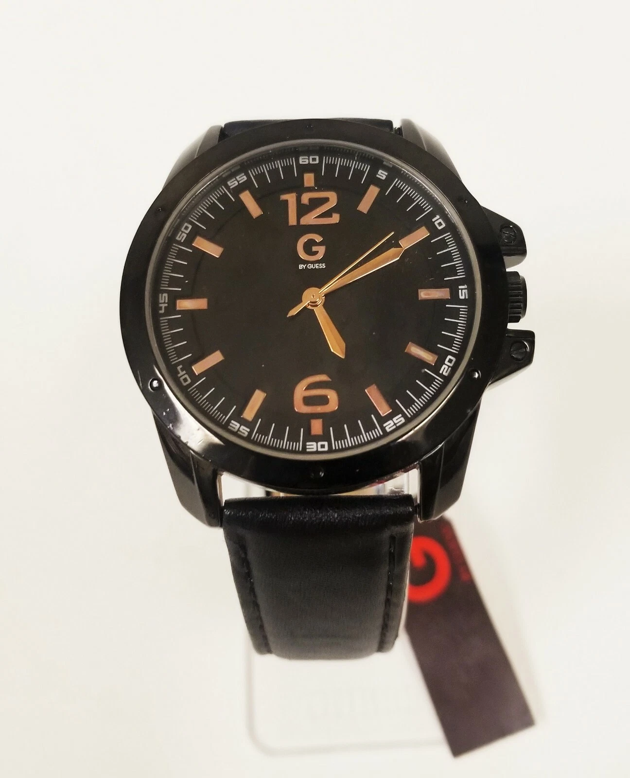 NEW G BY GUESS BLACK TONE,LEATHER BAND,ROSE GOLD ACCENT,CLASSIC WATCH G84048G1
