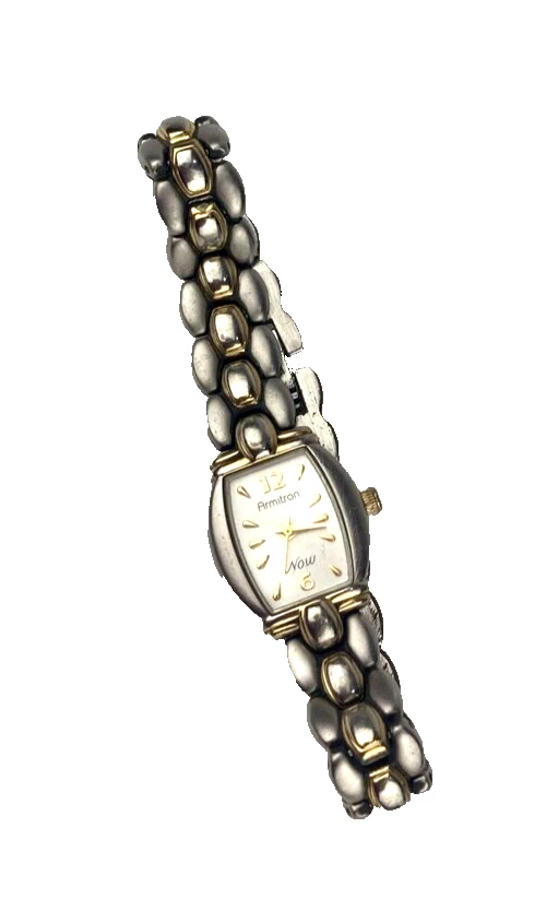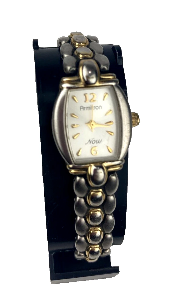 ARMITRON NOW Women's 2 Tone Case Bezel and Band Silver Dial -New Battery Running