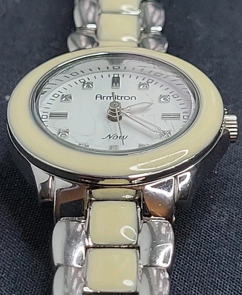 Armitron Now White And Silver Tone 75/3878SV Quartz Womens Watch New Battery VGC