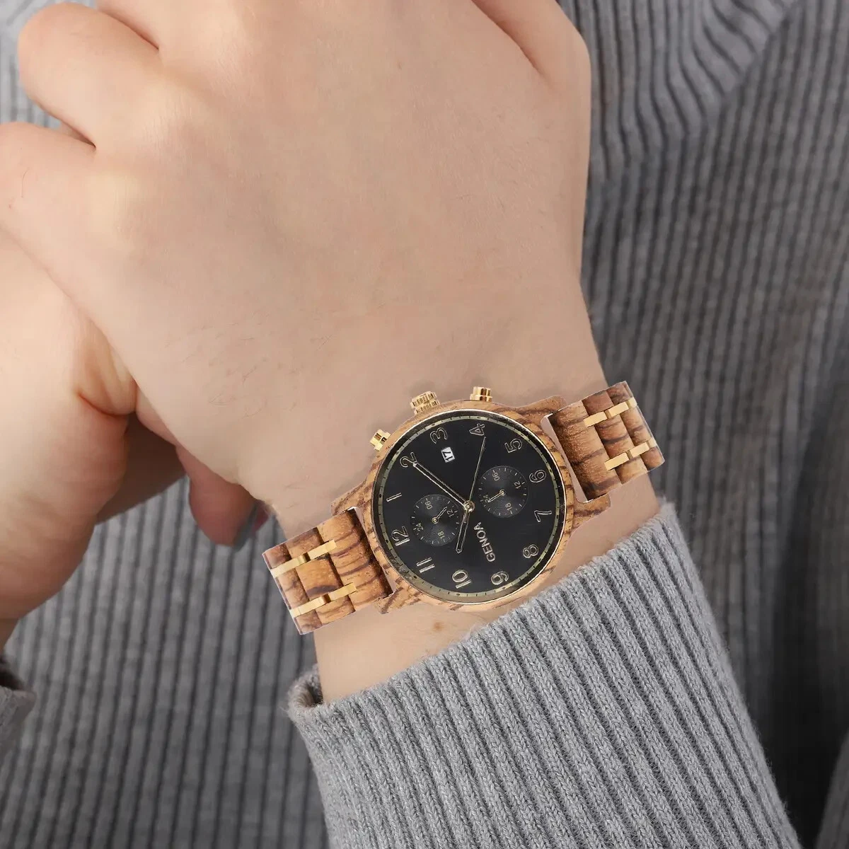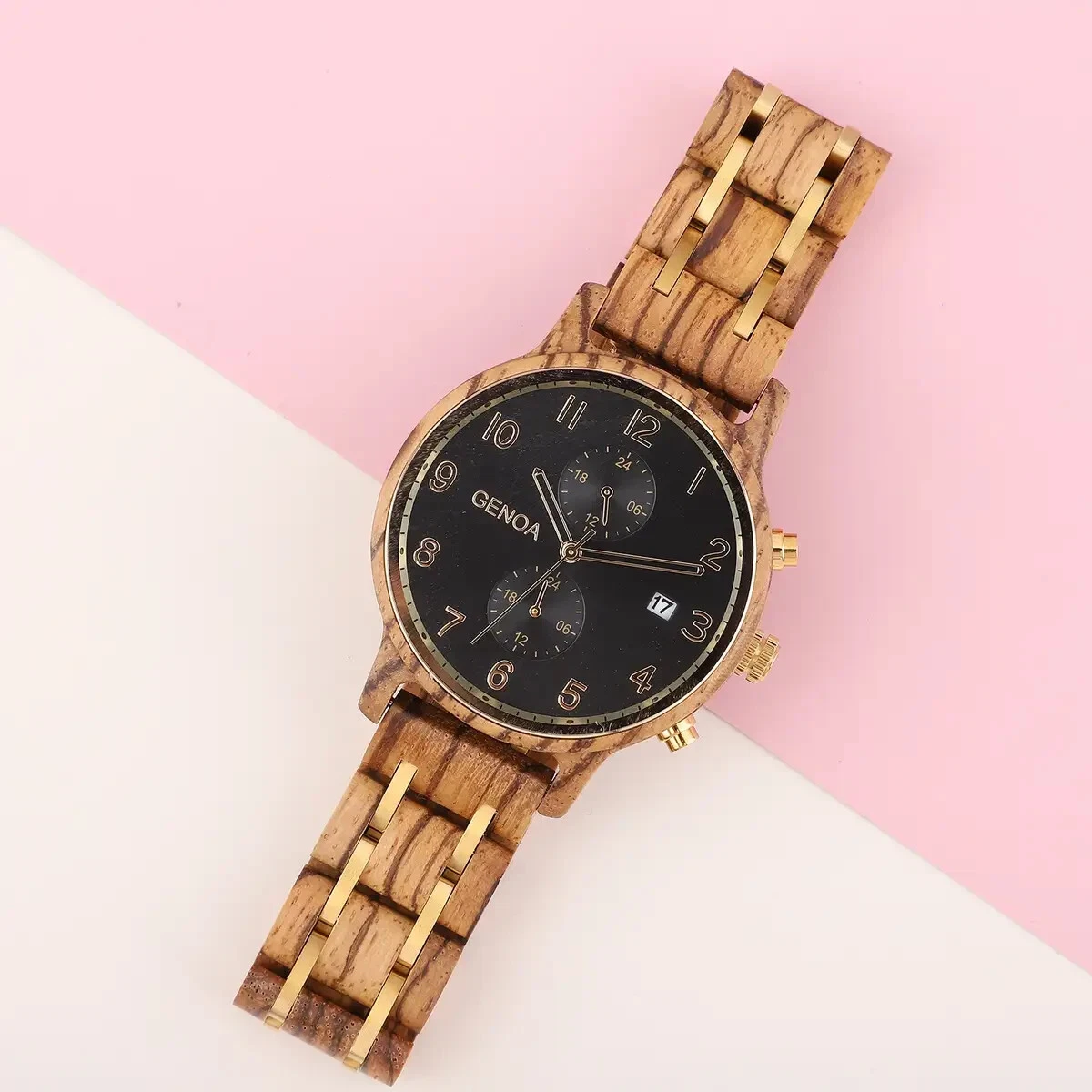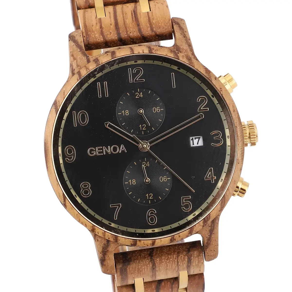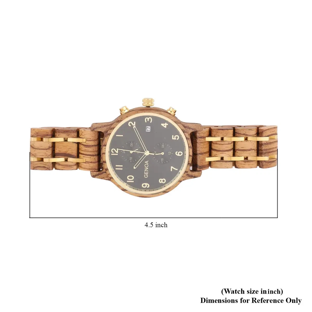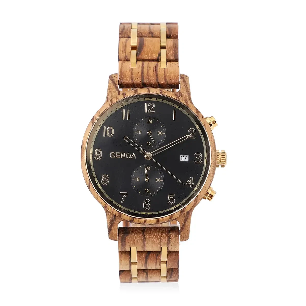 Genoa Japanese Movement Multi Function Watch with Stainless Steel and Zebra Wood