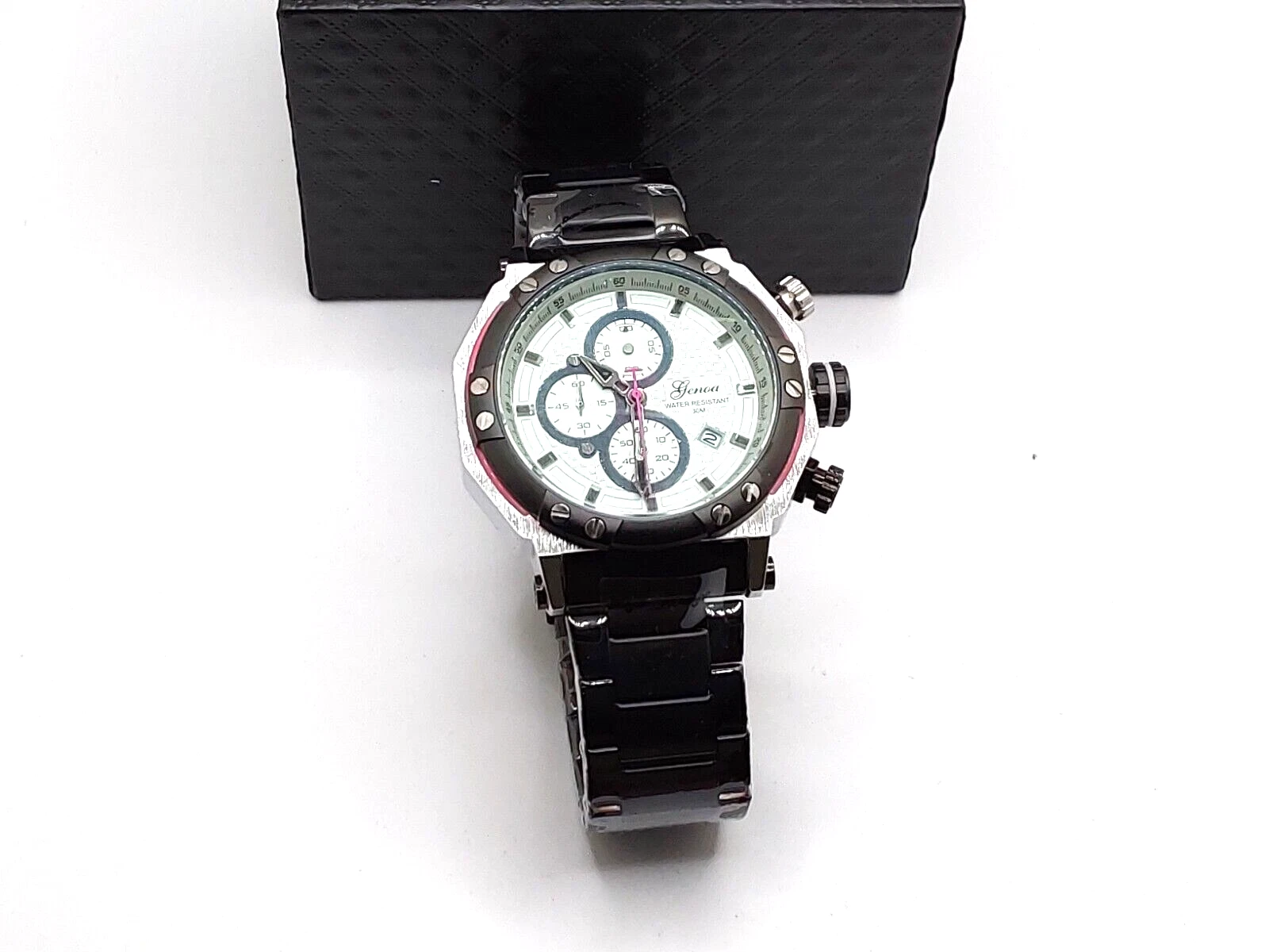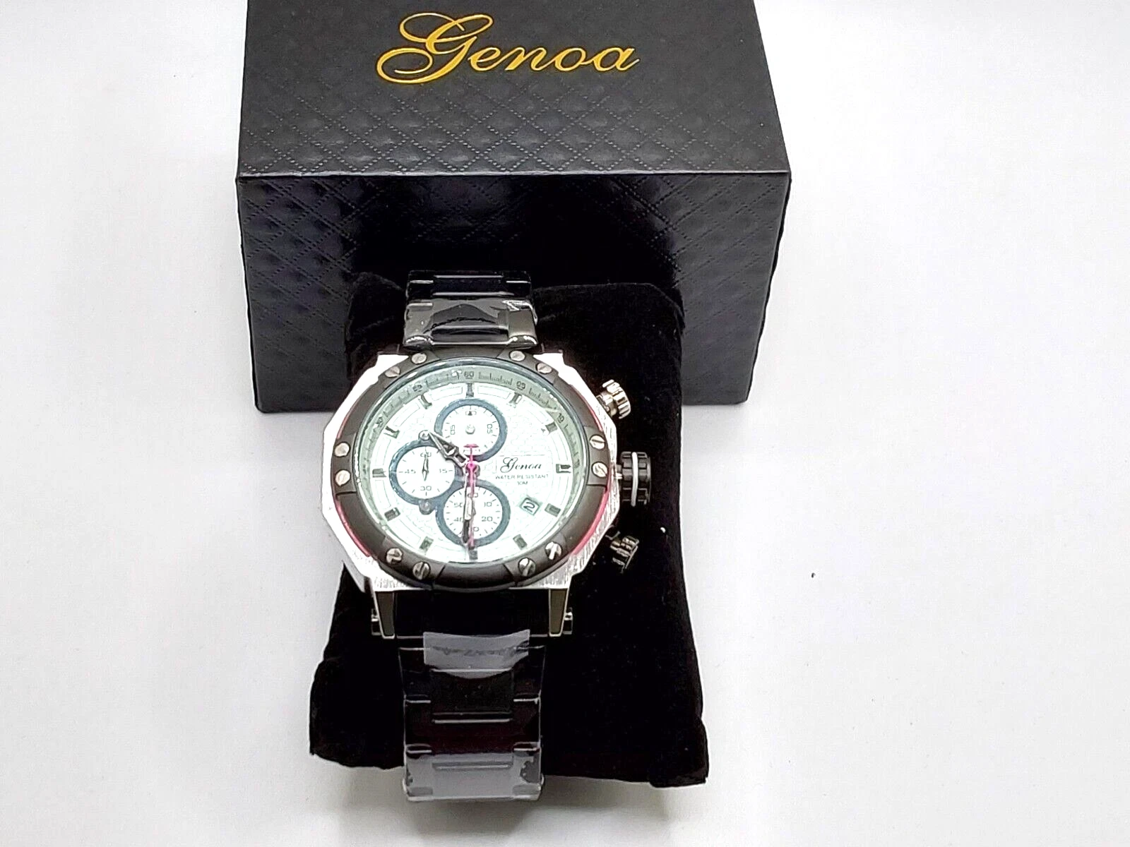 Genoa Multifunction Quartz Watch W Dial & ion Plated Black Stainless Steel Strap