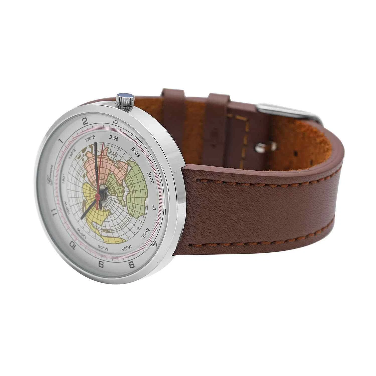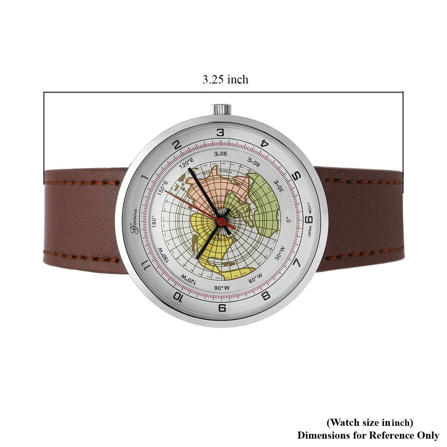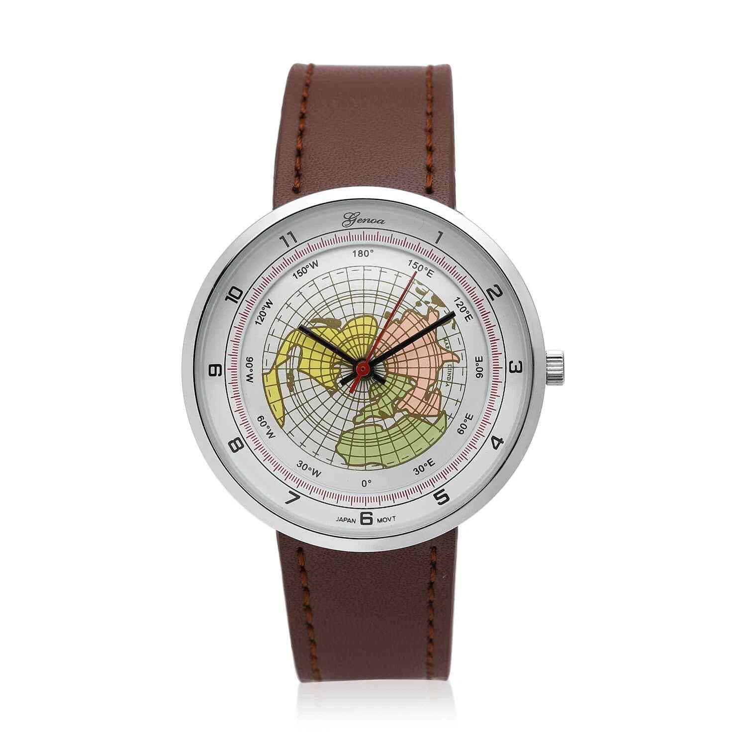 GENOA Miyota Japanese Movement 3D Earth Pattern Dial Watch Brown Leather Strap