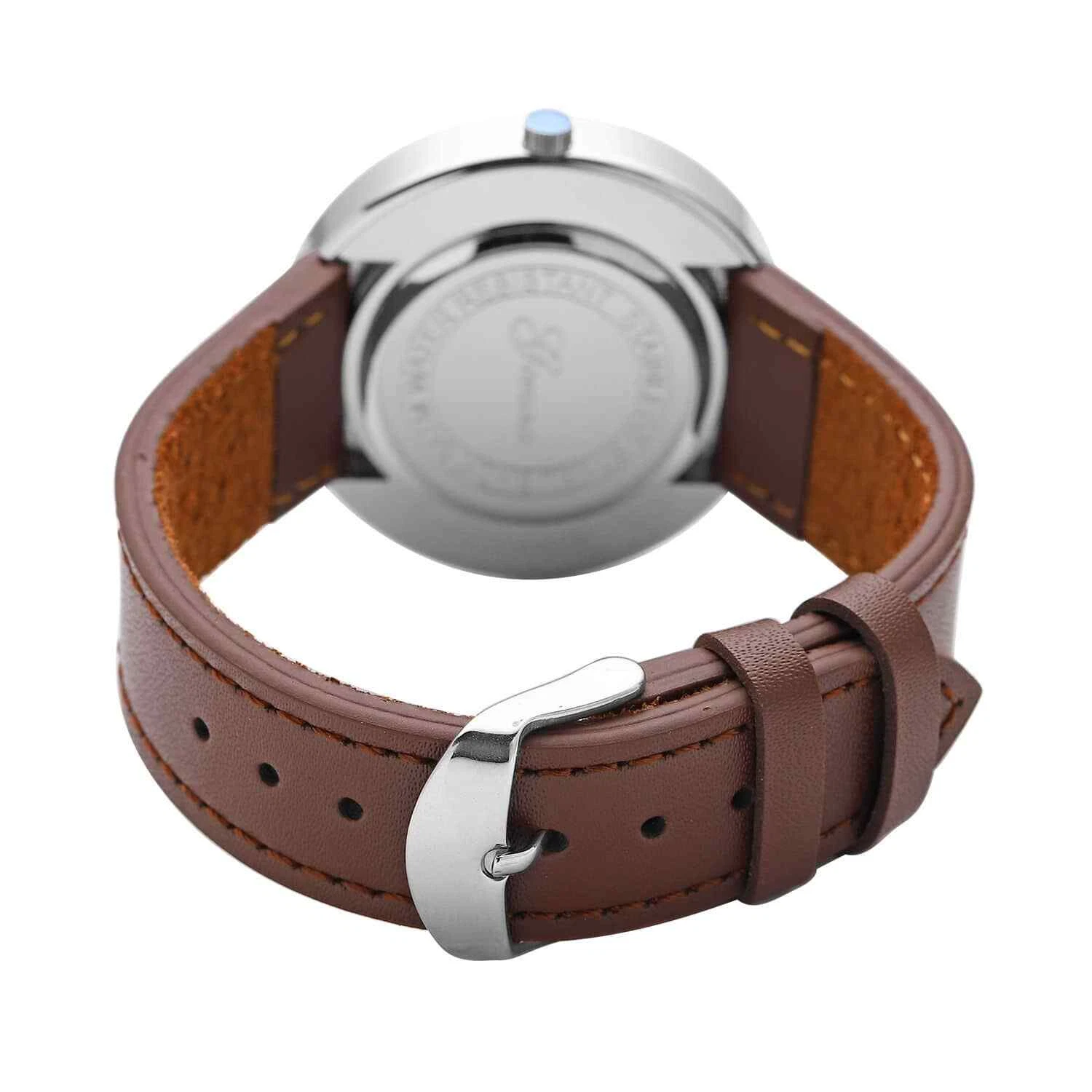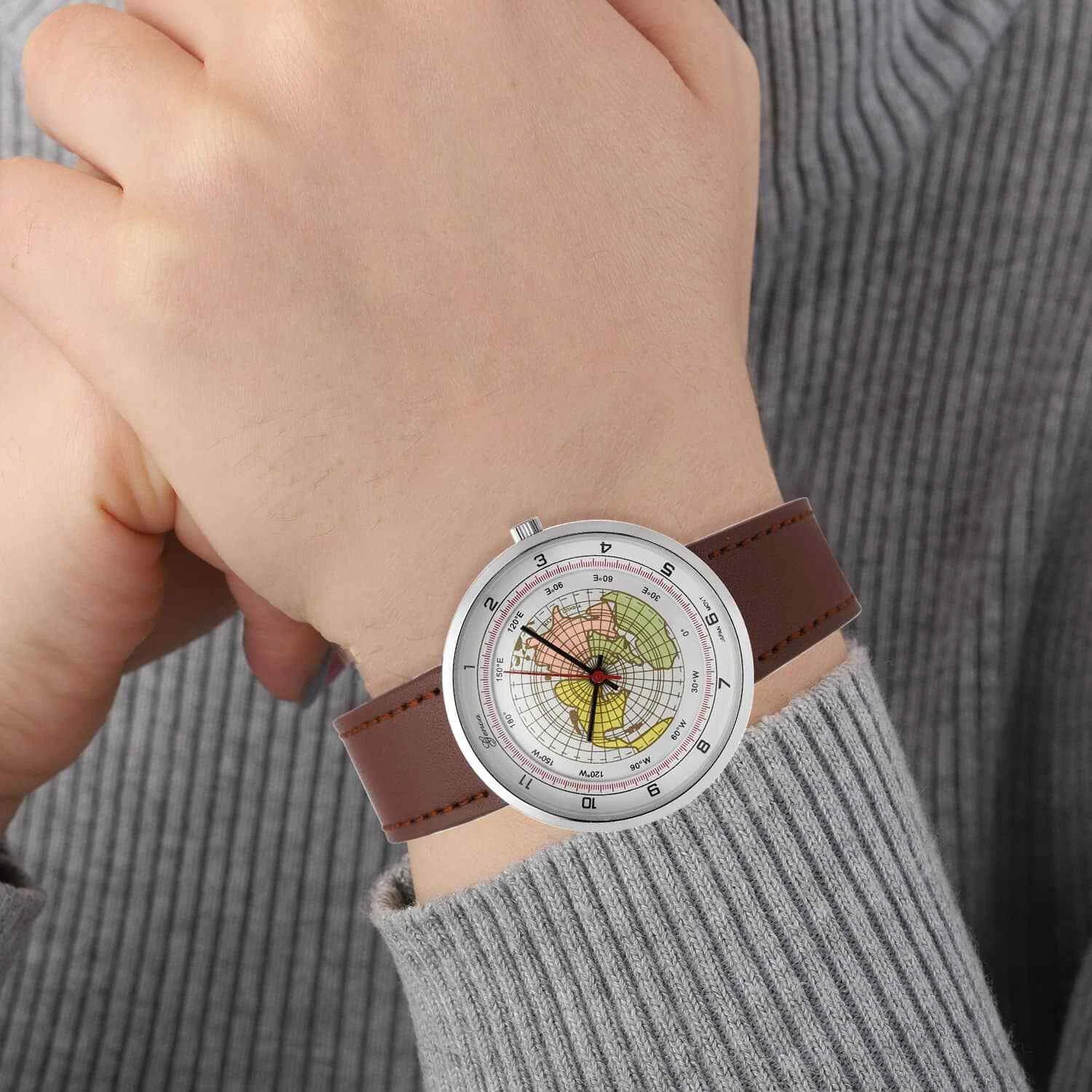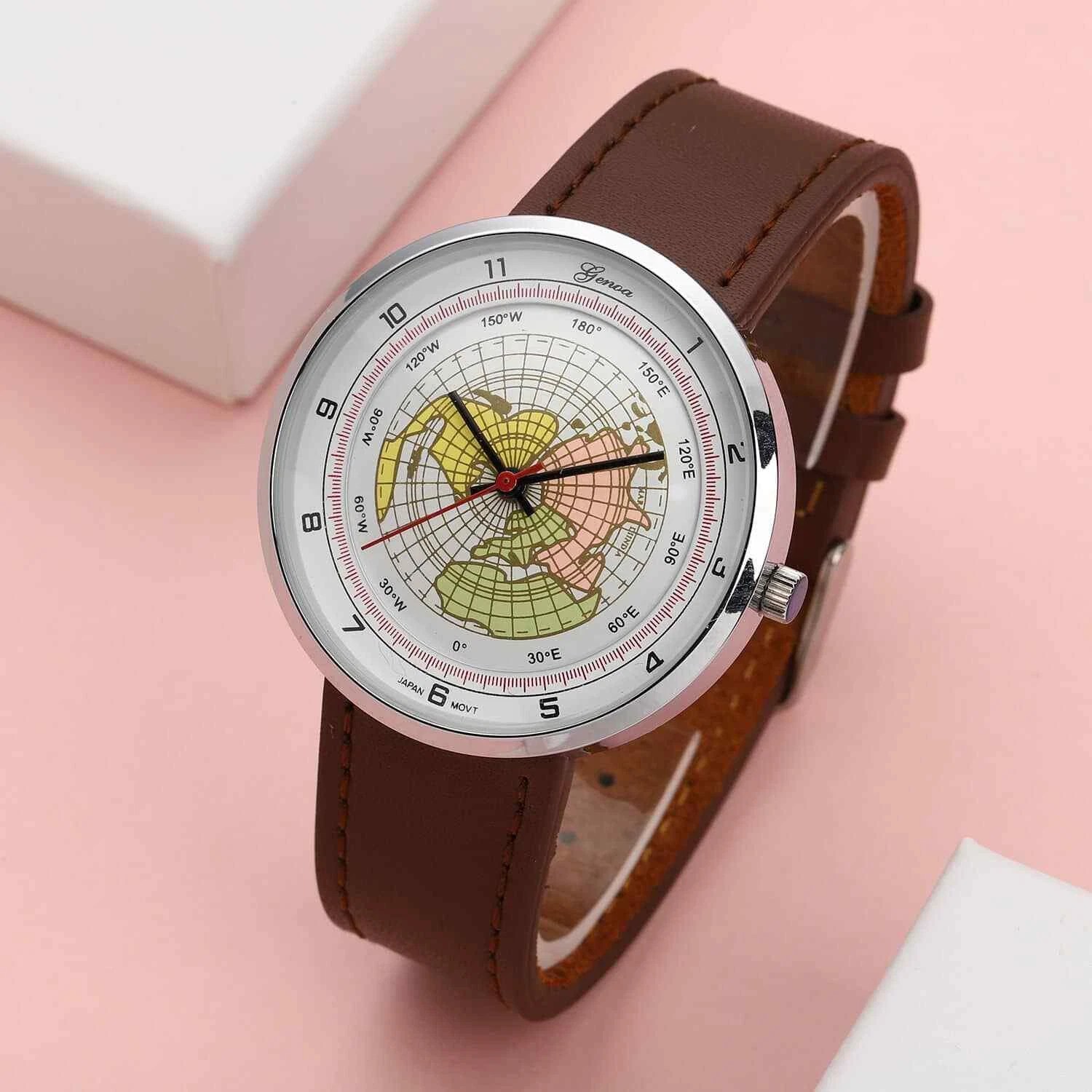 GENOA Miyota Japanese Movement 3D Earth Pattern Dial Watch Brown Leather Strap