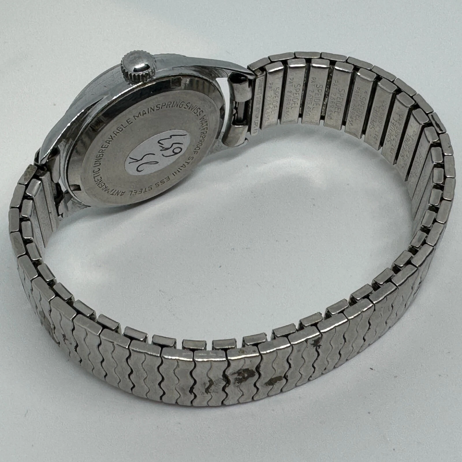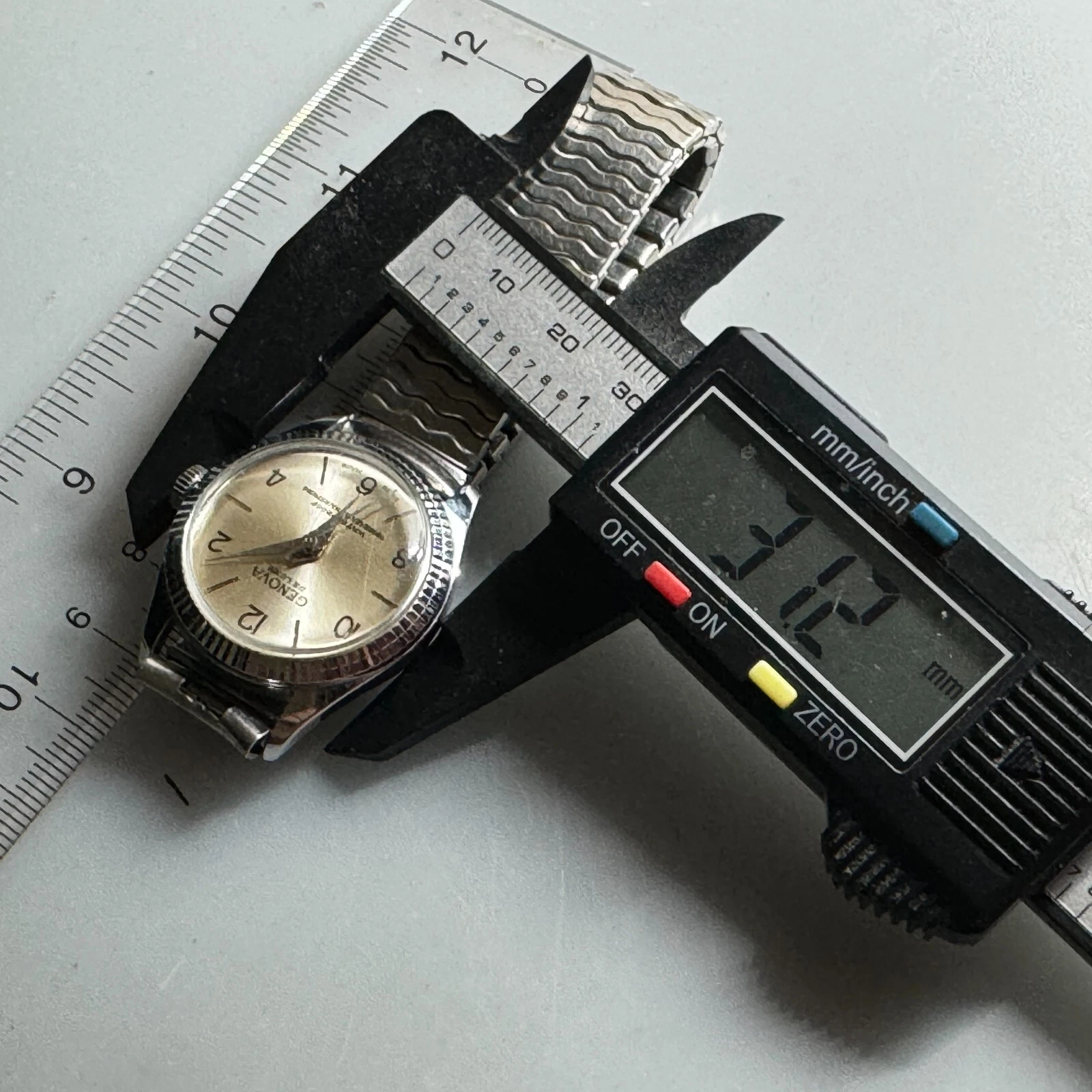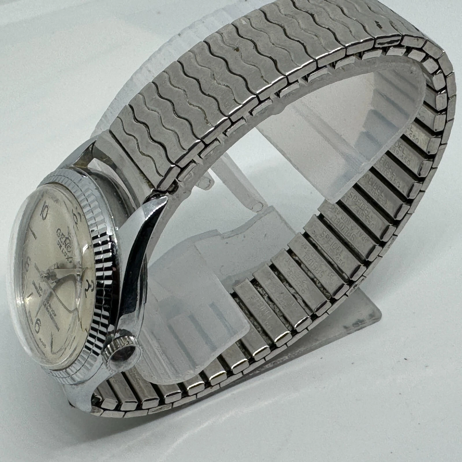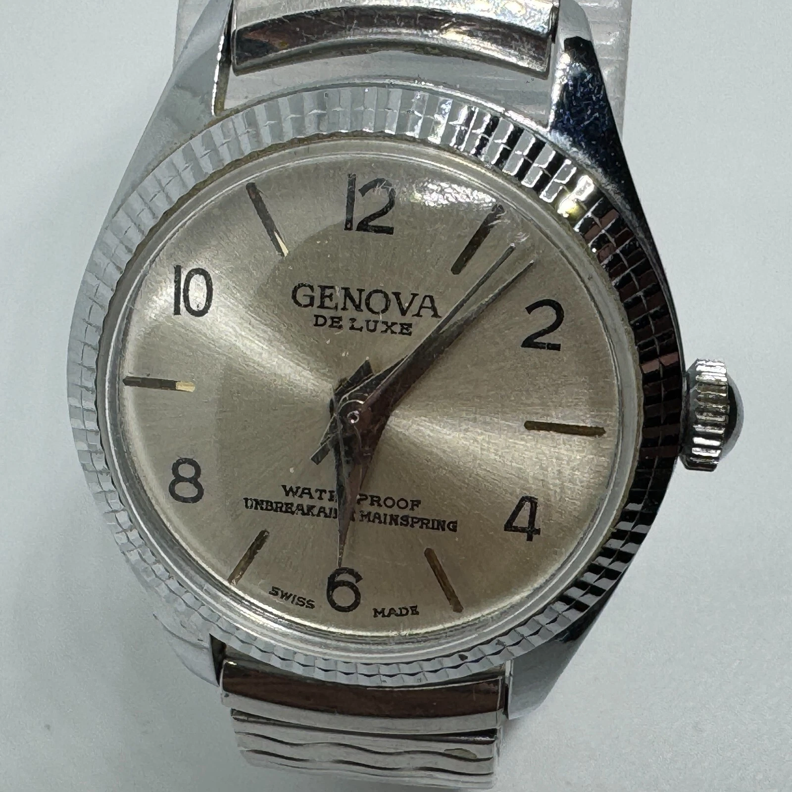 VTG Genova Swiss Hand-Winding Watch Men Silver Fluted Bezel Stretch ~ Run Fast