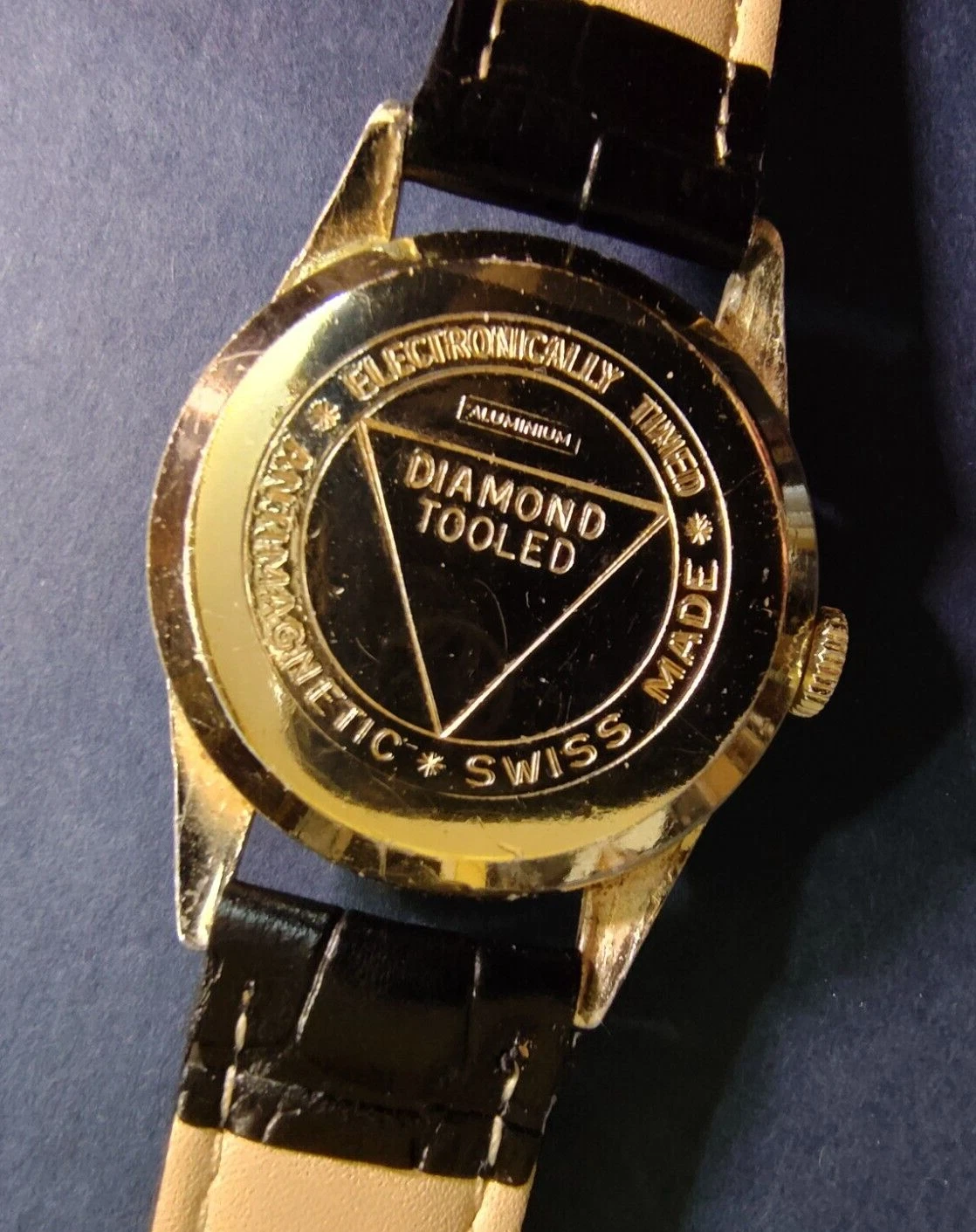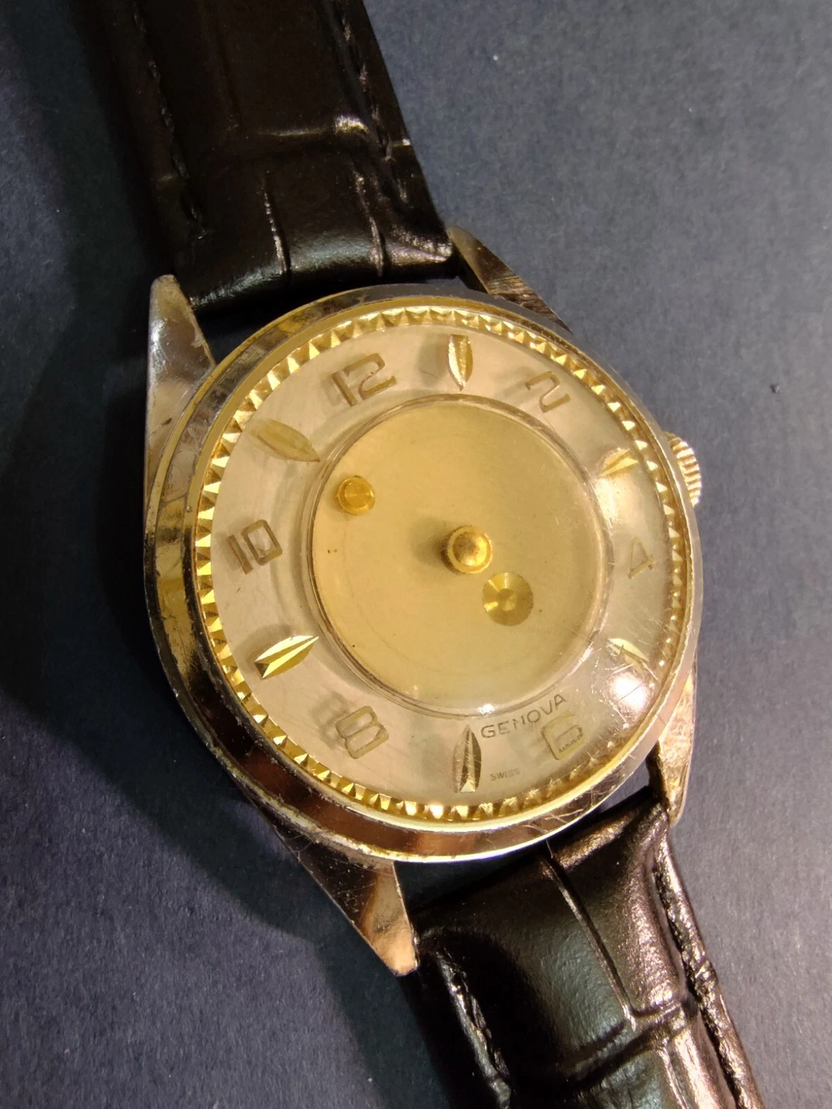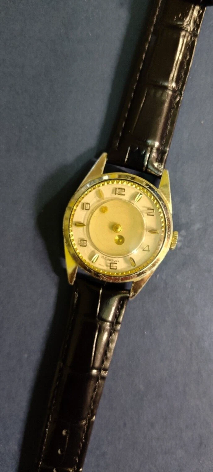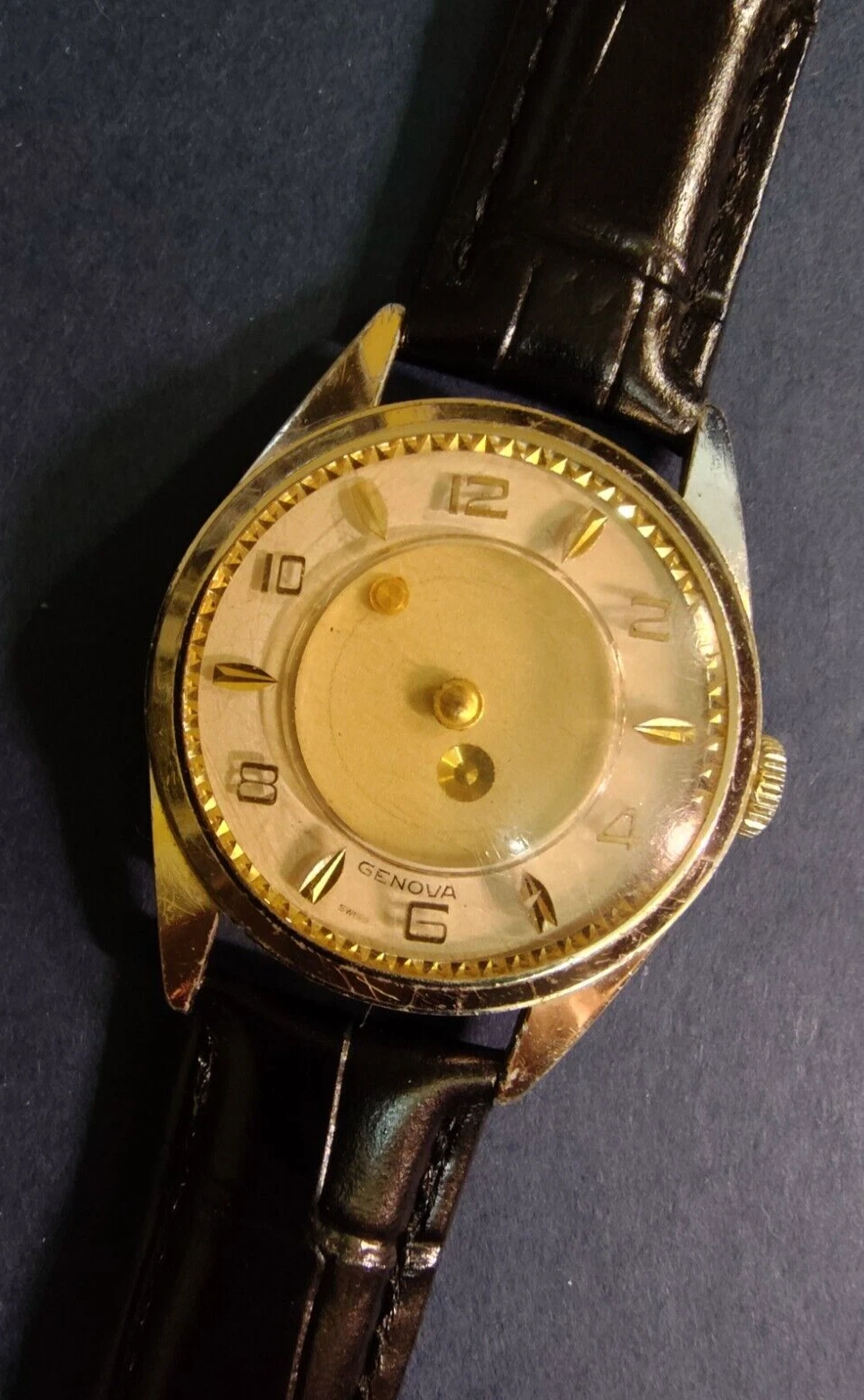Mens GENOVA 1970s Swiss Made 1 Jewel MYSTIC DIAL Jewel Box Wind Up Wristwatch