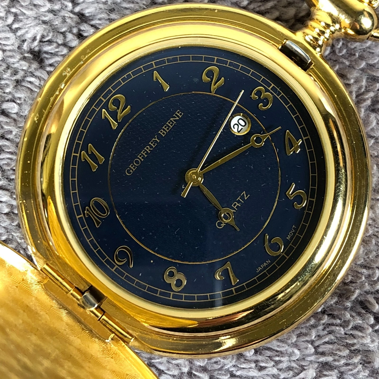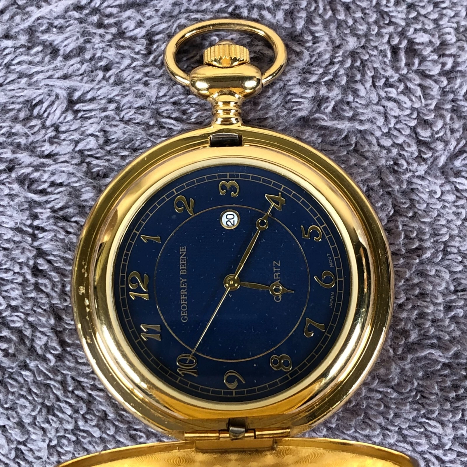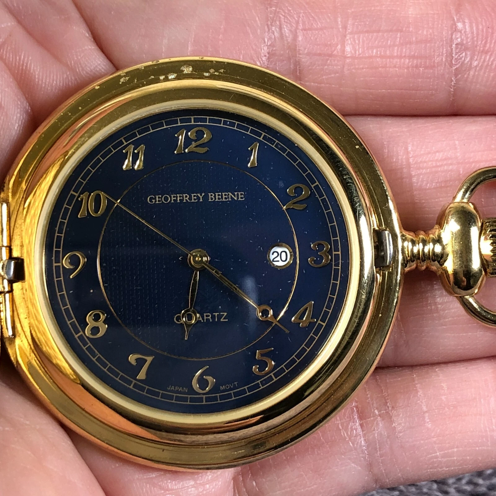 Geoffrey Beene 48mm Gold Tone Flip Cover Blue Dial Date Quartz Pocket Watch