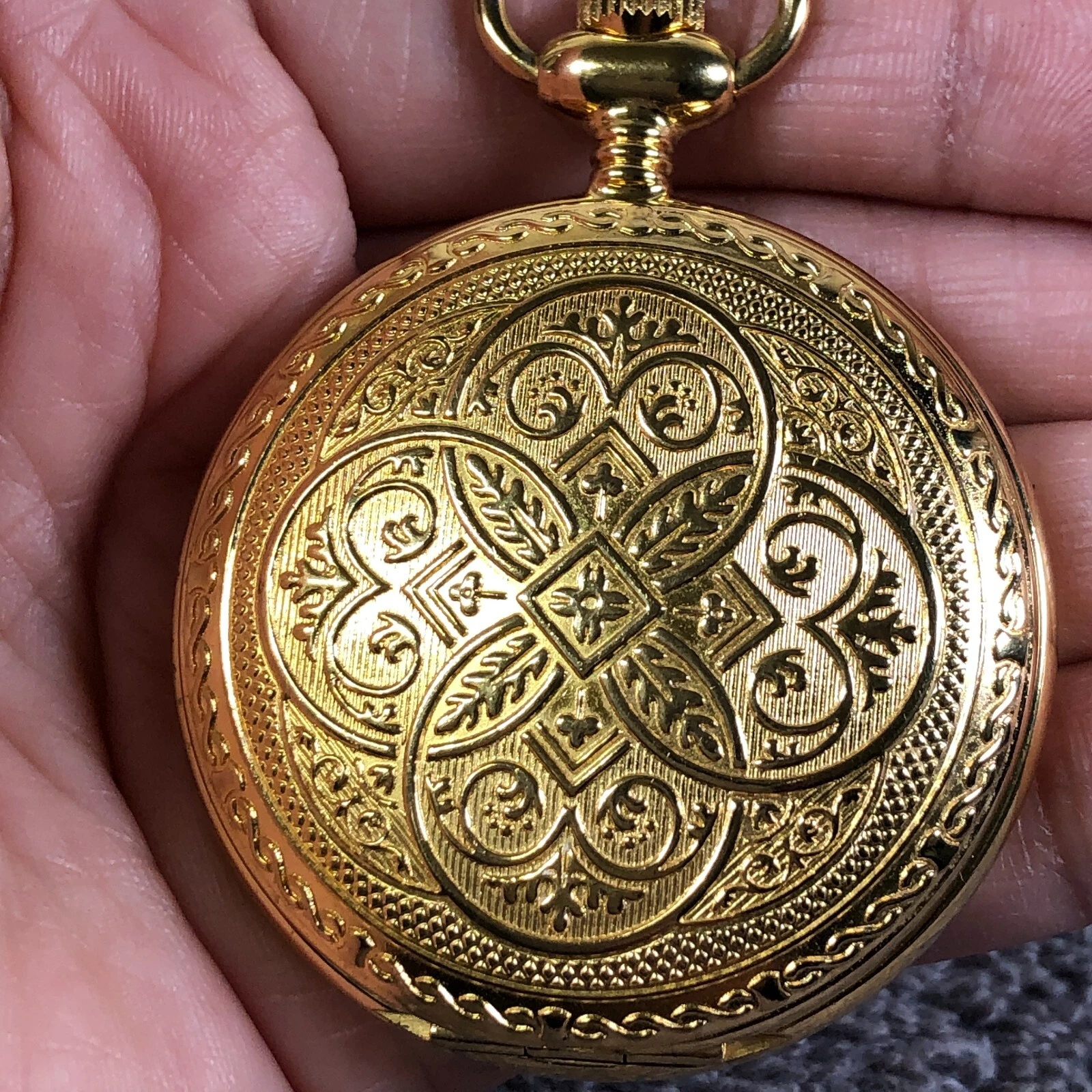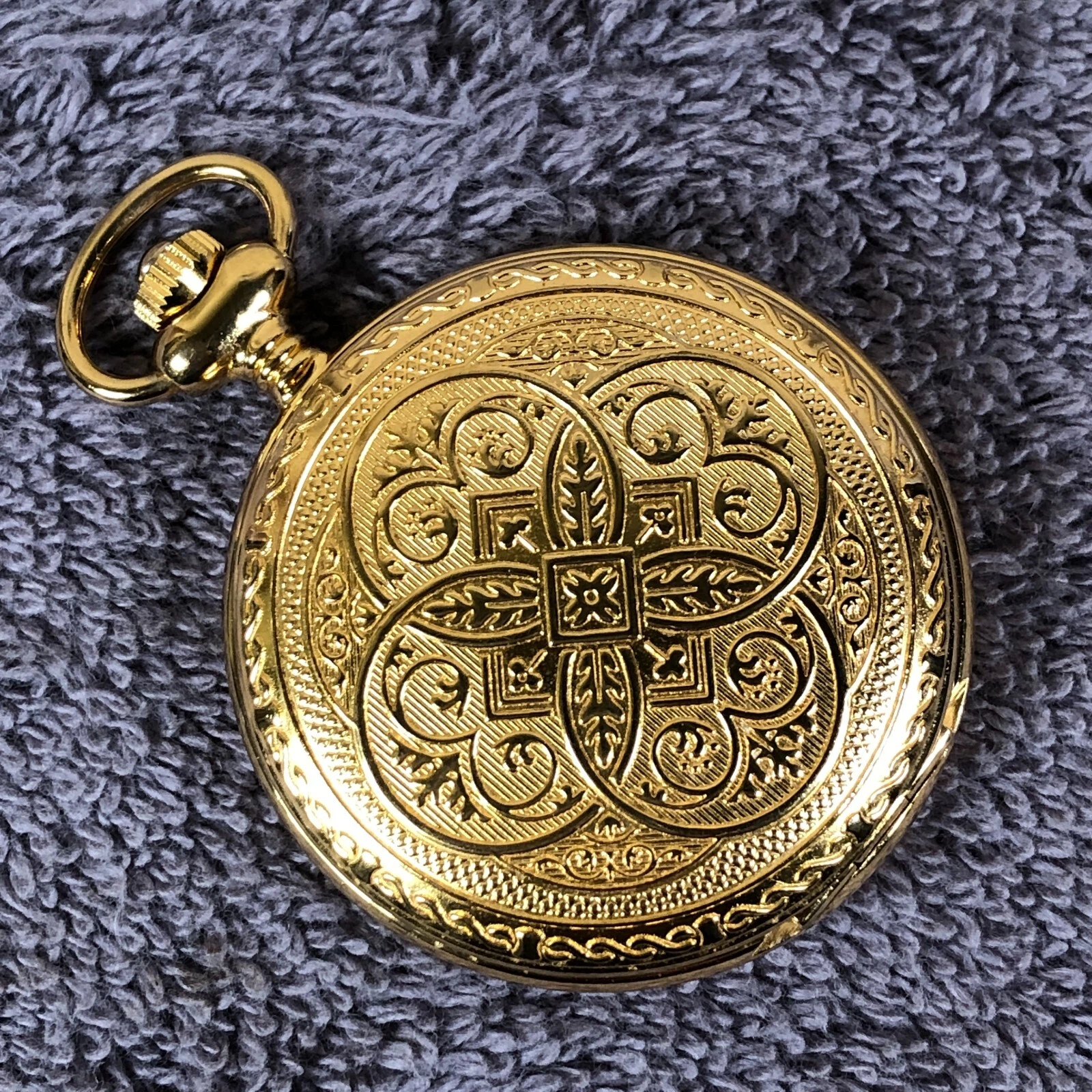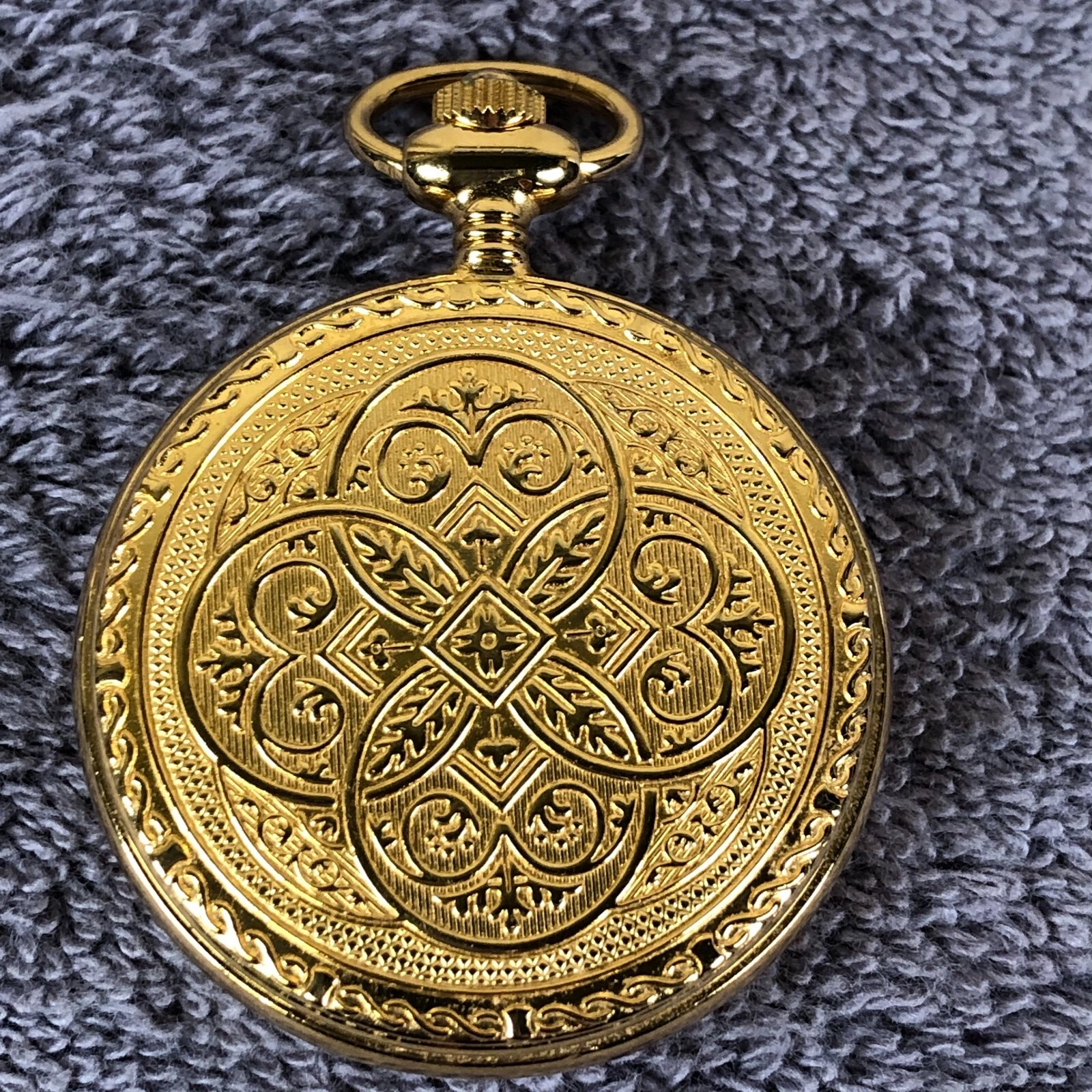 Geoffrey Beene 48mm Gold Tone Flip Cover Blue Dial Date Quartz Pocket Watch