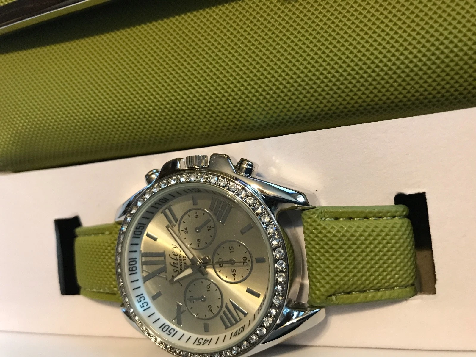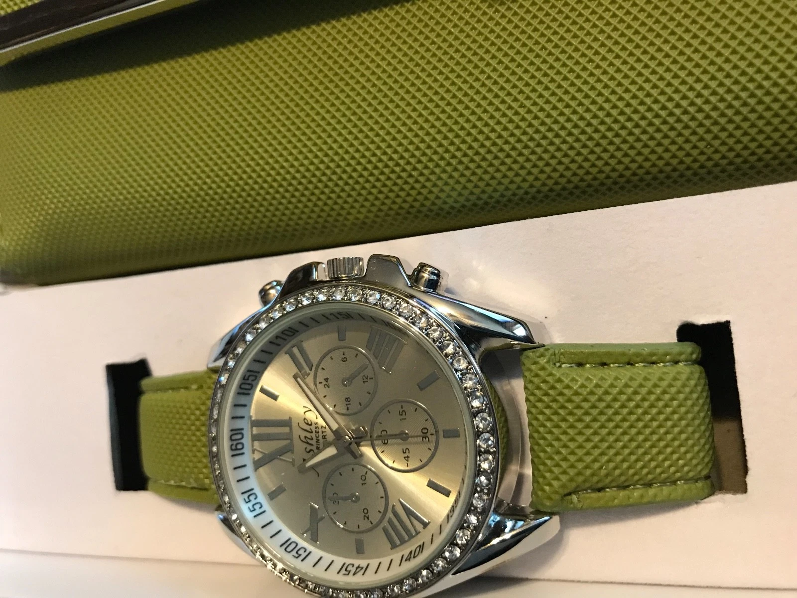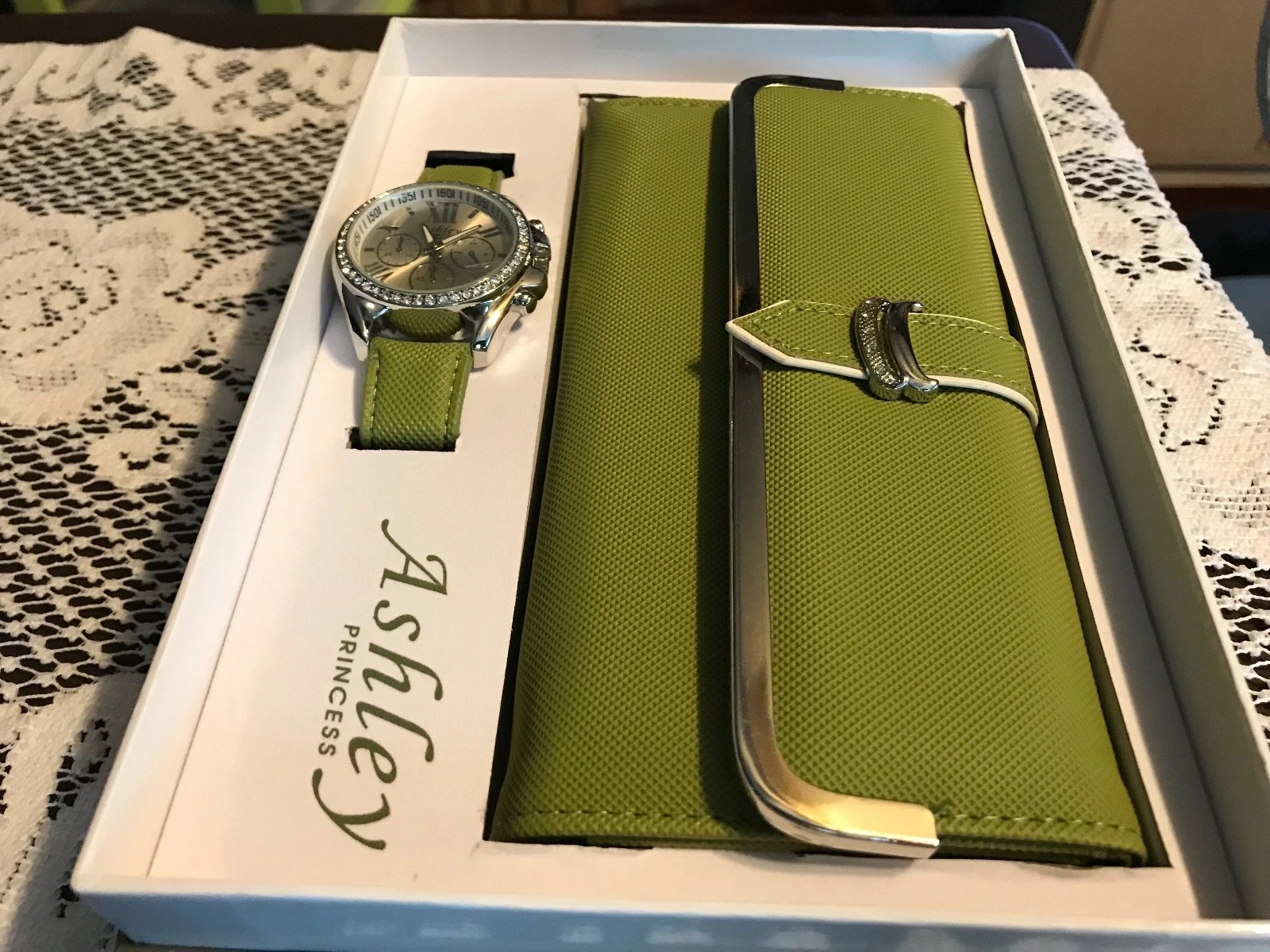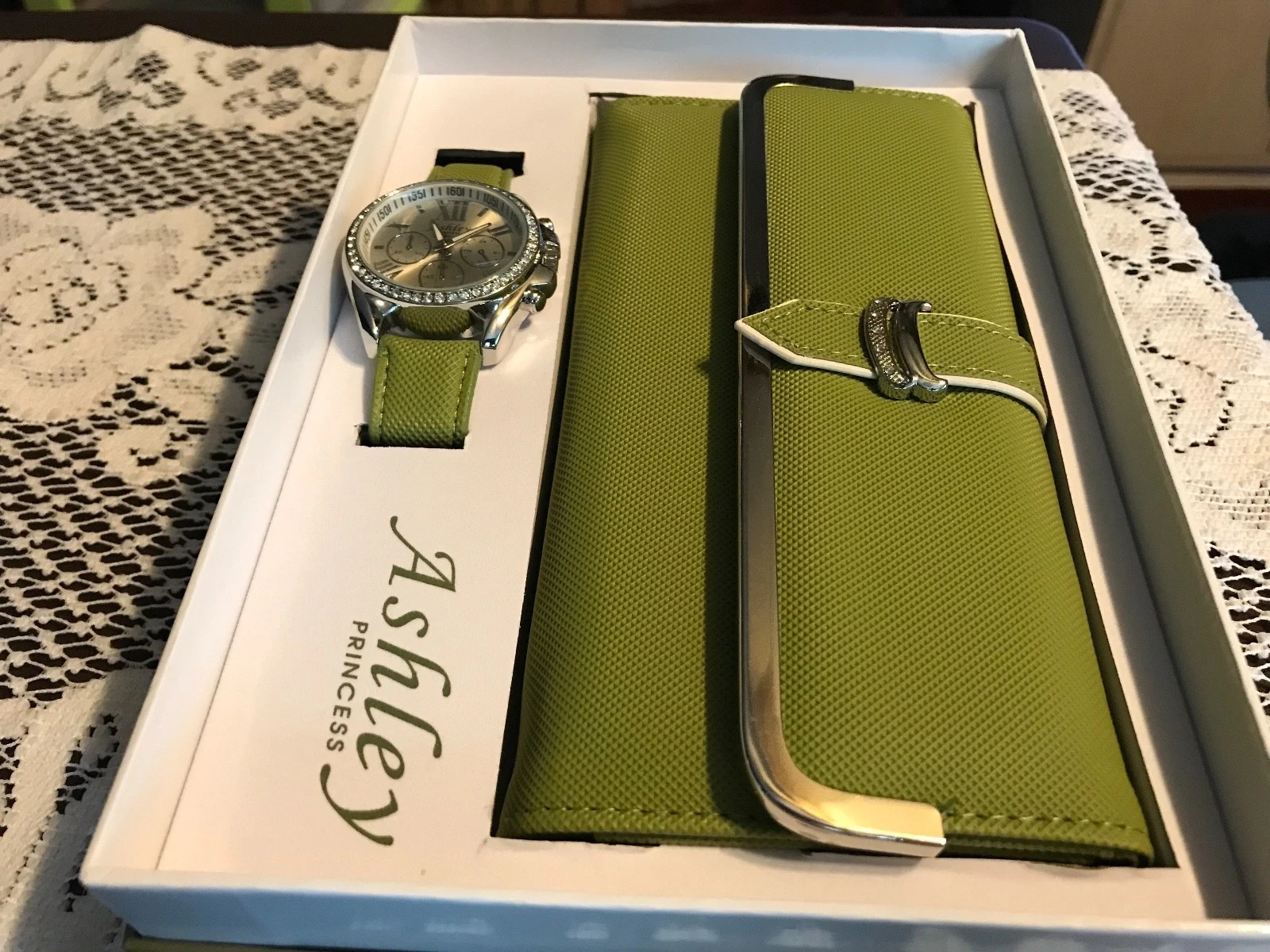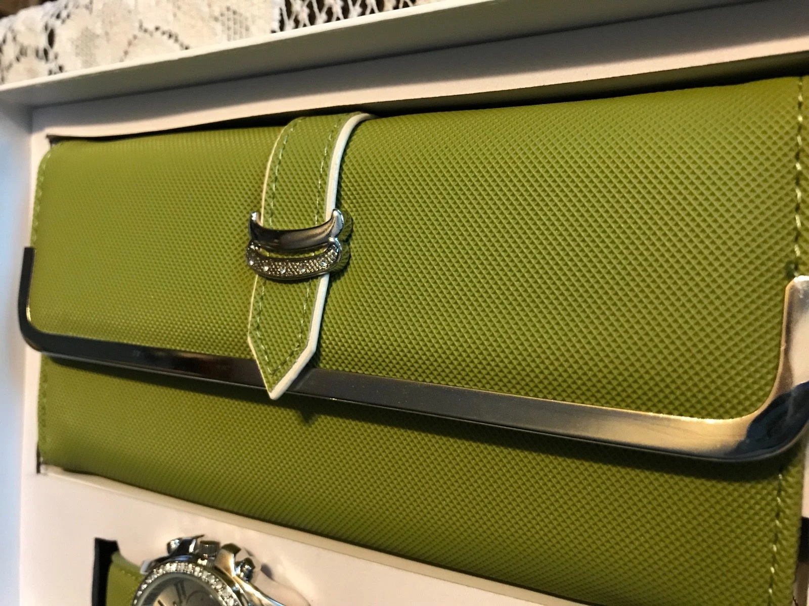ASHLEY PRINCES WATCH & WALLET SET 2 PCS BEAUTIFUL DEEP LIME GREEN BEAUTIFUL SET