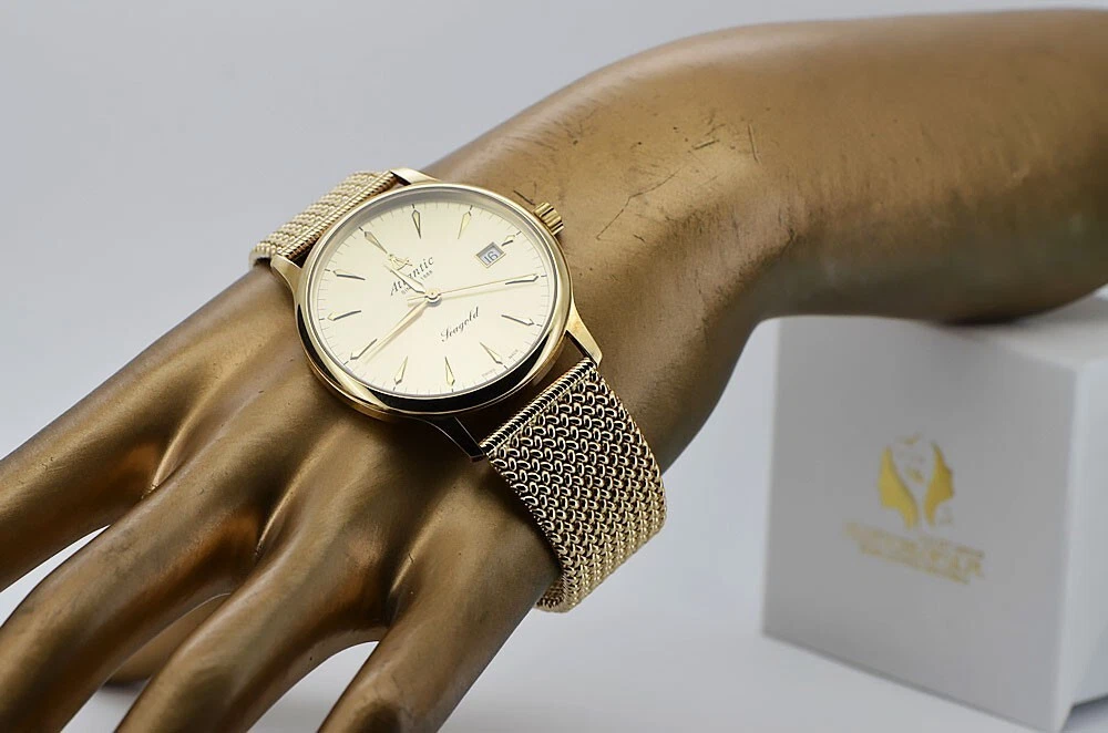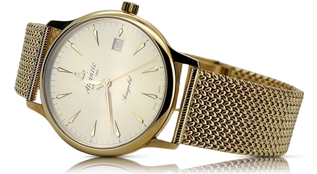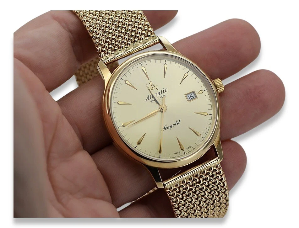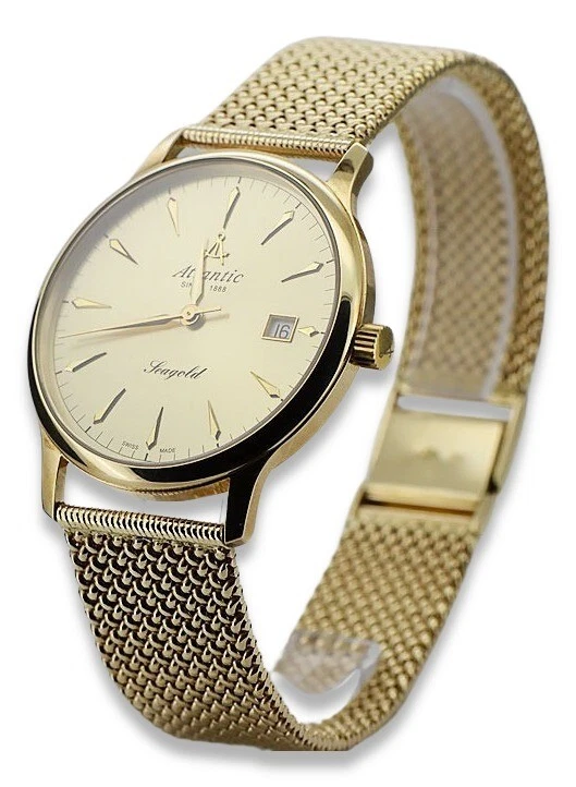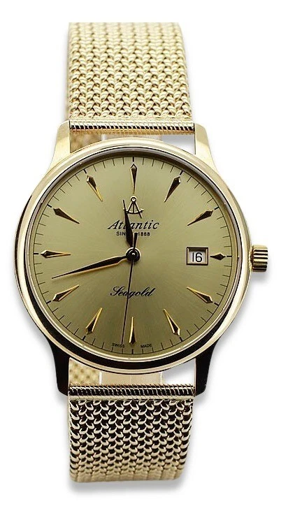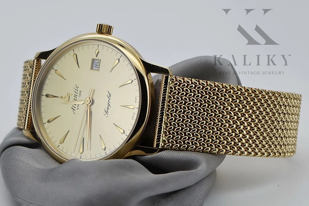 Yellow 14k gold men's watch Atlantic wristwatch mw003y&mbw014y 72,8g