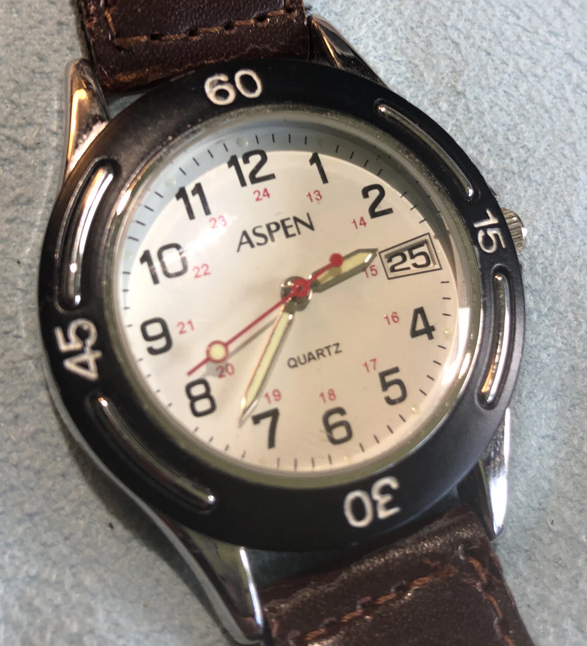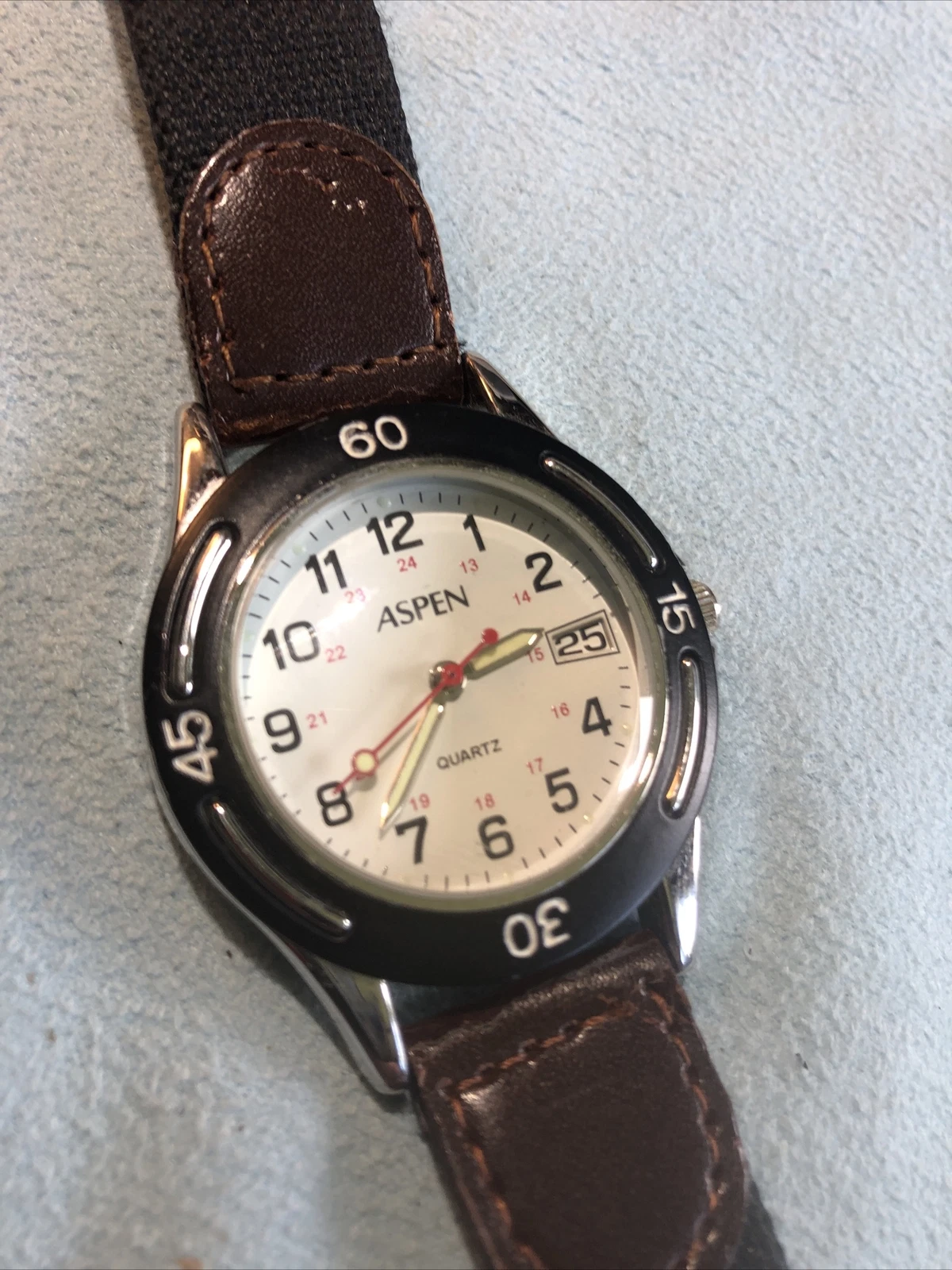 Aspen Women's Field Style Watch Date Indicator NEW BATTERY Runs Great!