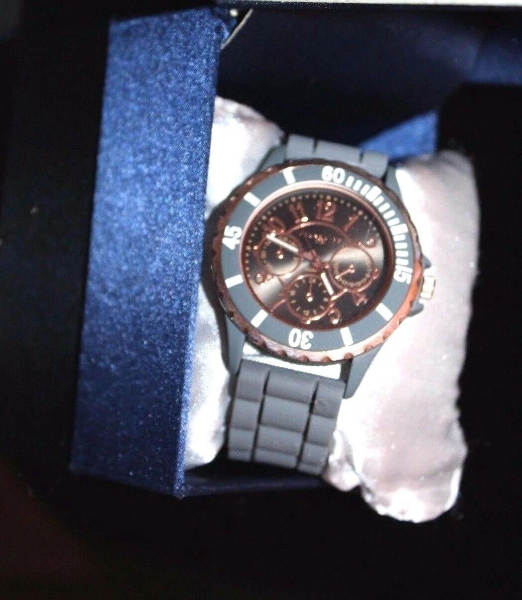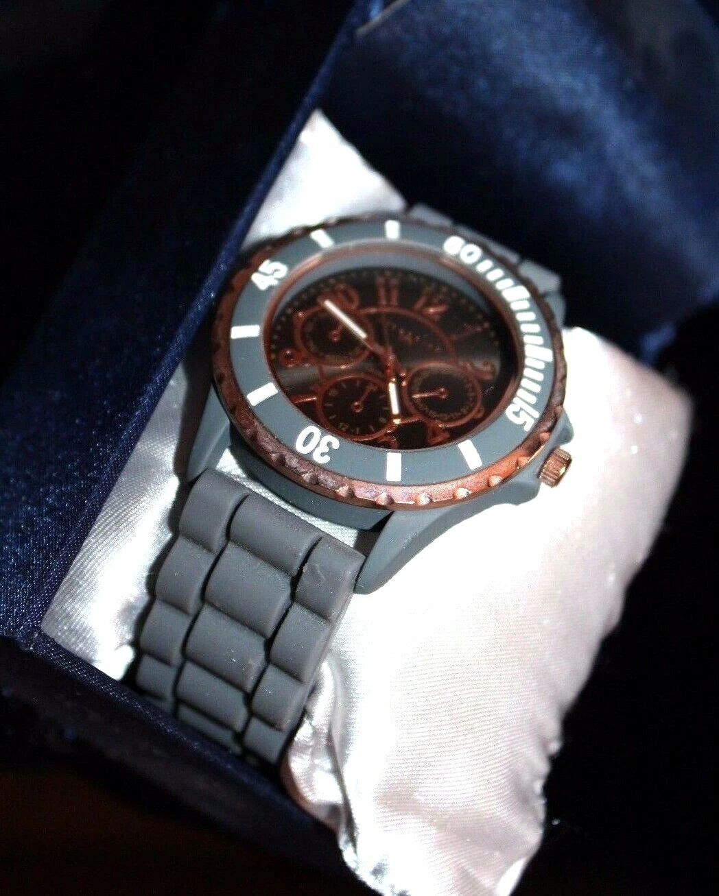 Attention Ladies' Round Rubber Wrist Watch Gray / Rose Gold