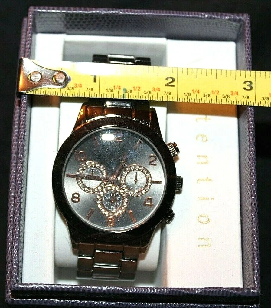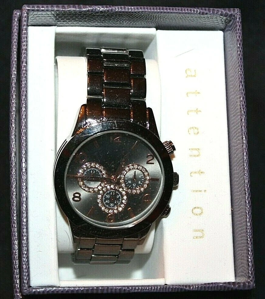 Attention Ladies' Round Black/Pewter Tone Analog Wristwatch w/ Metal Strap Watch