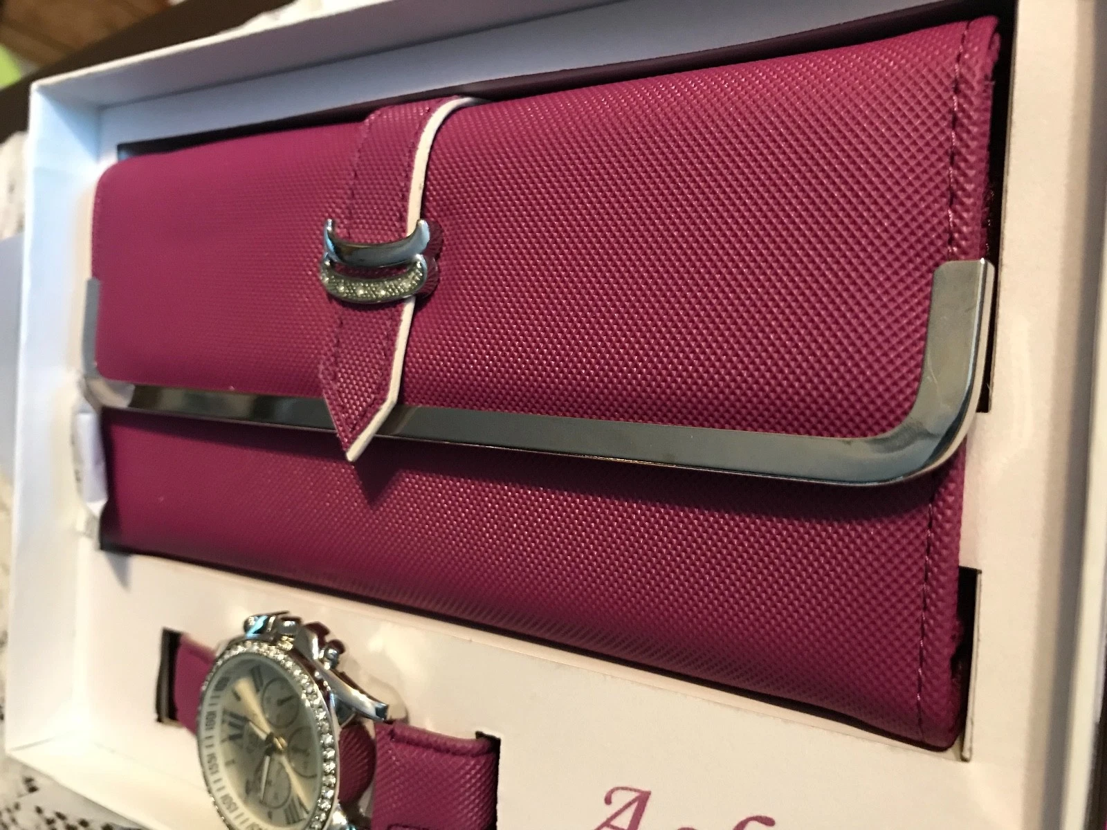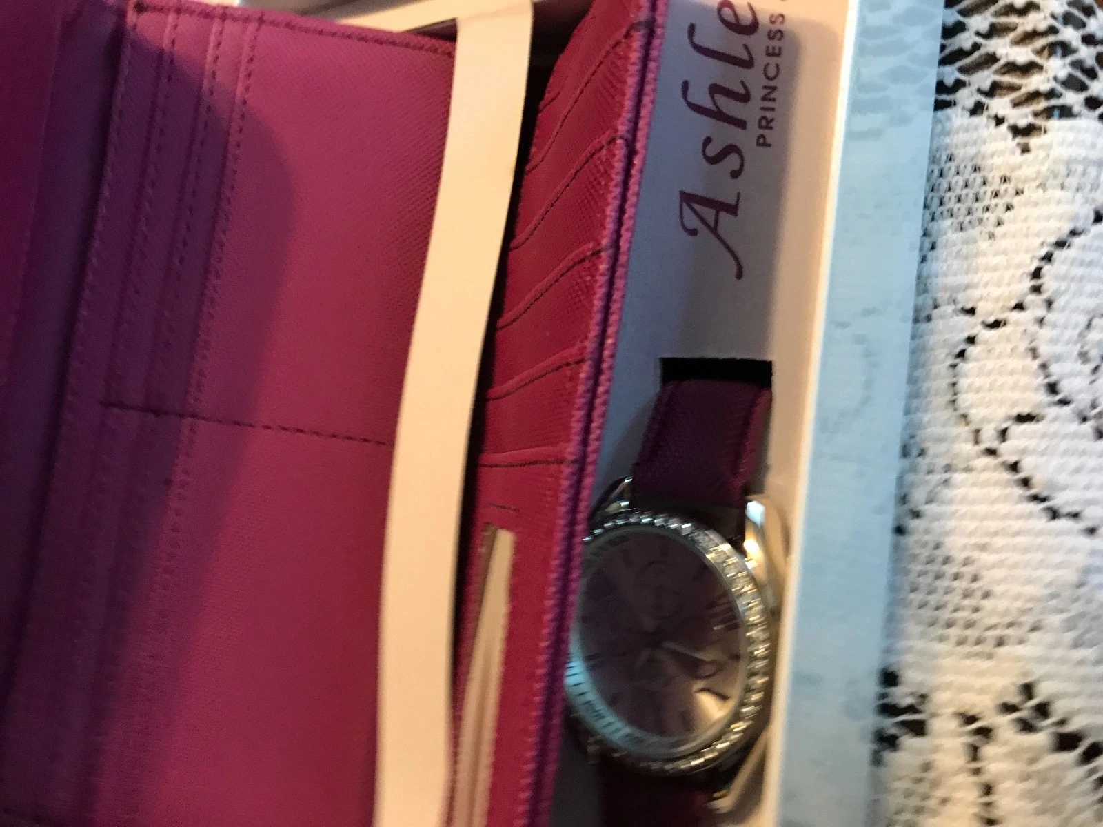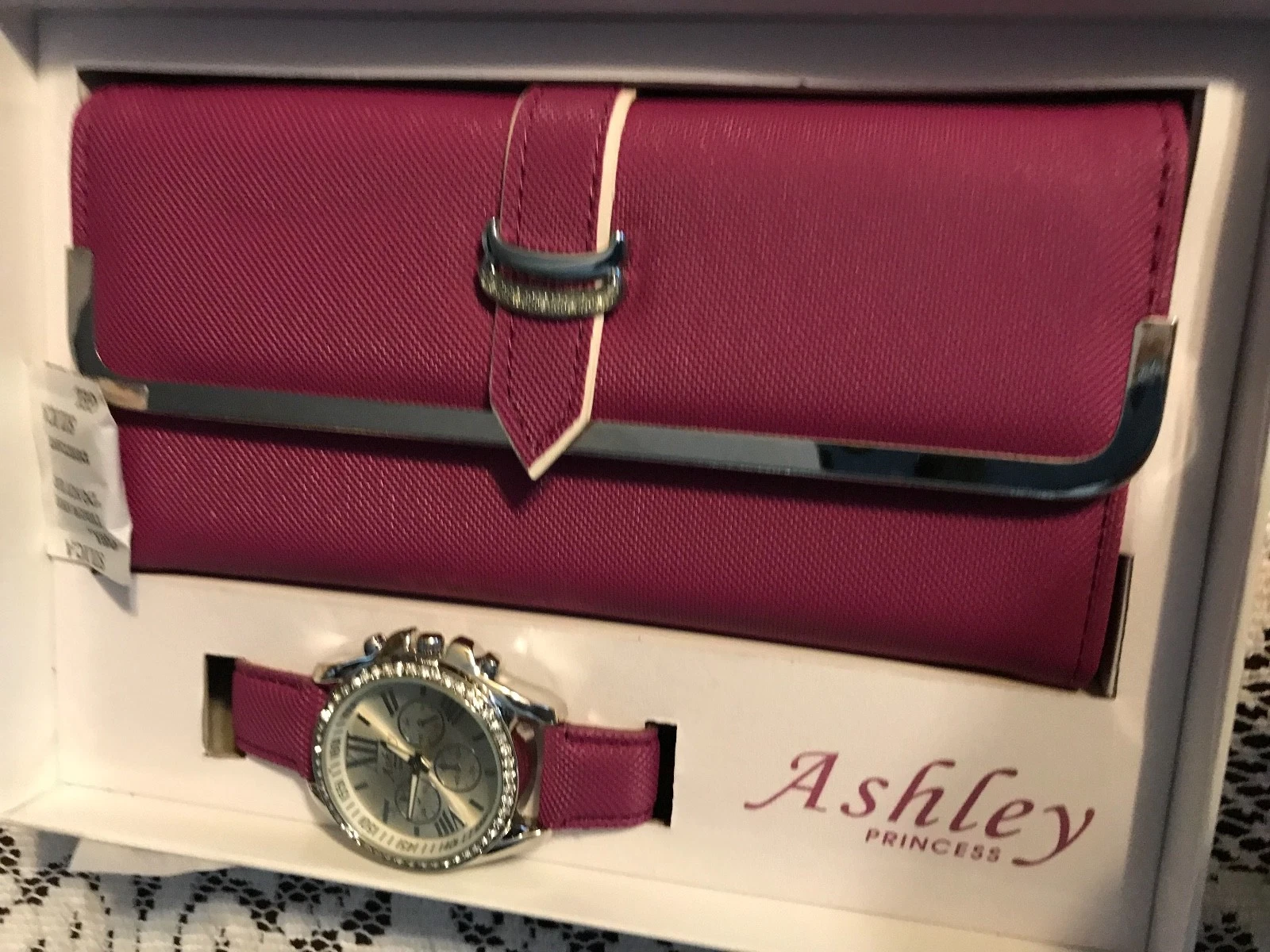 ASHLEY PRINCES WATCH & WALLET SET 2 PCS BEAUTIFUL DEEP PINK