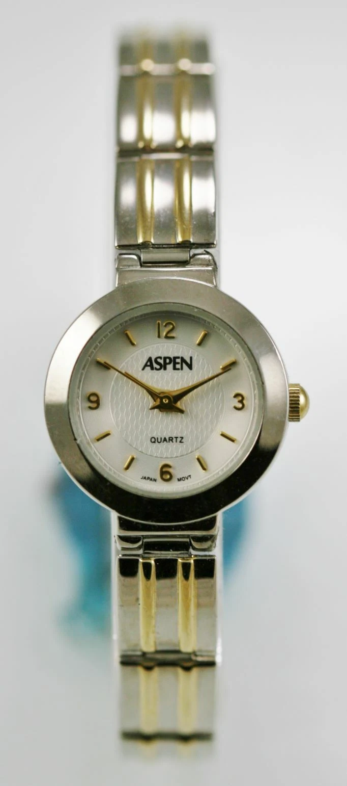 Aspen Watch Womens Stainless Silver Gold Steel Water Resist Battery White Quartz