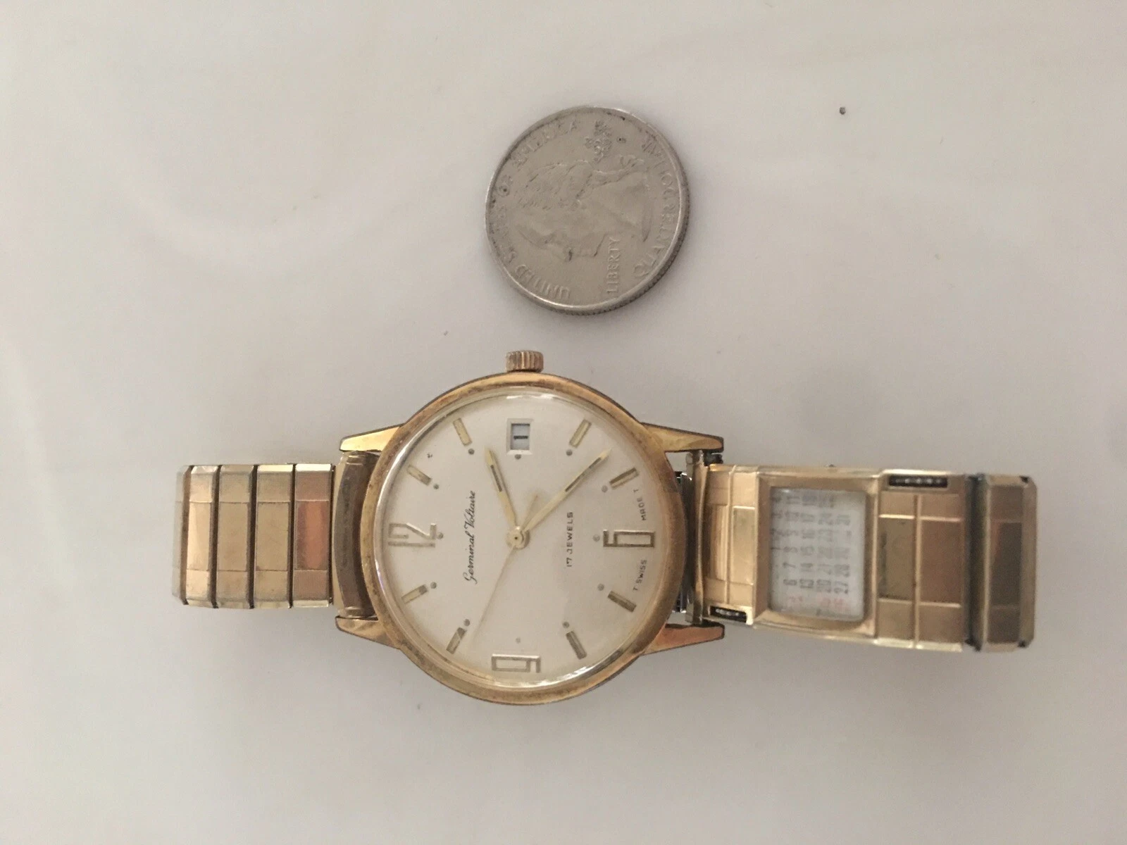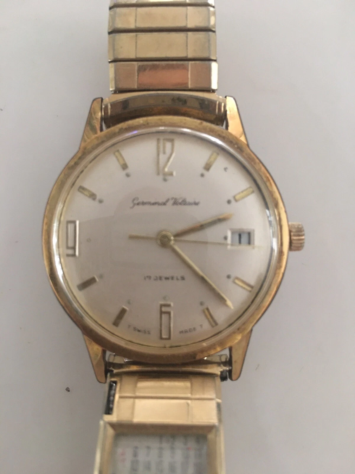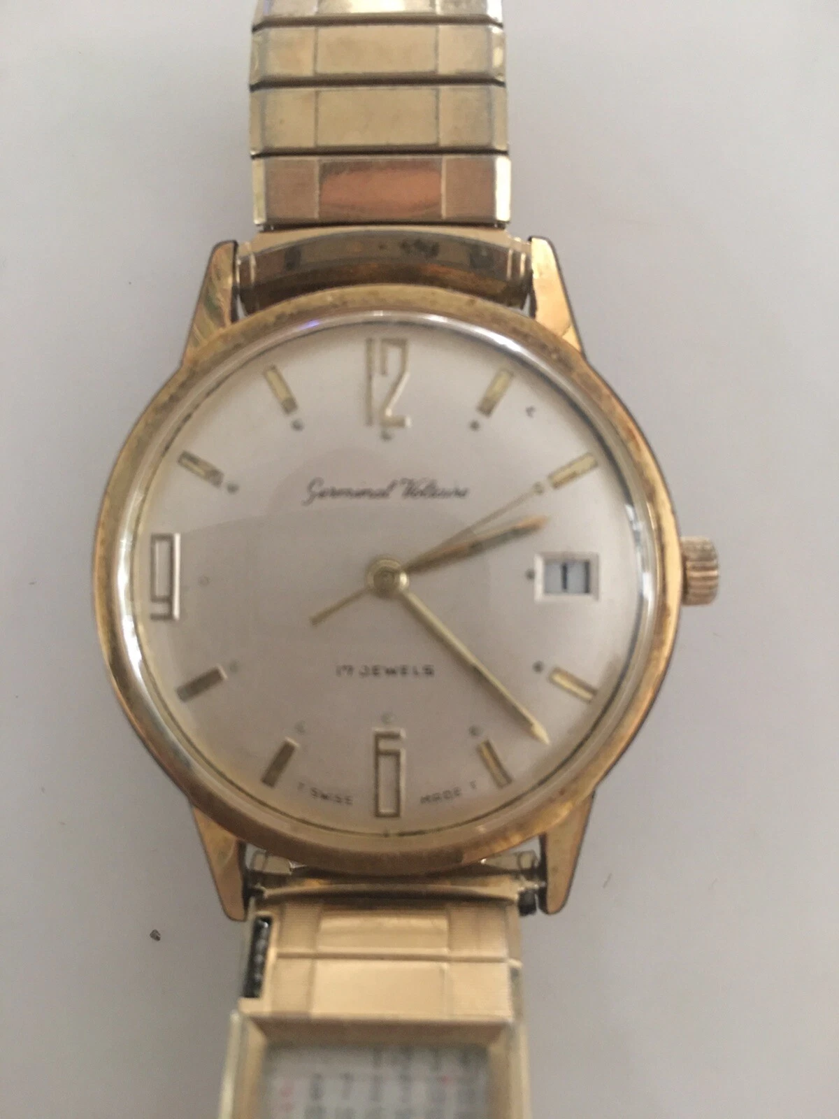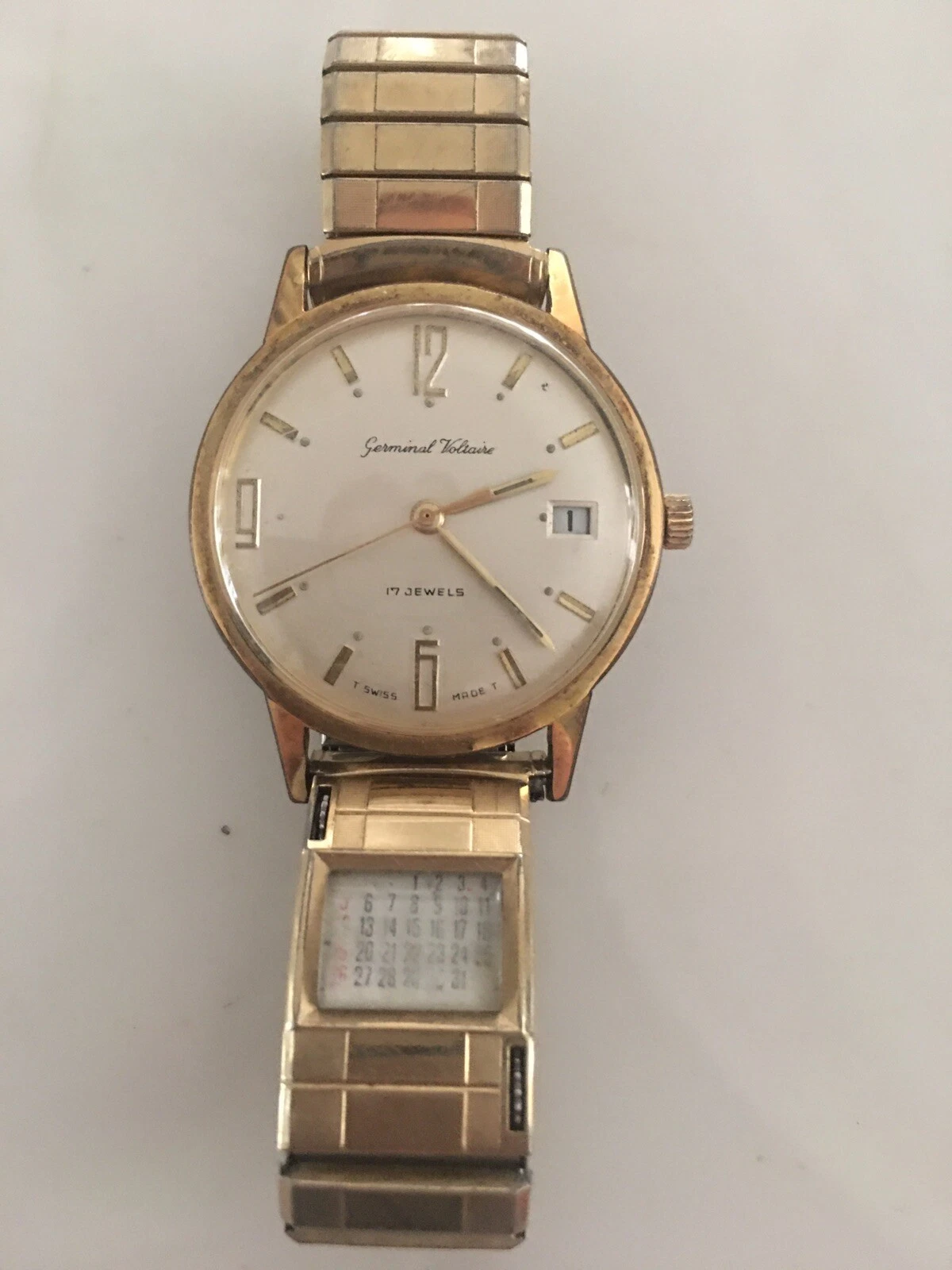 Vintage Germinal Voltaire Mens Wrist Watch Date 17 Jewel Swiss Made Runs Great!