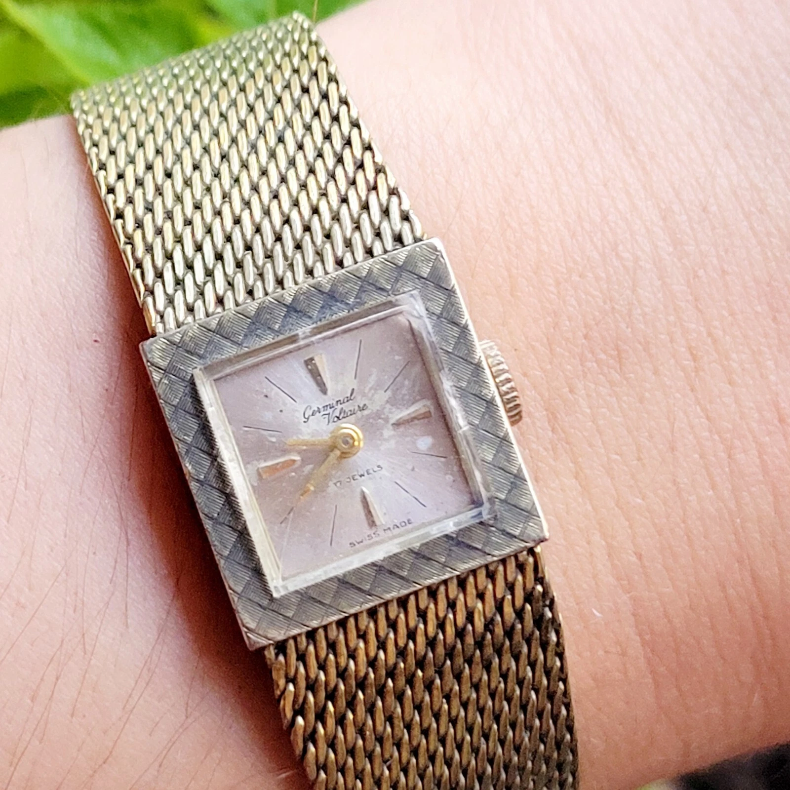 Vintage Swiss Germinal Voltaire 17 Jewels Classic Gold Bronze Womens Watch