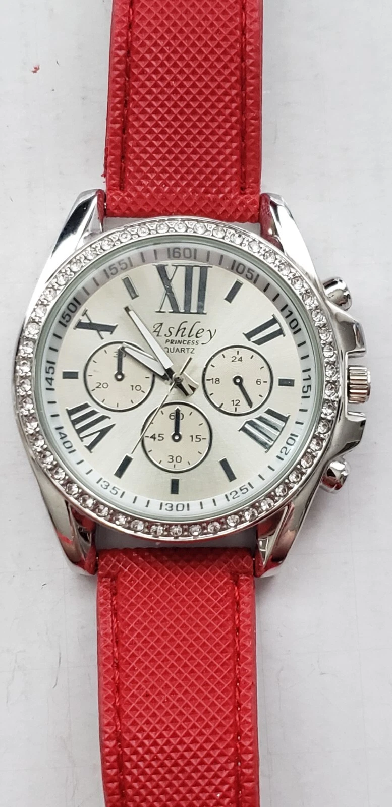 Ashley Princess Watch Women's. SS Case. Crystal Accents. New Battery