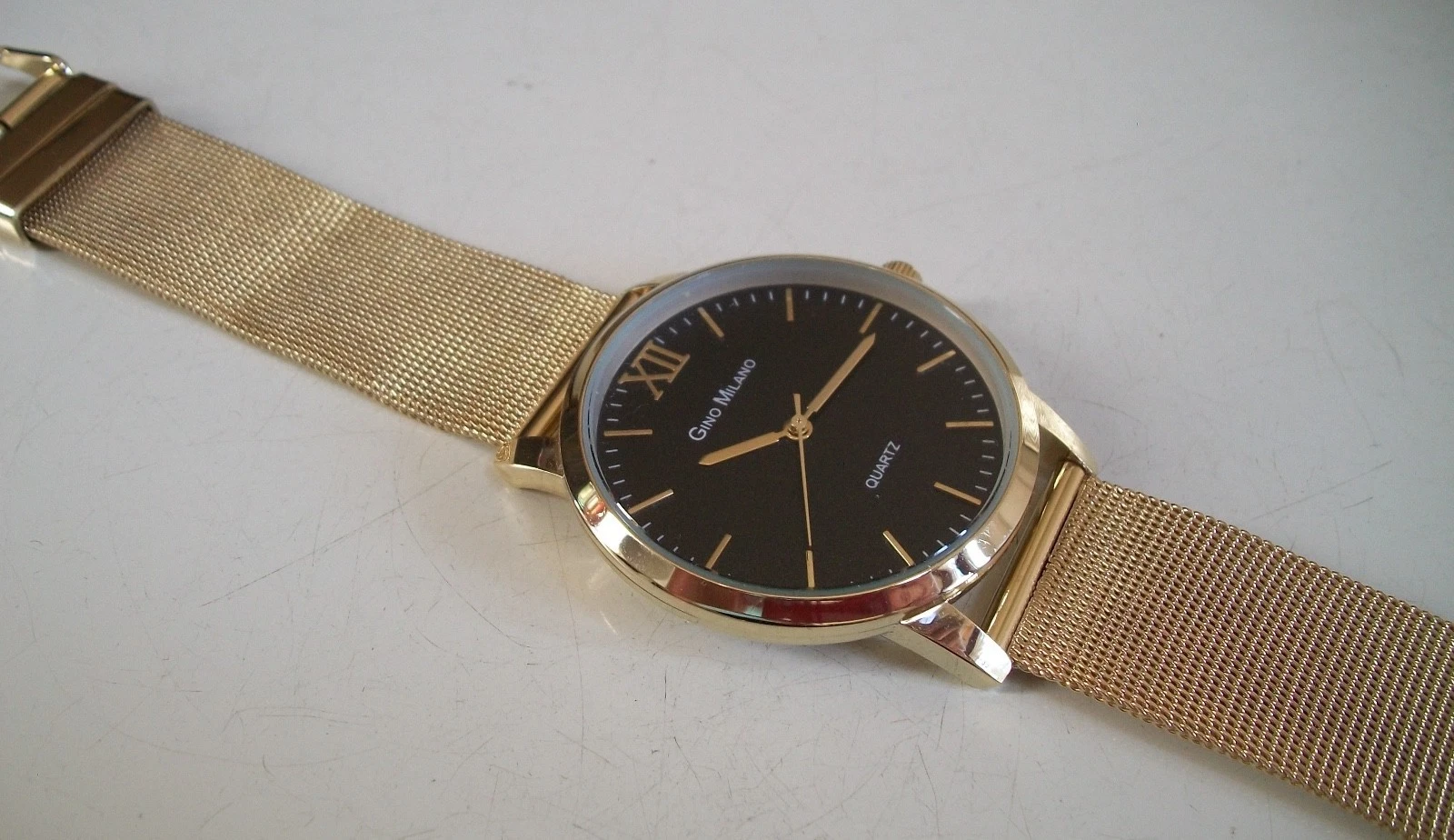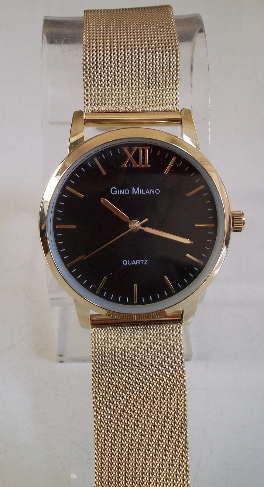 MEN'S GOLD FINISH BLACK DIAL MESH BAND DRESSY CASUAL FASHION HIP HOP WATCH