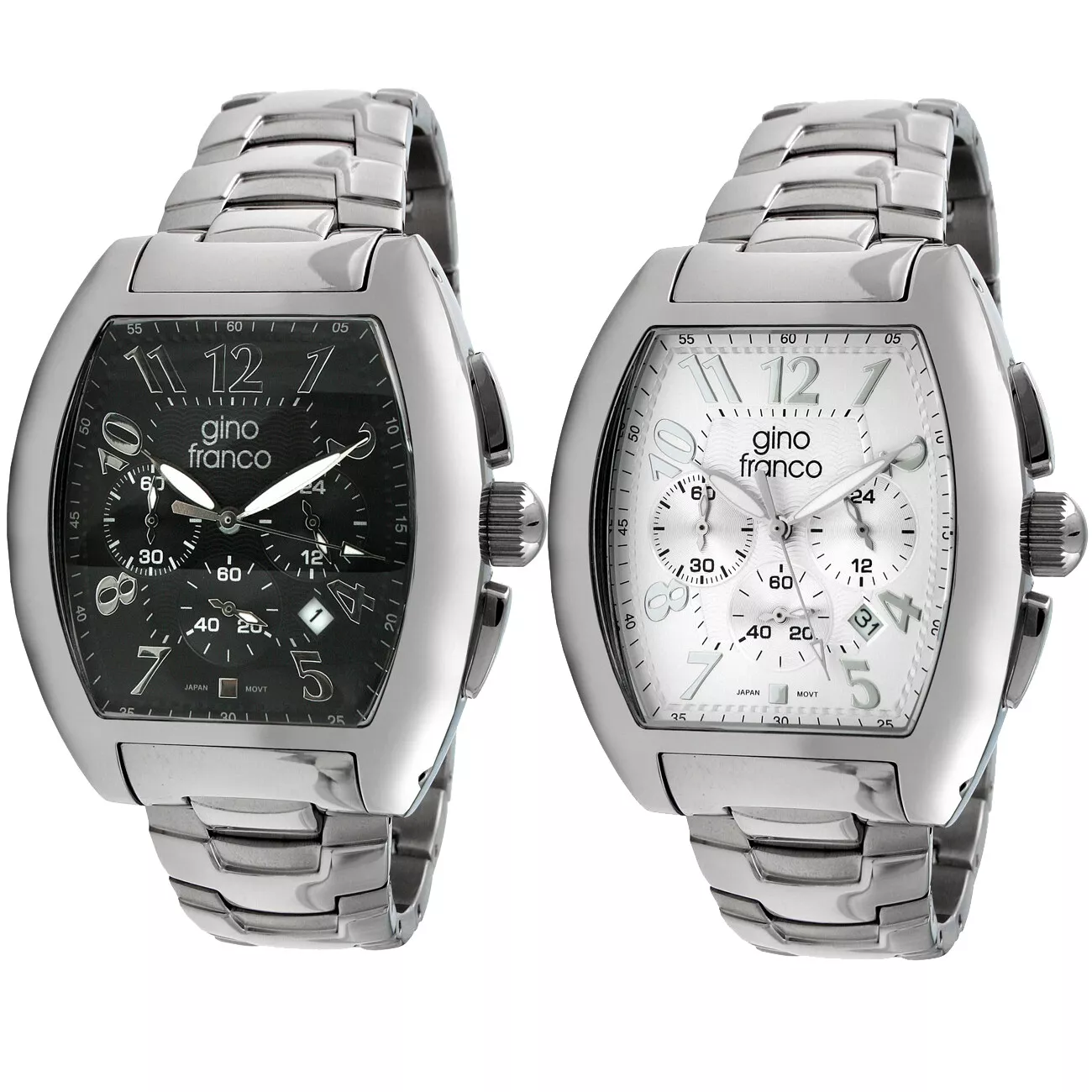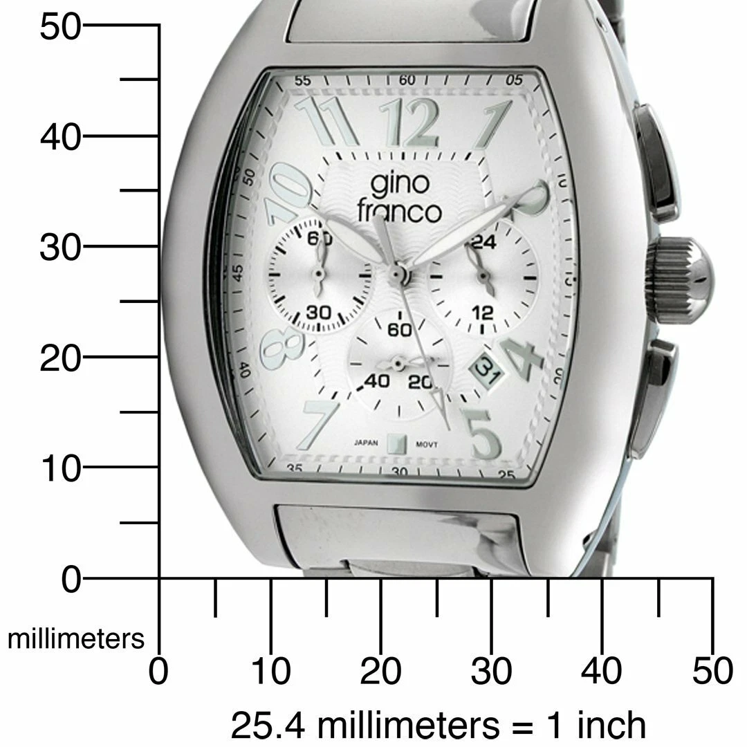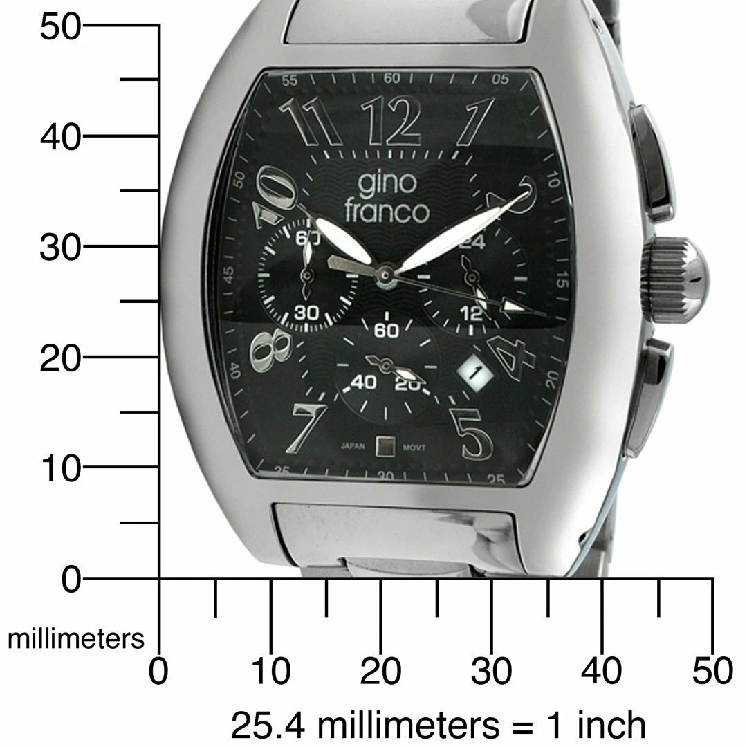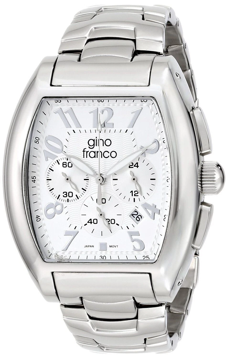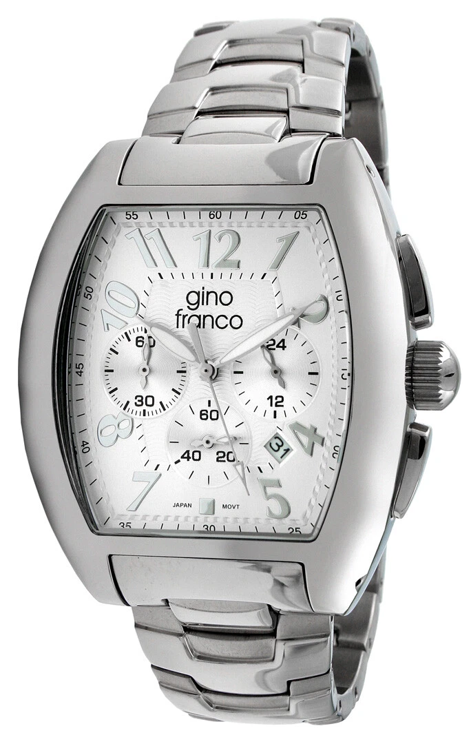 Gino Franco Men Barrel Shaped Stainless Steel Watch w/ Chronograph & Bracelet