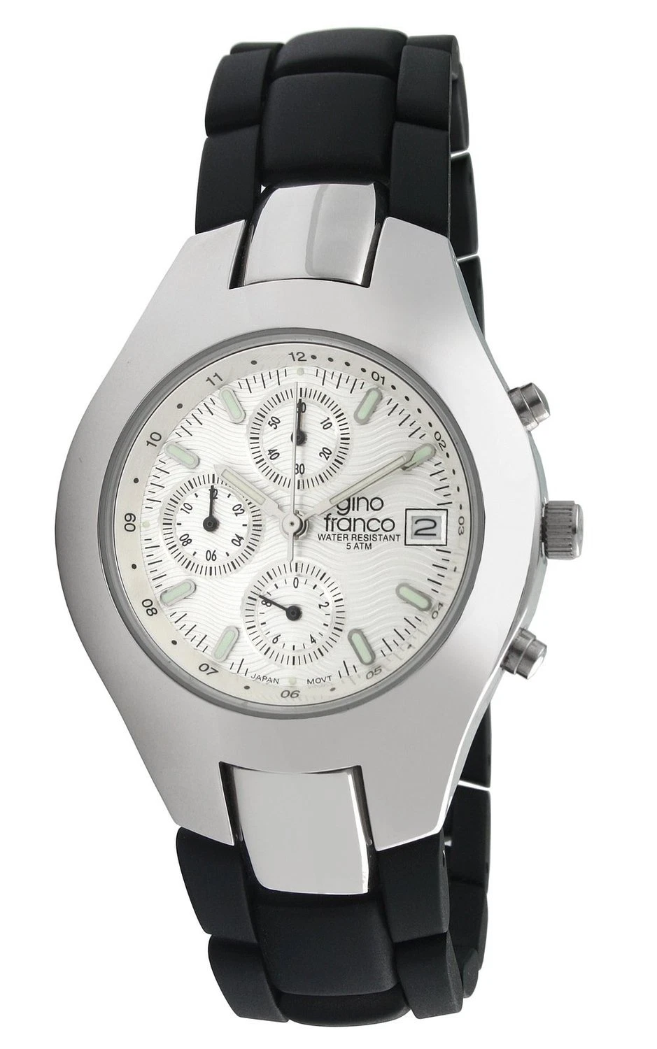 Men's Black Plated Steel Bracelet Watch w/Chrono Stop-Watch By Gino Franco