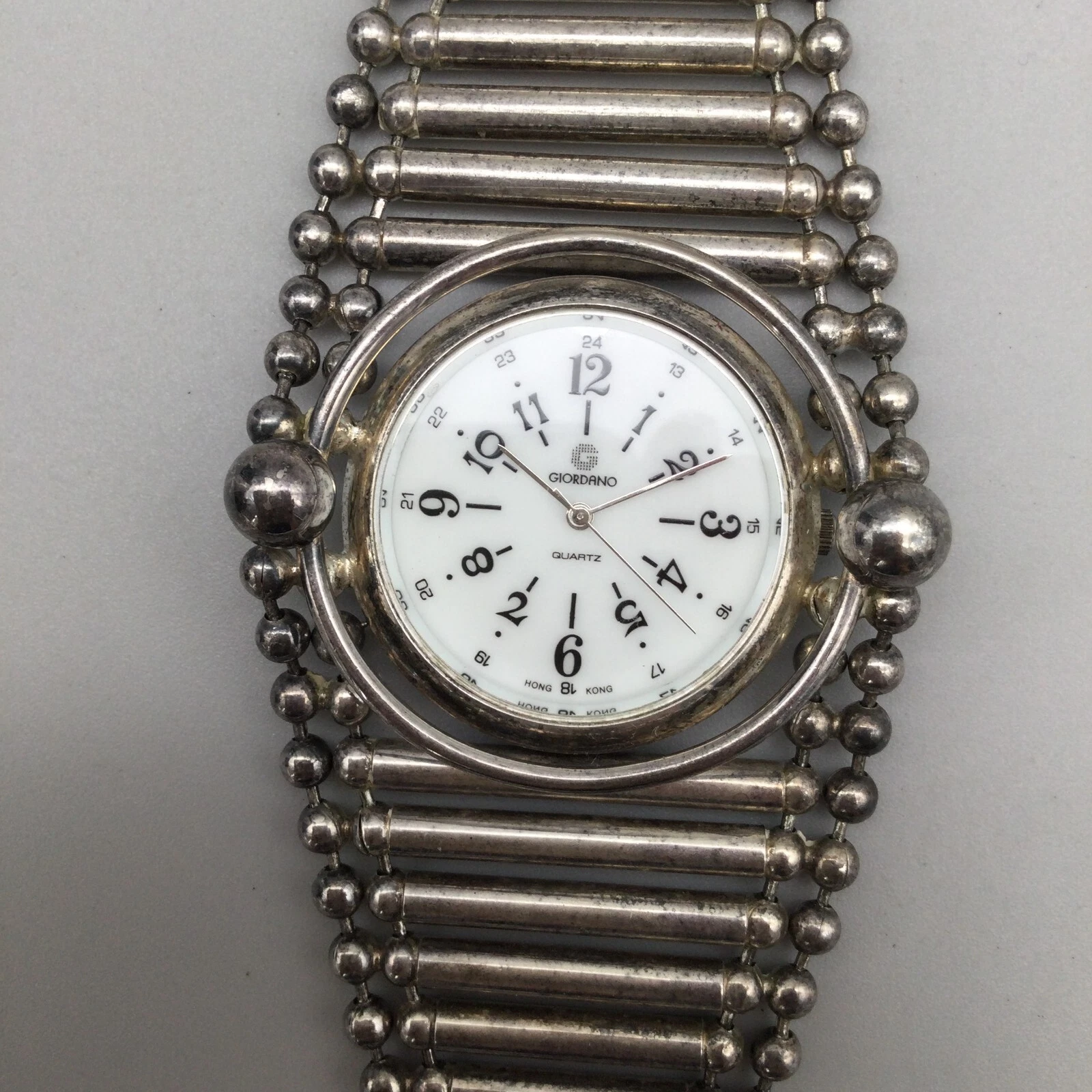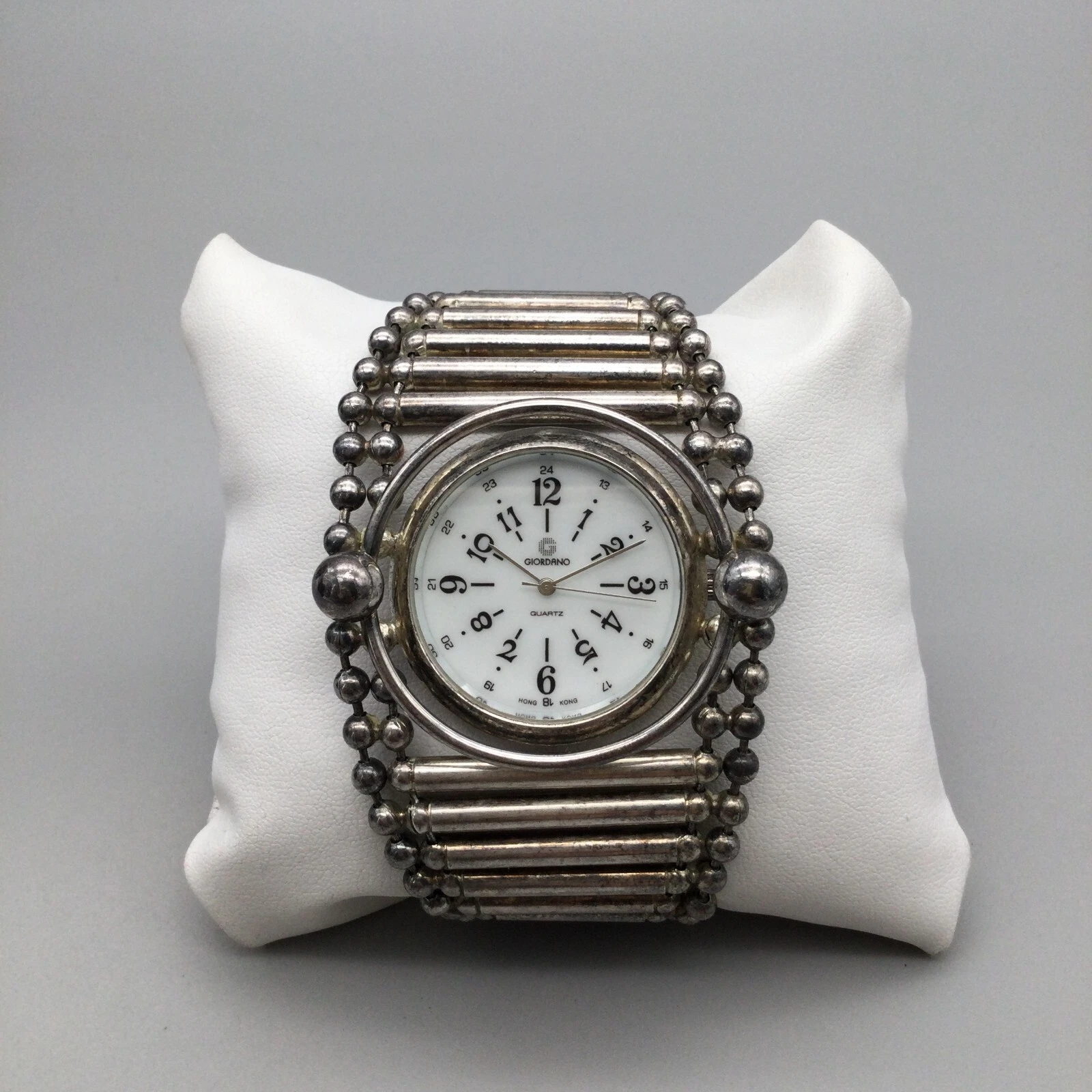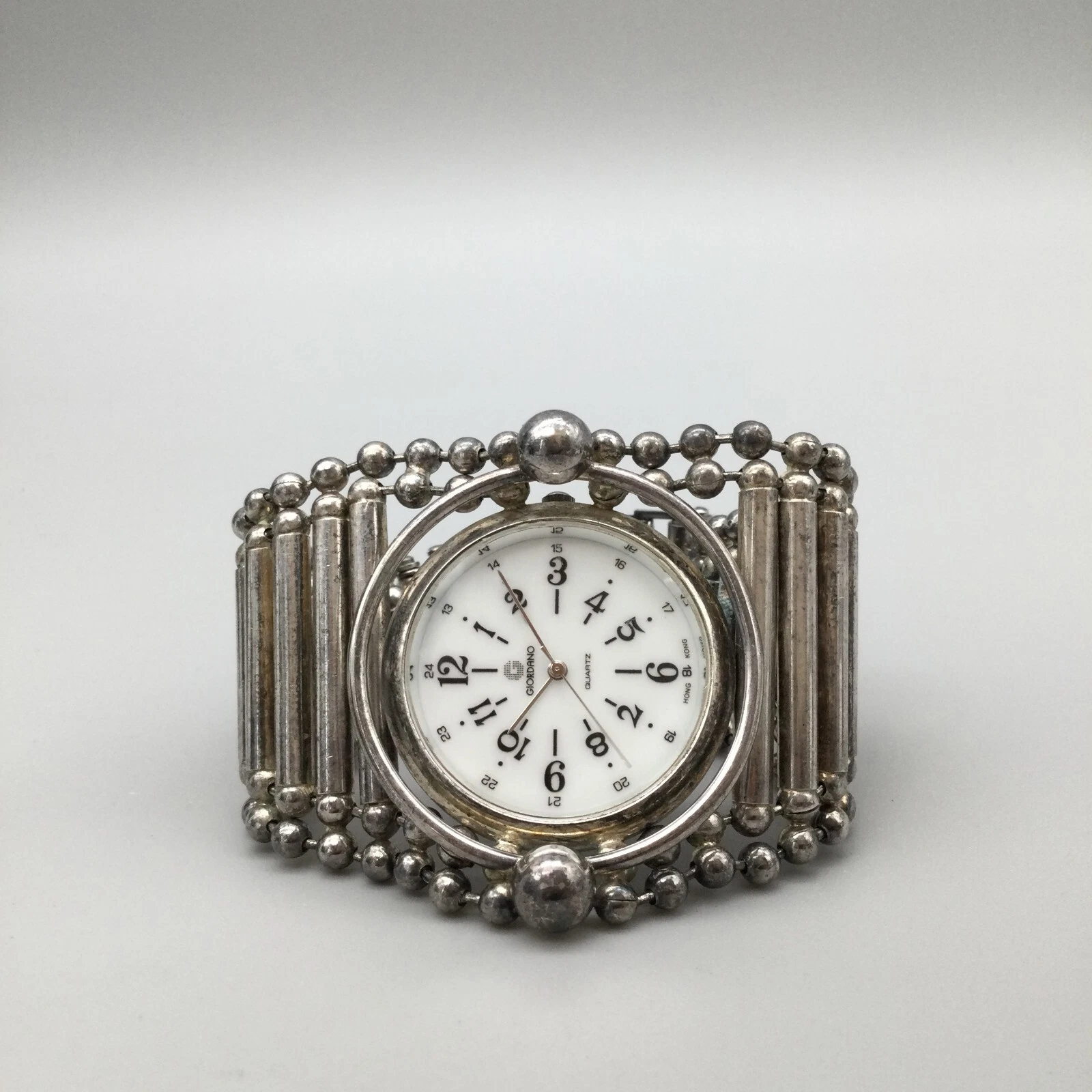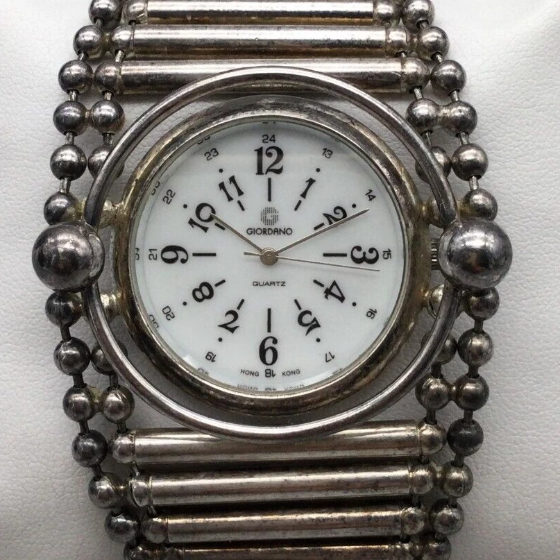 Giordano Watch Women 51mm Silver Tone Wide Tube Link Band New Battery 8.5"