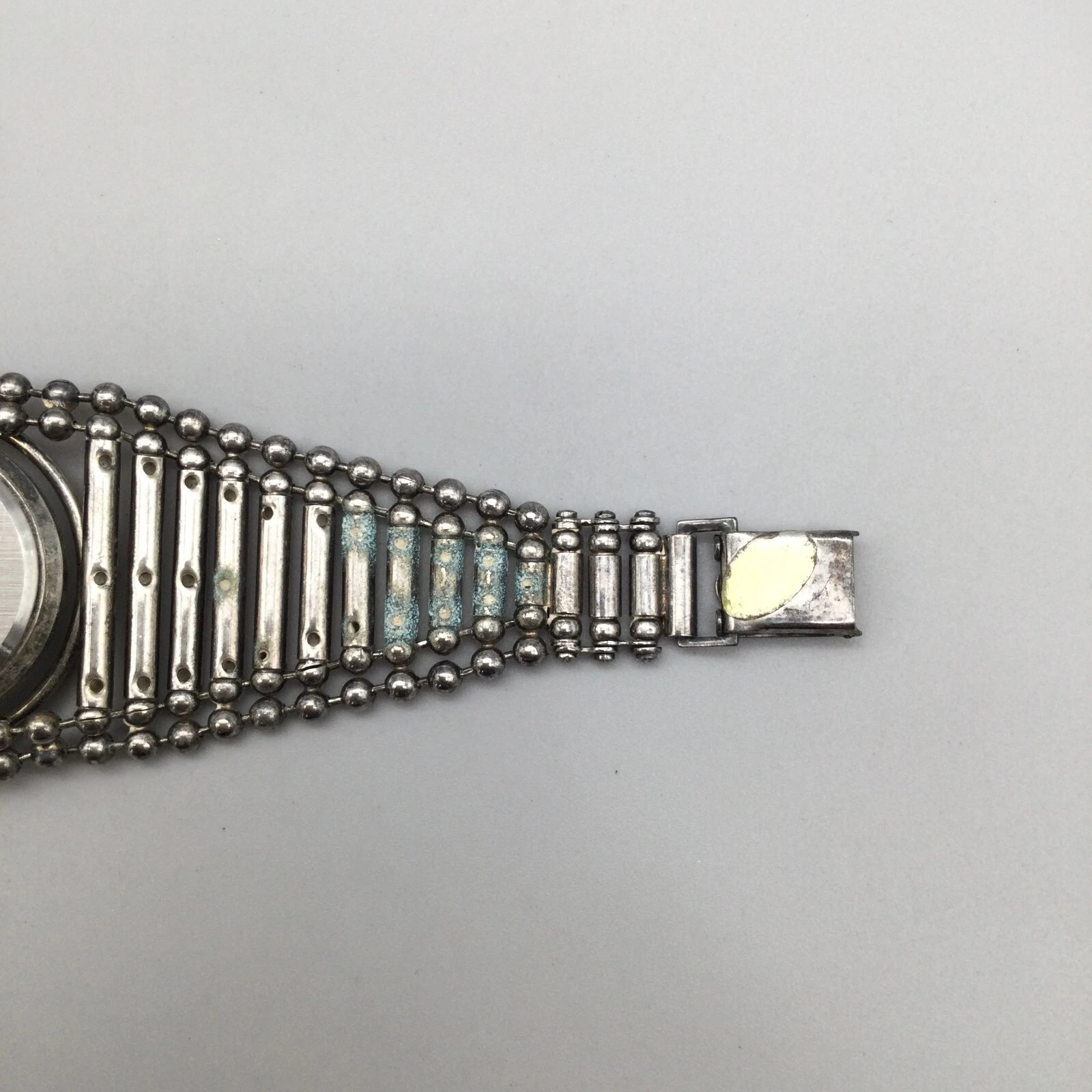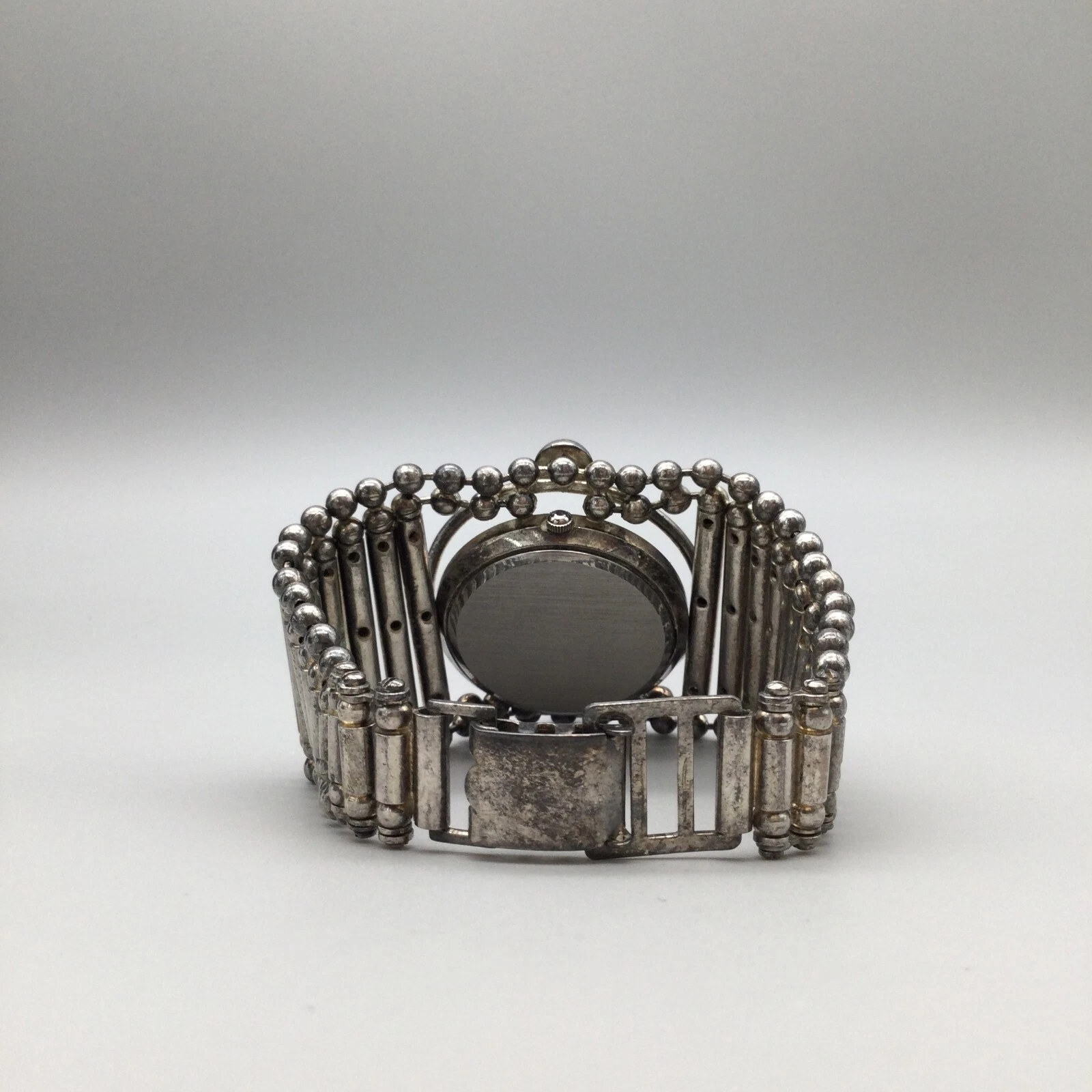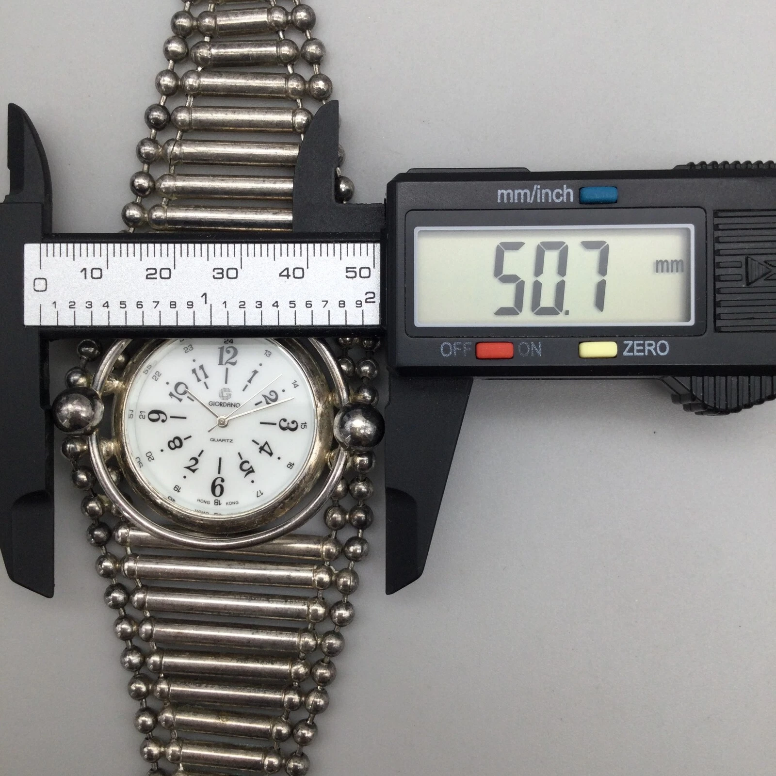 Giordano Watch Women 51mm Silver Tone Wide Tube Link Band New Battery 8.5"