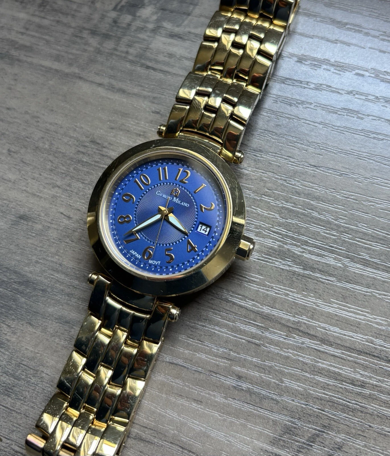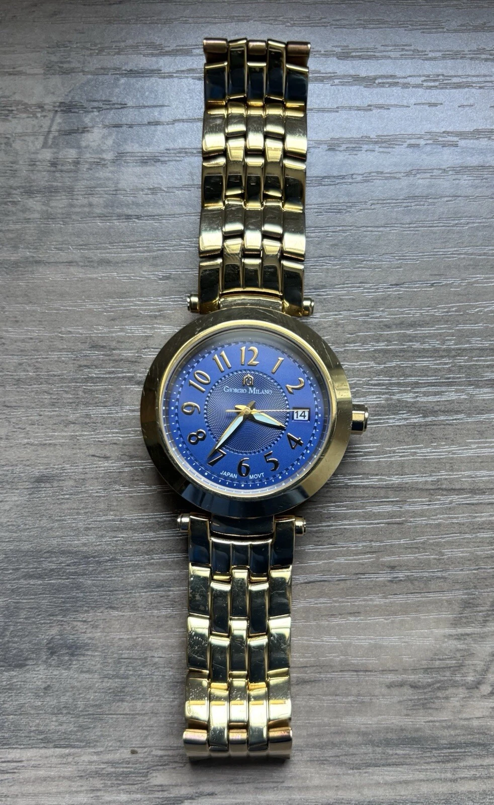 Giorgio Milano ~ Men’s Gold Stainless Steel Strap | Blue dial watch~ New Battery