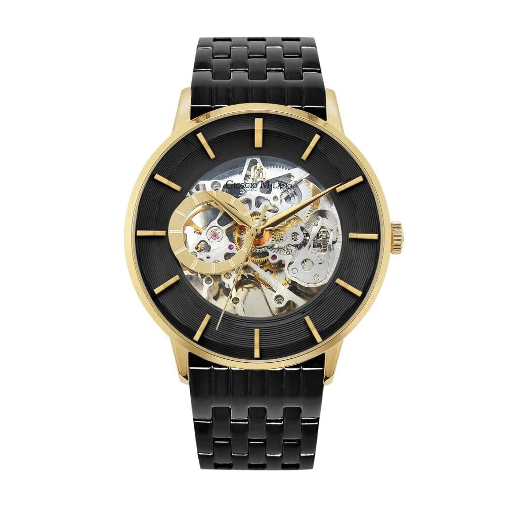 Giorgio Milano Luxury Men’s Watch Automatic Self-Wind Skeleton,Gold Black 44mm