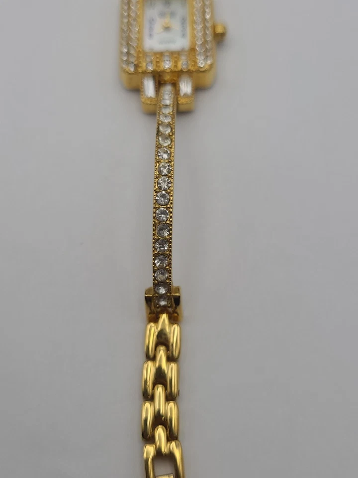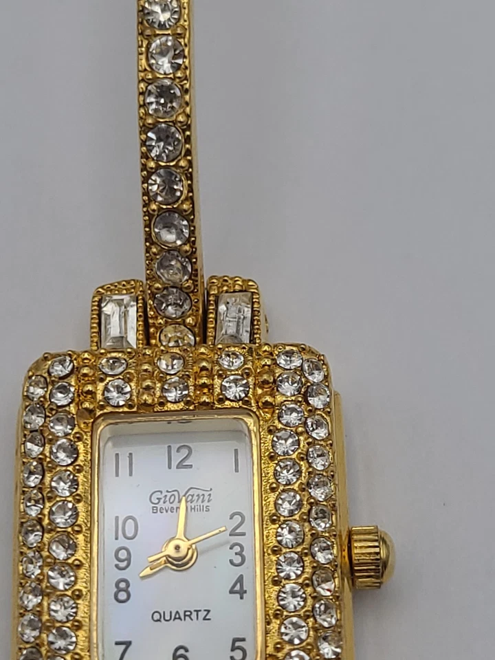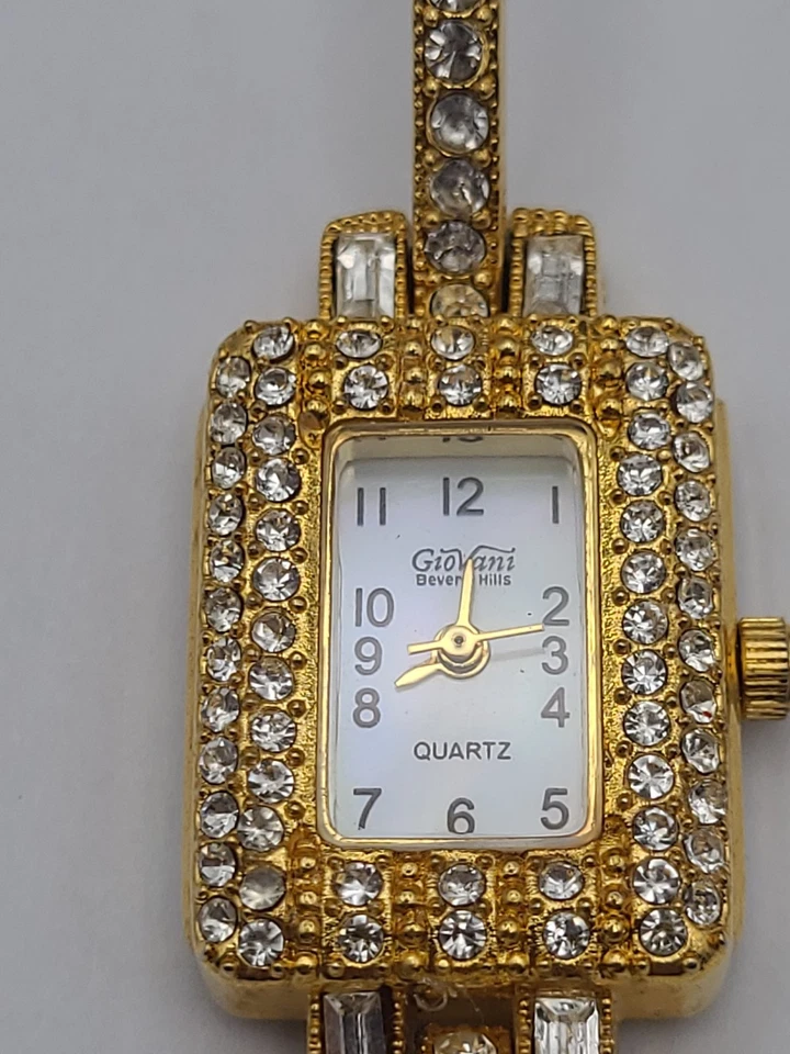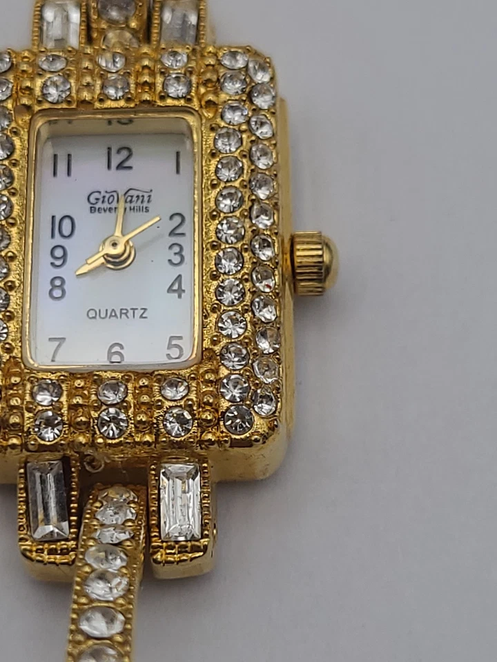 Giorgio Womens Beverly Hills Gold Tone Quartz Watch Pave New Battery Working