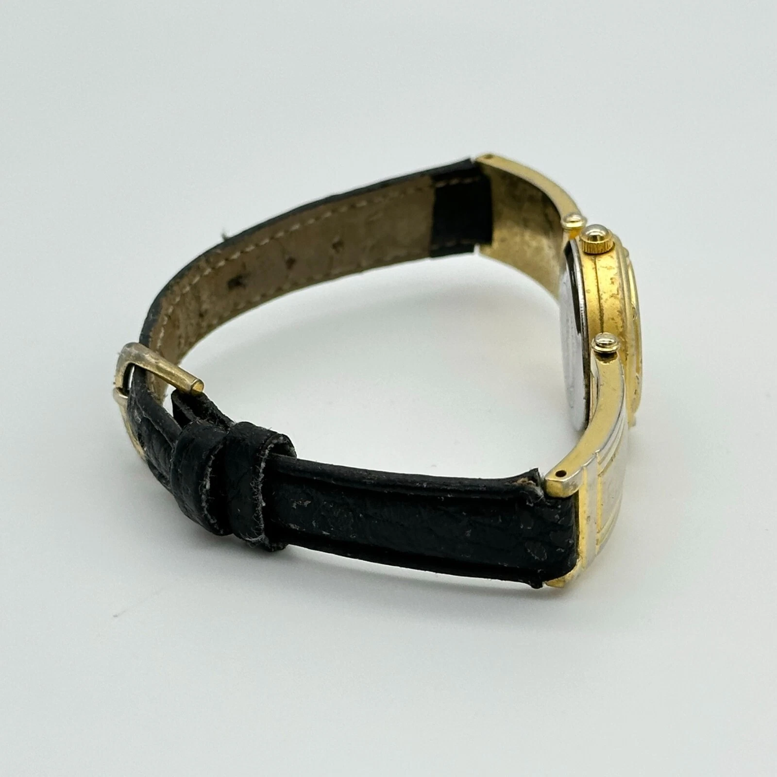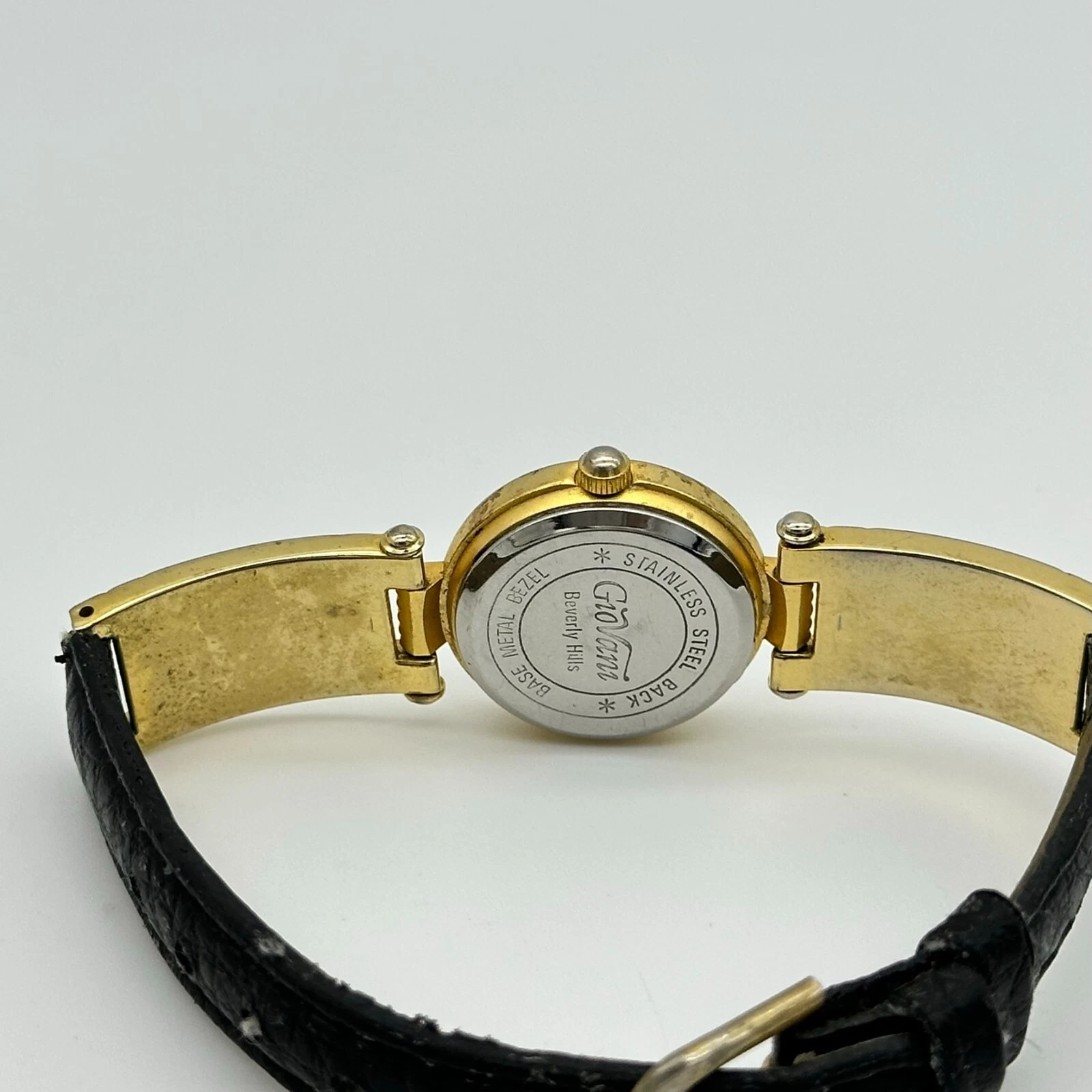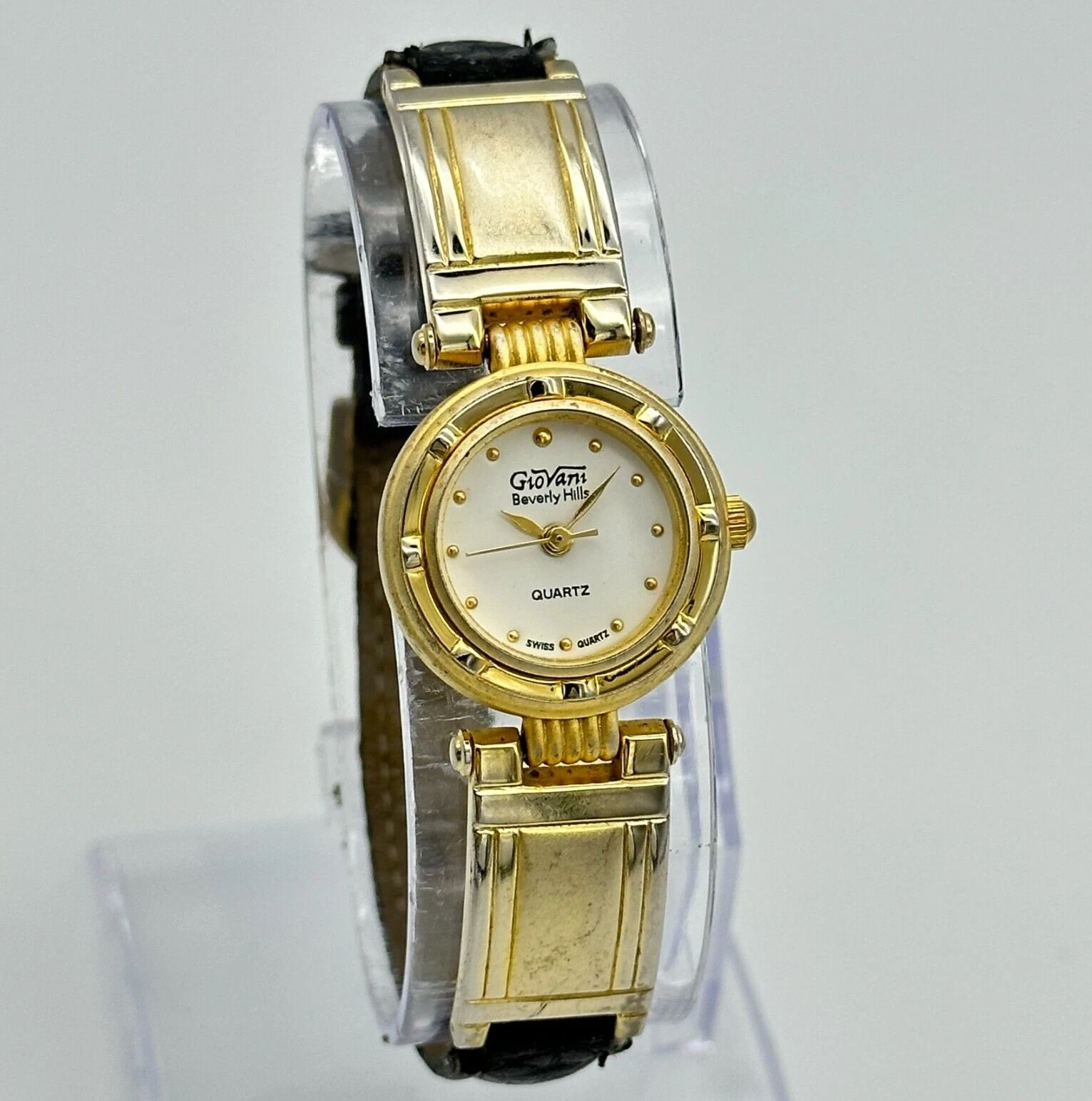Ladies GIOVANNI Beverly Hills Gold Tone Dress/Casual Black Leather Band Watch