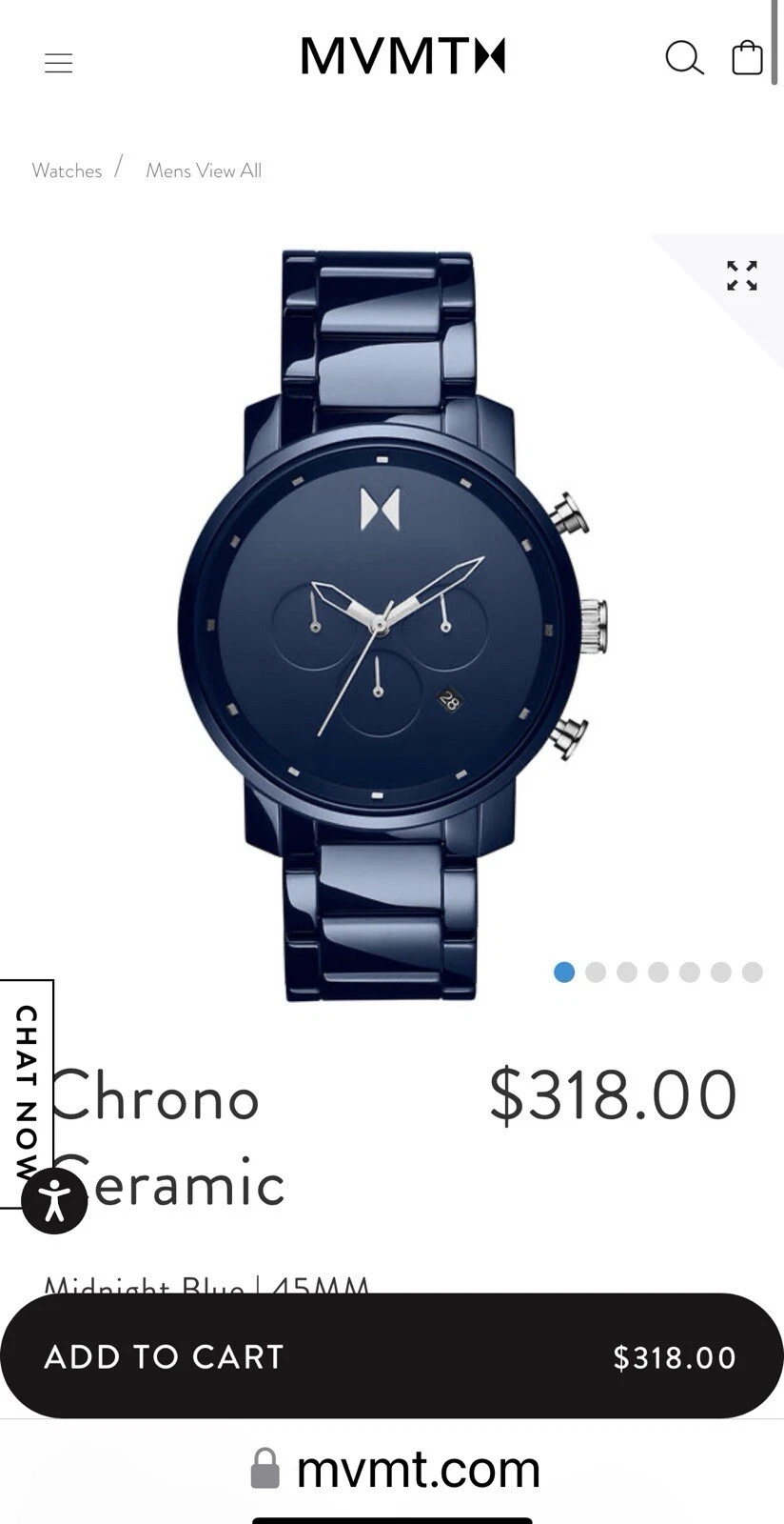 MVMT Brand New!!! BLACKTOP II BLUE CHRONOGRAPH DIAL BLUE CERAMIC MENS WATCH