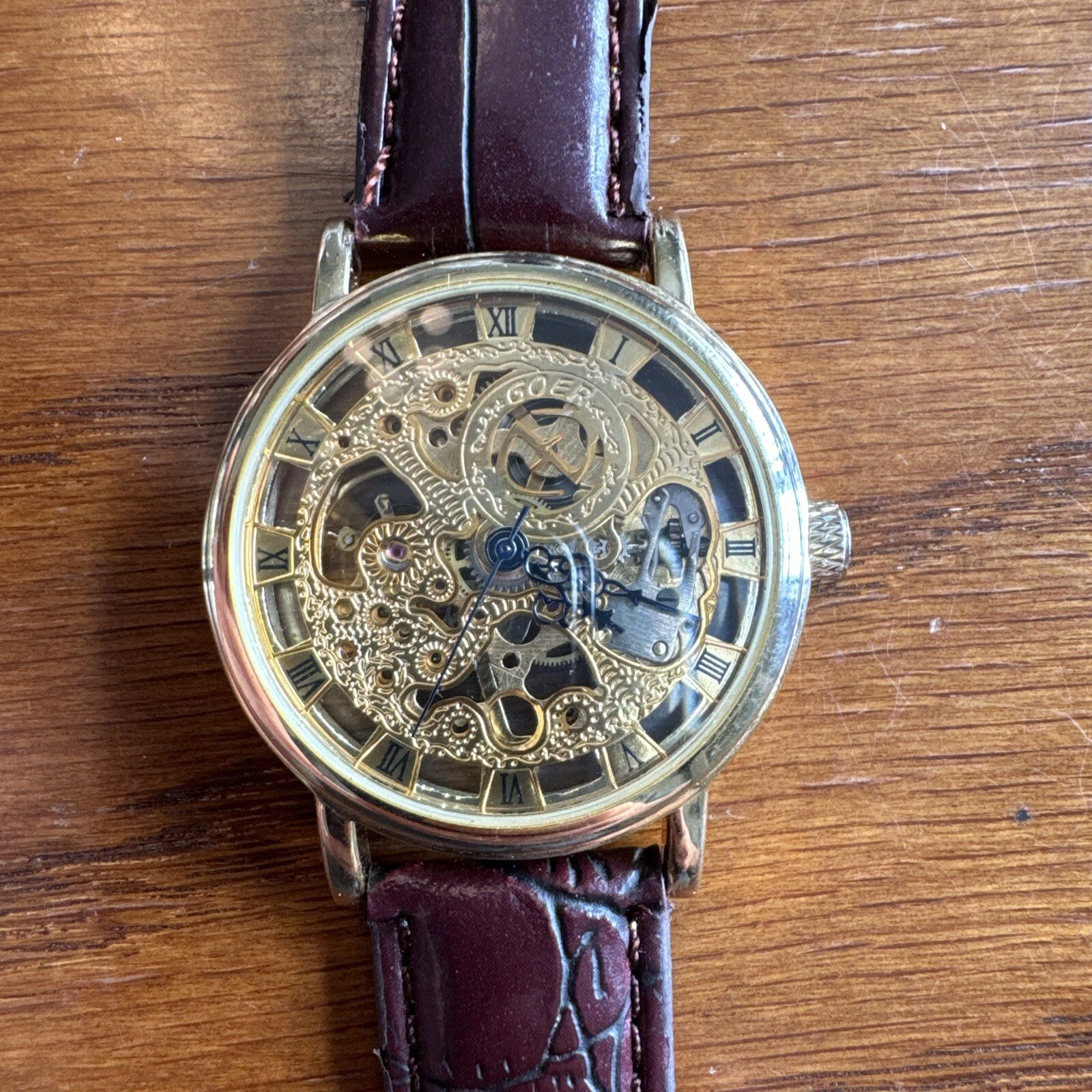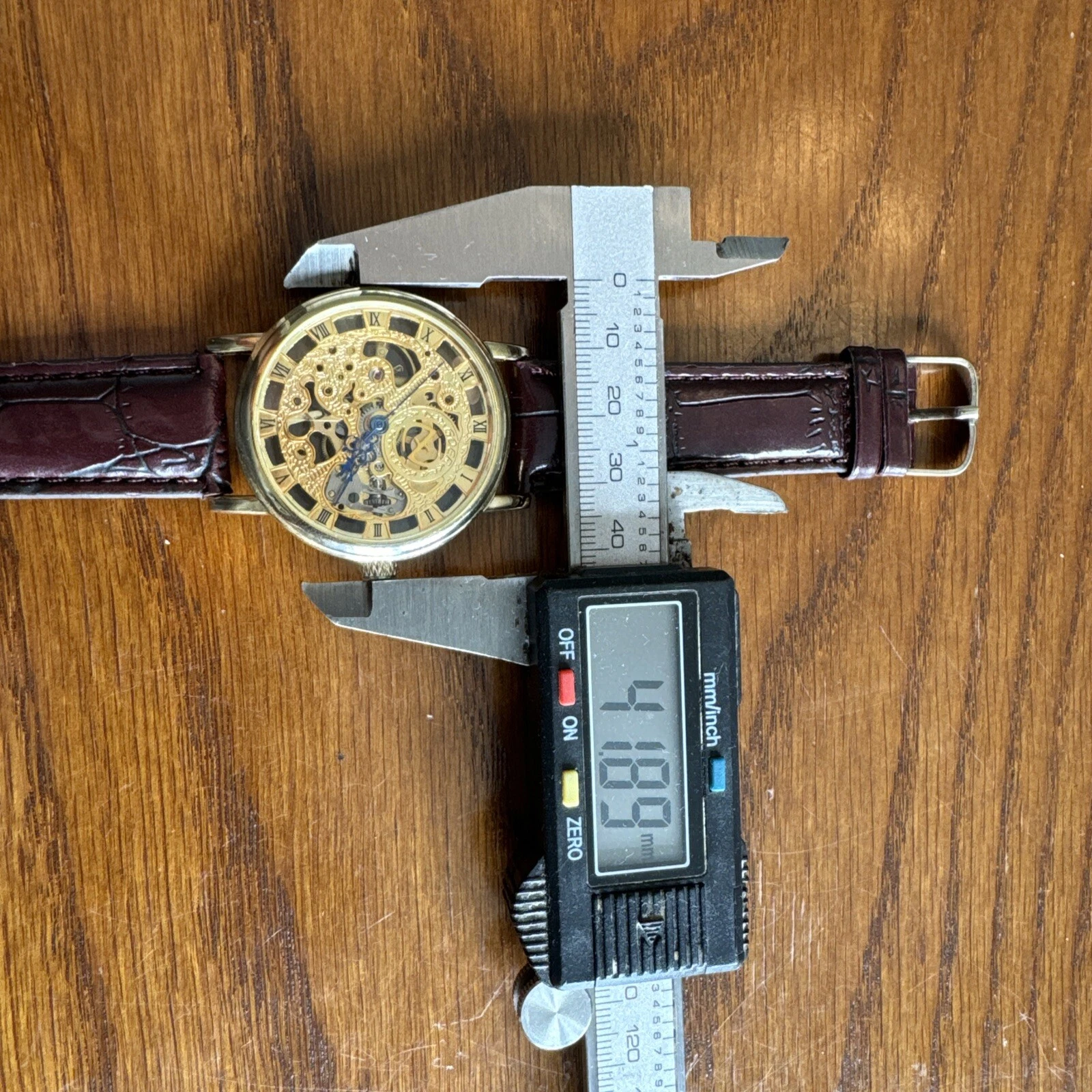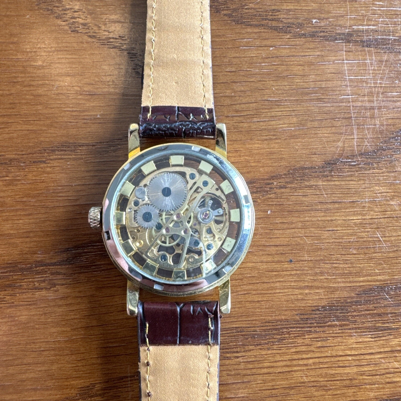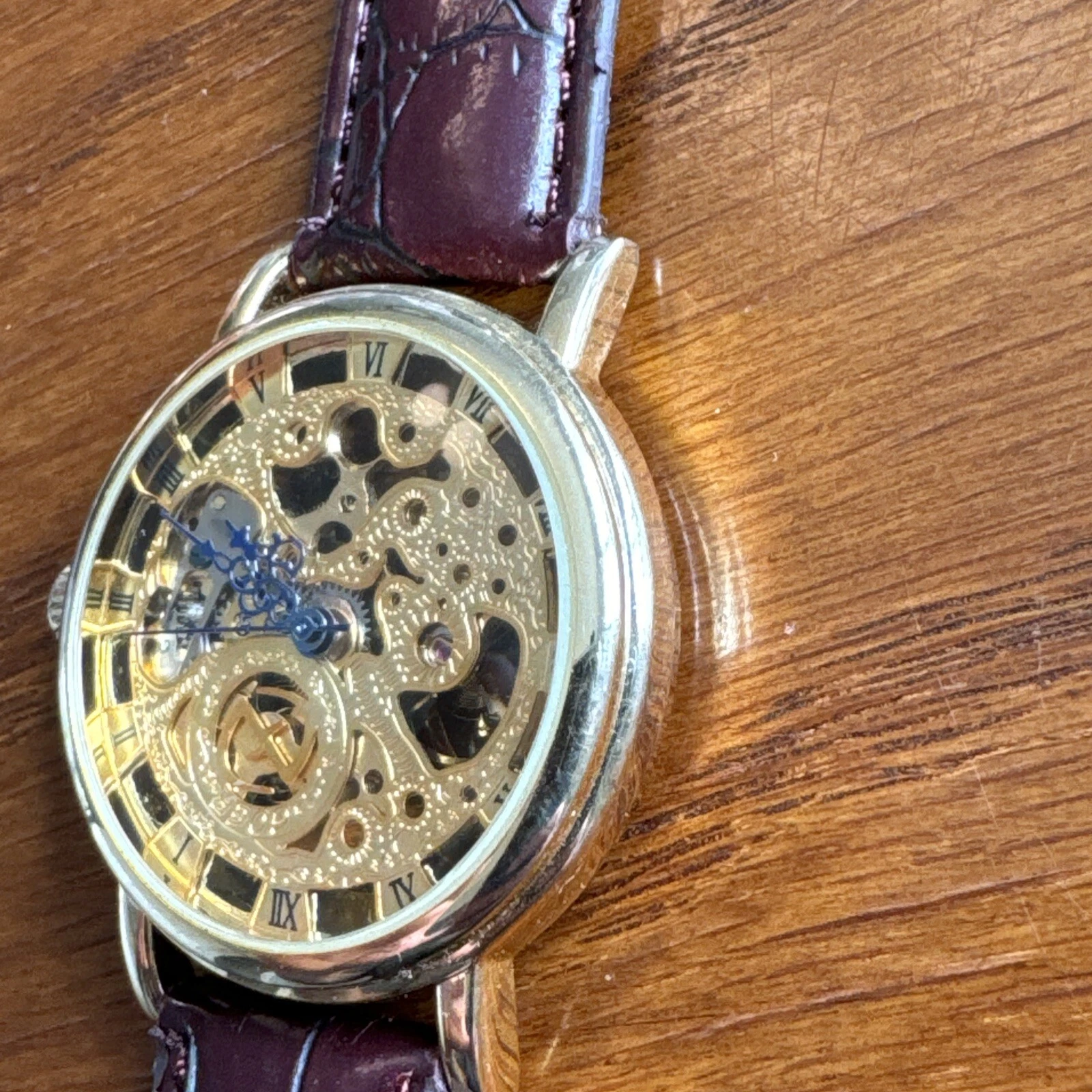 Skeleton Gold Tone Mechanical Men’s Wrist Watch. Working