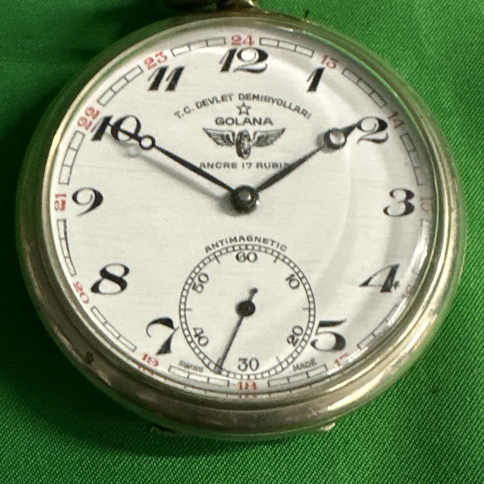 GOLANA 17 Jewel Pocket Watch Devet Demiryollari Turkish State Railroad
