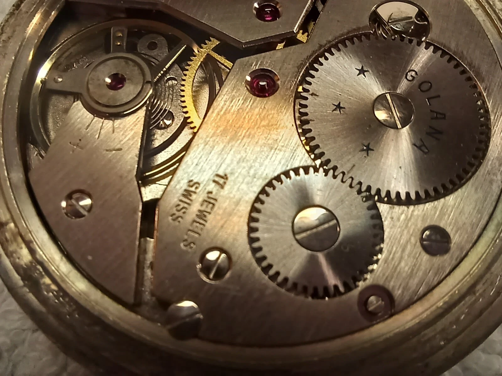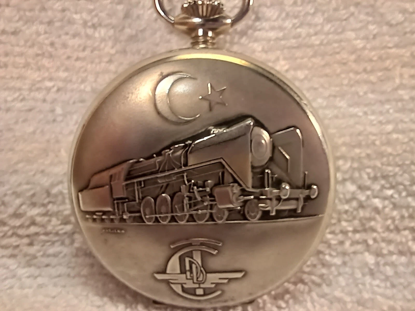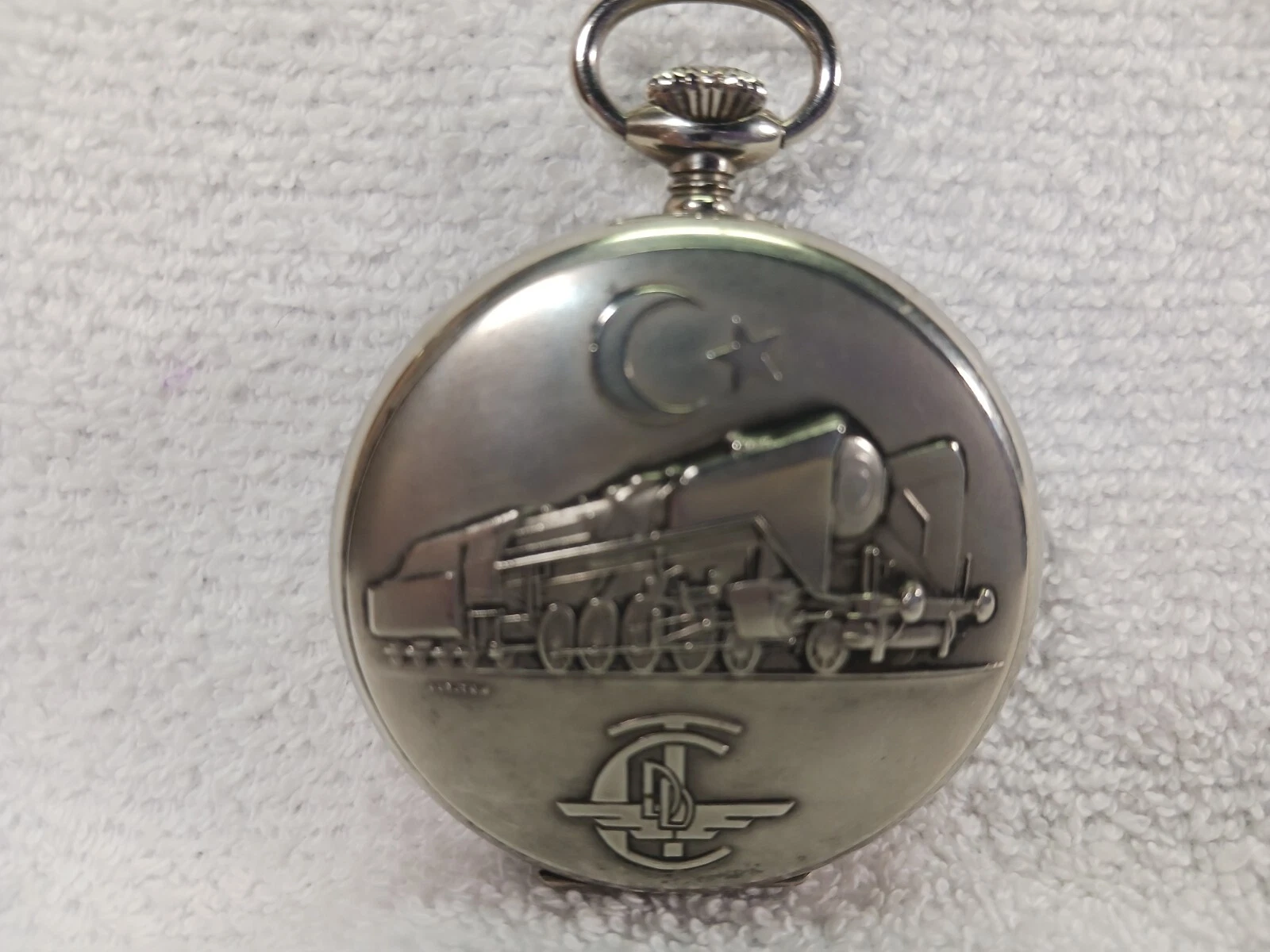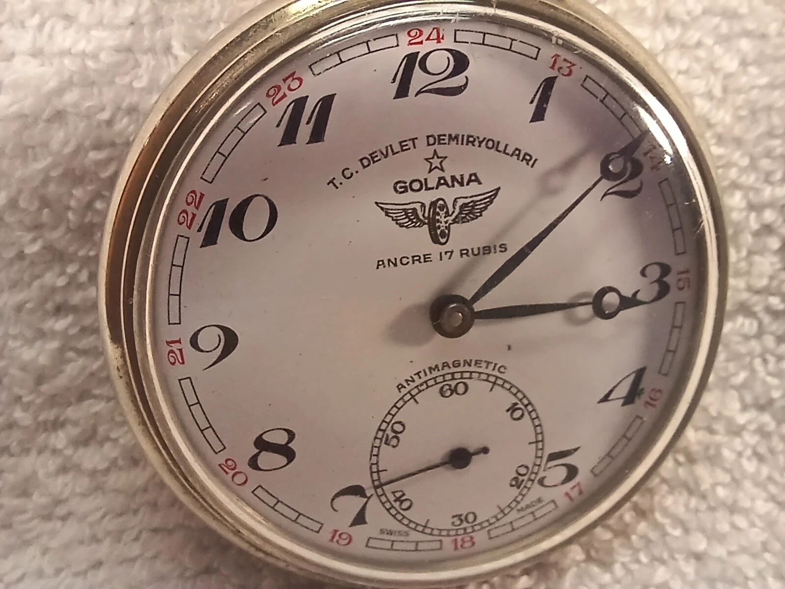 VINTAGE GOLANA POCKET WATCH, 17 JEWELS, SWISS MADE - LOCOMOTIVE ON BACK